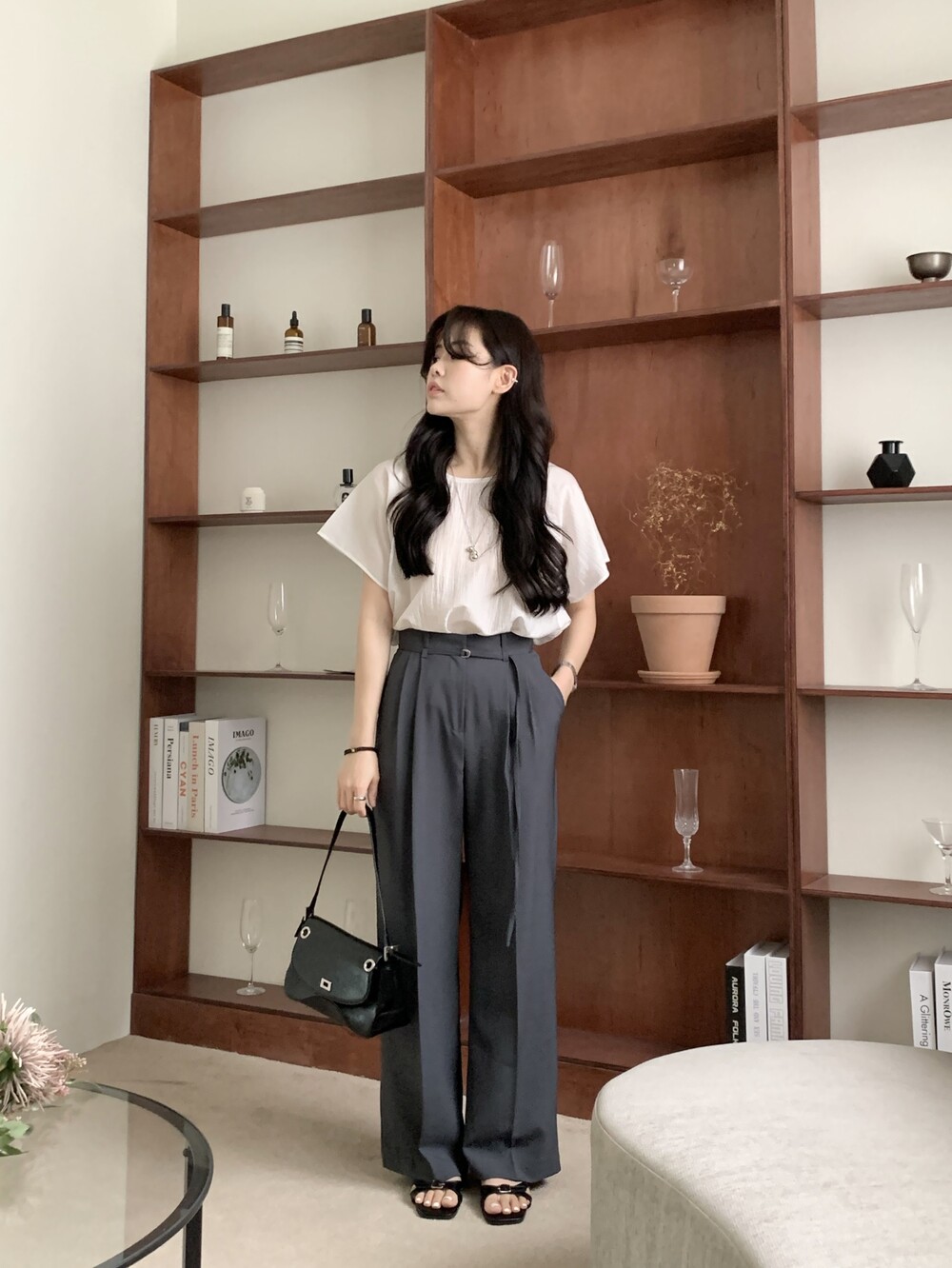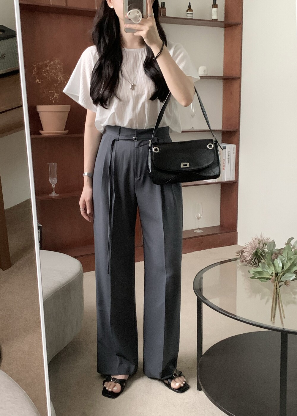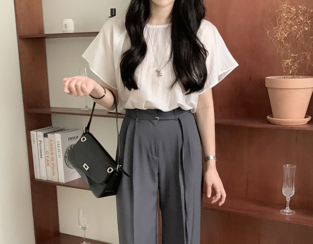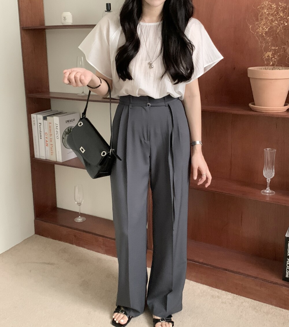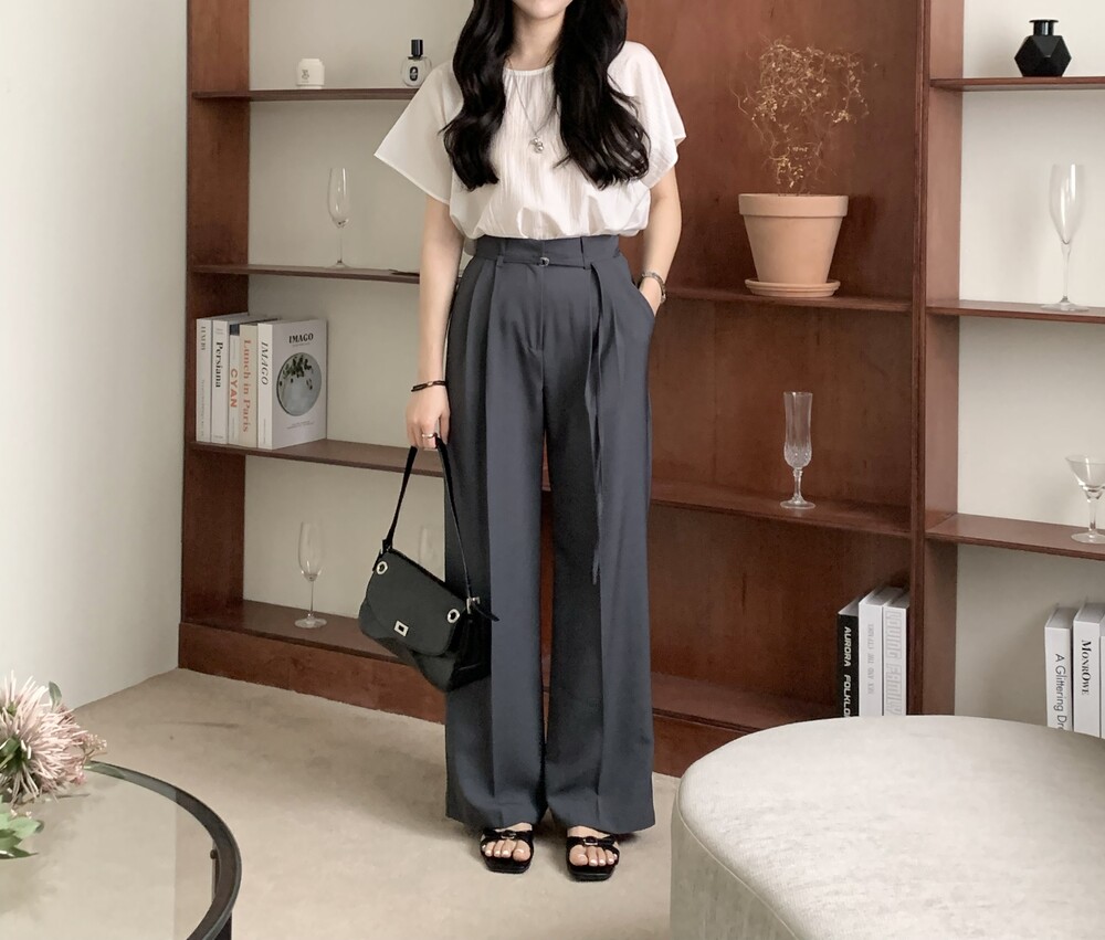 BOTTOM - VERDI STRAP PINTUCK SLACKS (summer ver.)(GRAY/S)