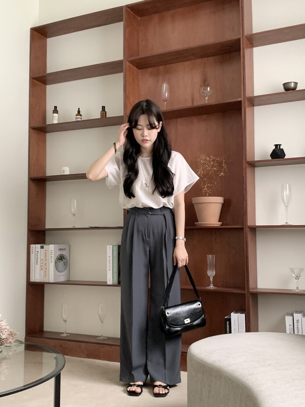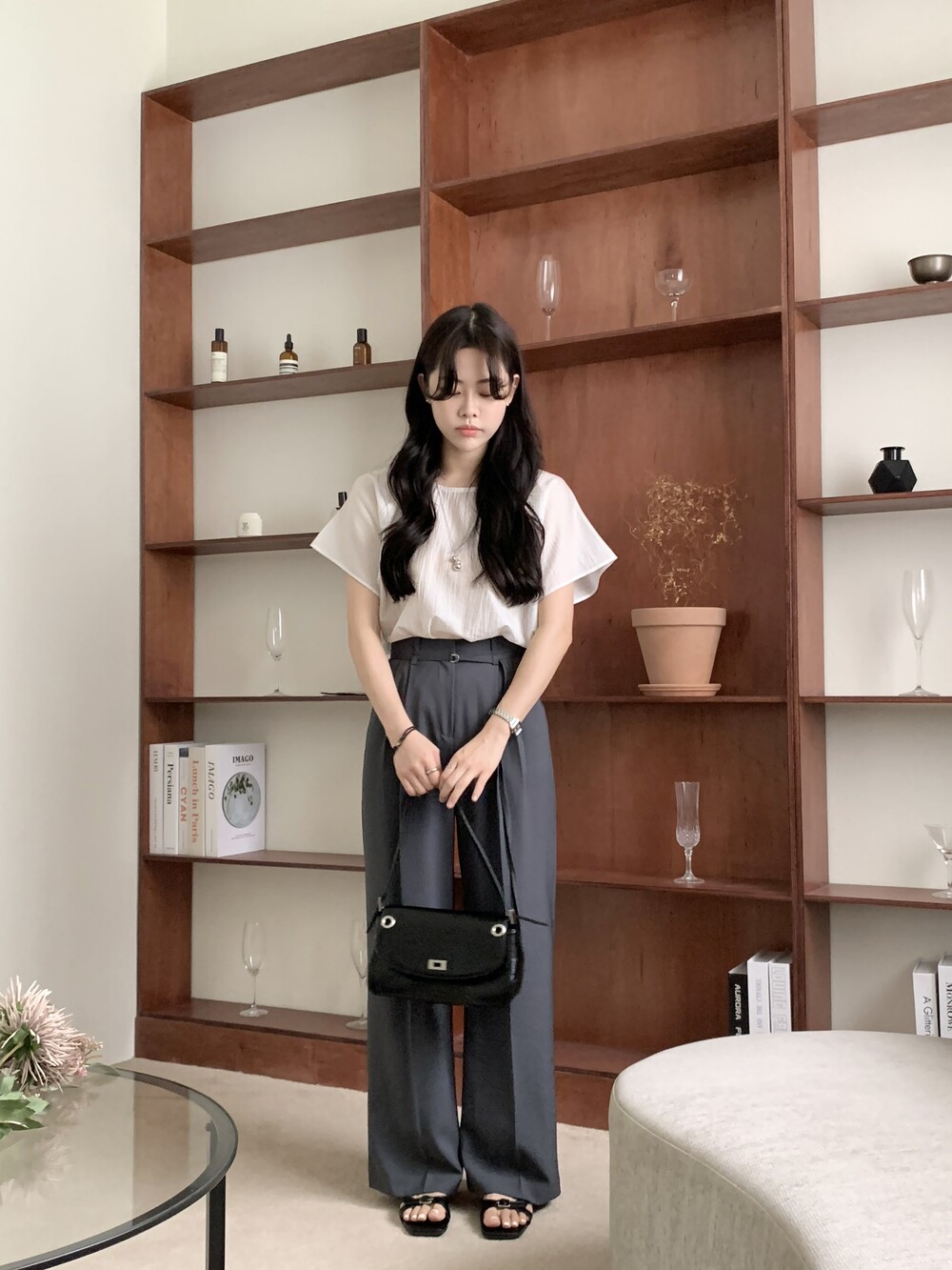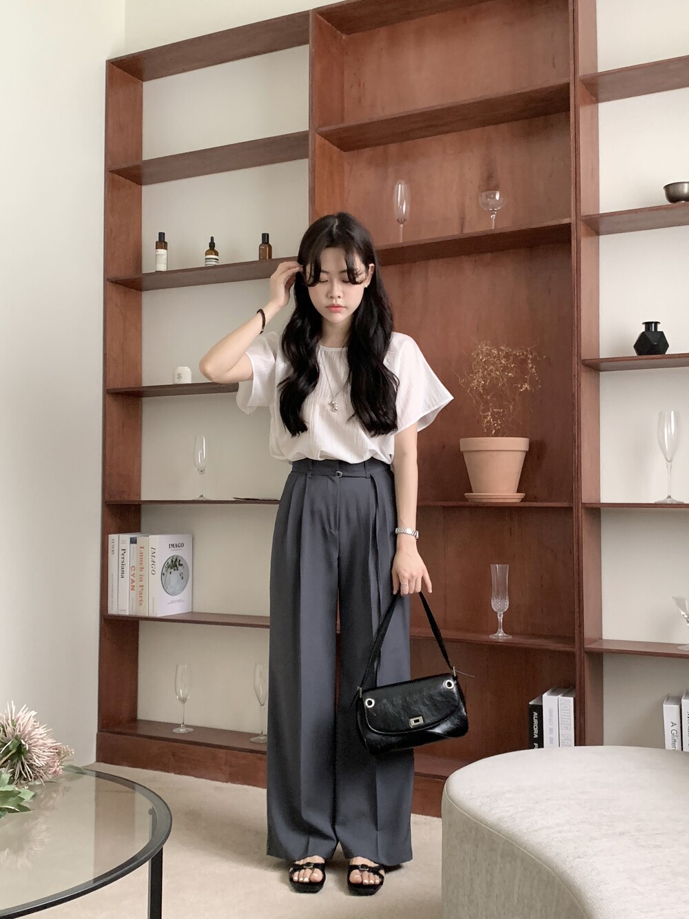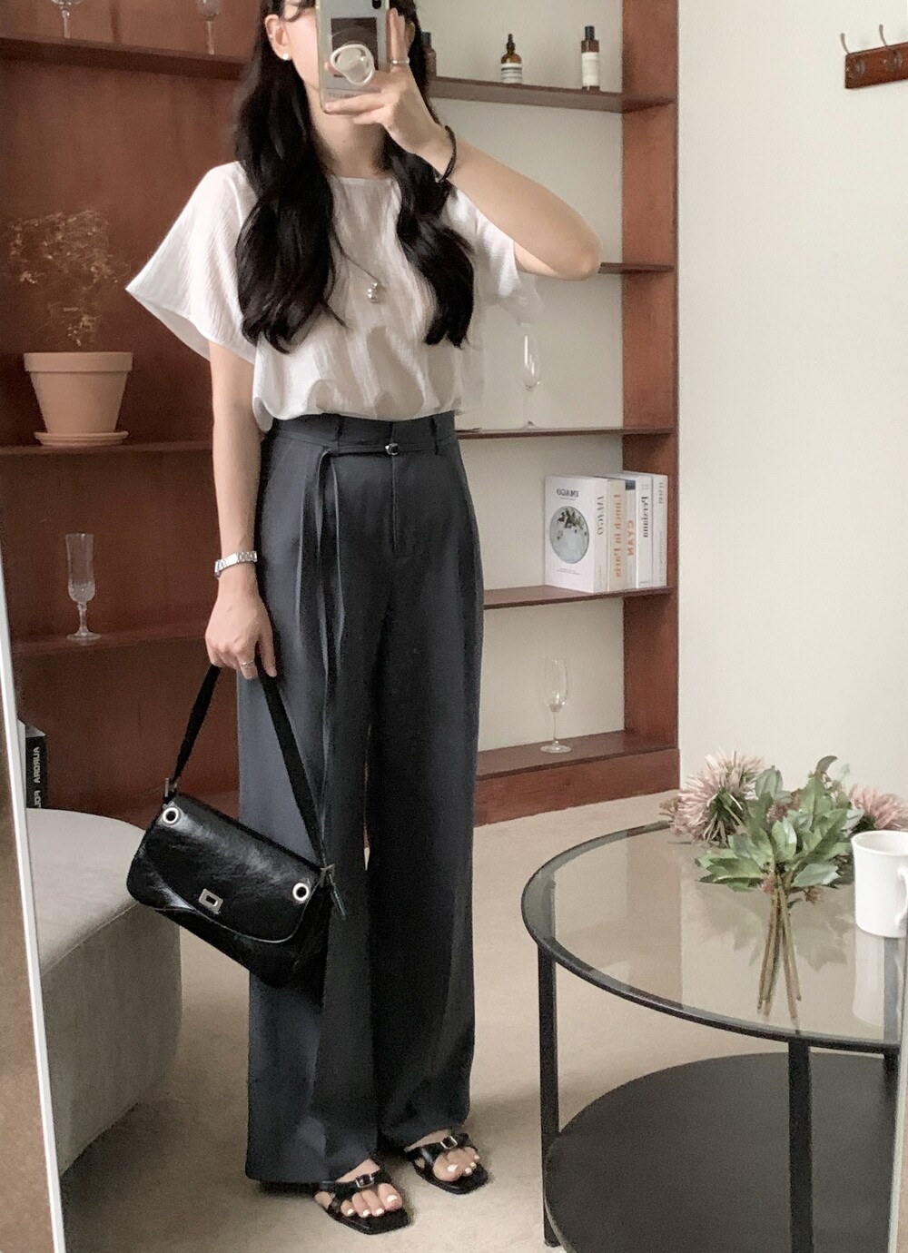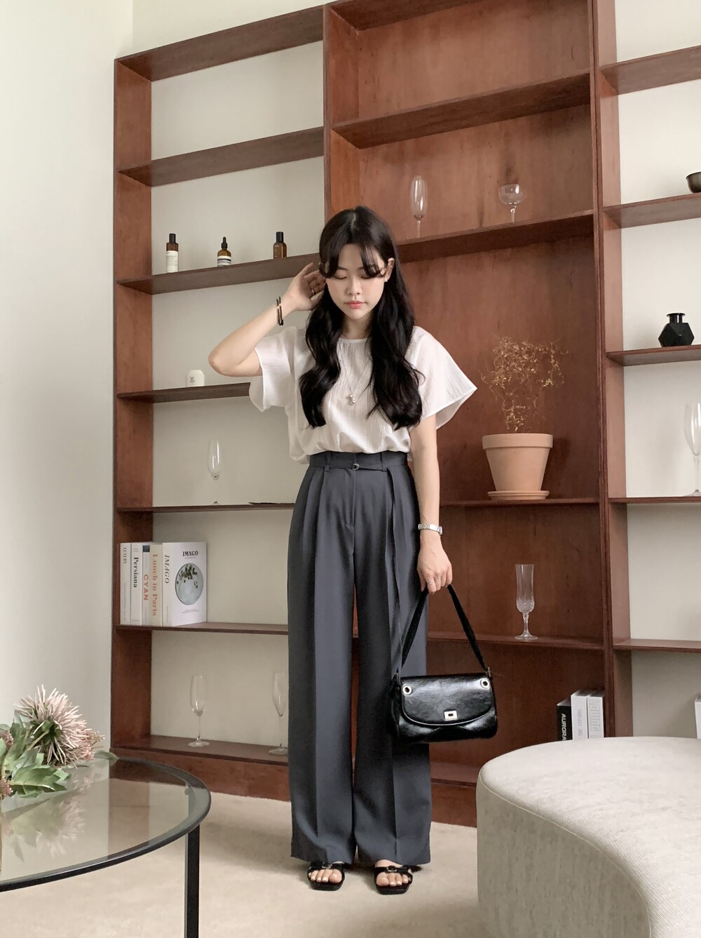 BOTTOM - VERDI STRAP PINTUCK SLACKS (summer ver.)(GRAY/S)