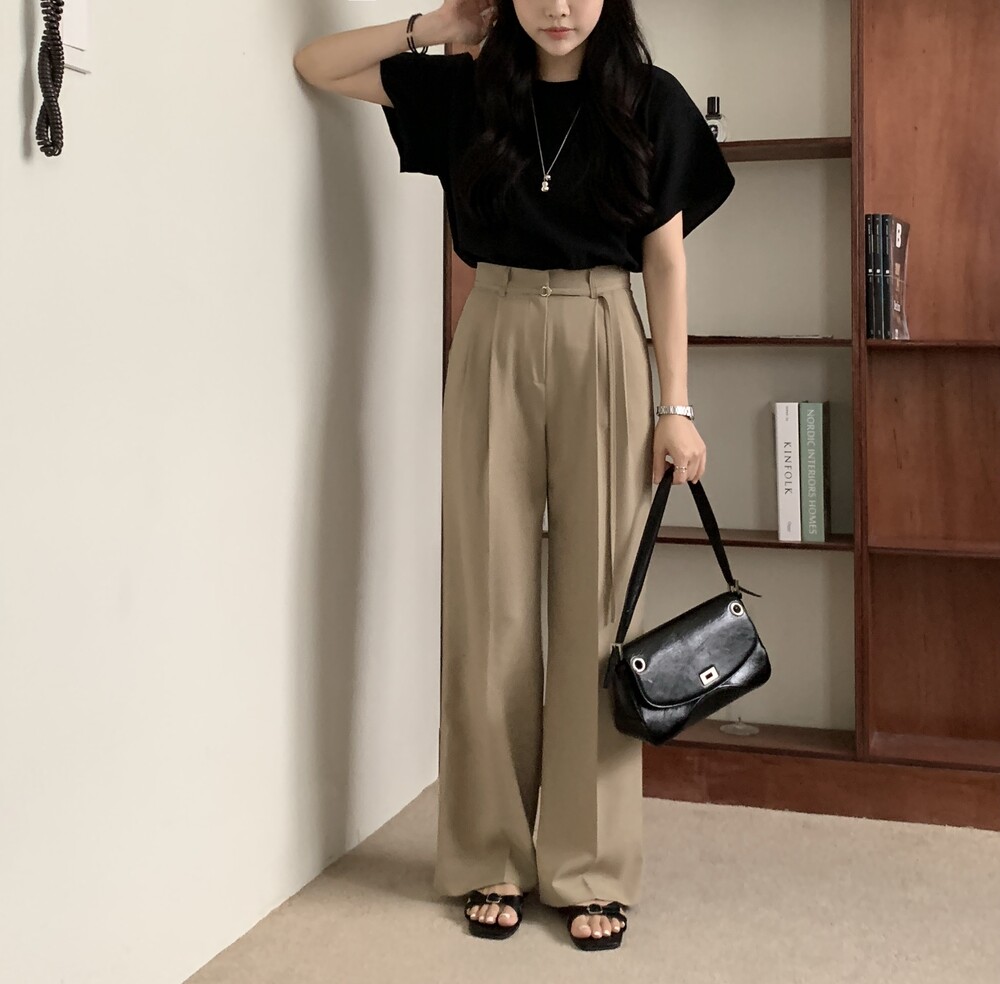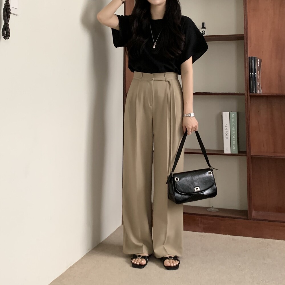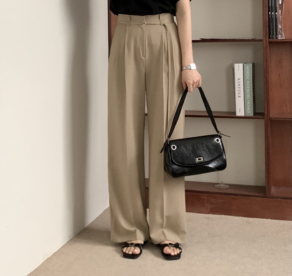 BOTTOM - VERDI STRAP PINTUCK SLACKS (summer ver.)(BEIGE/S)