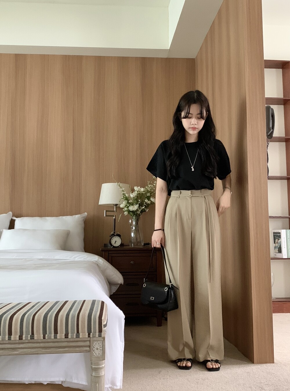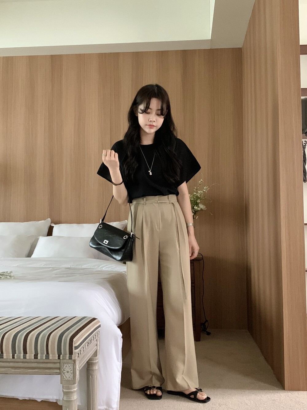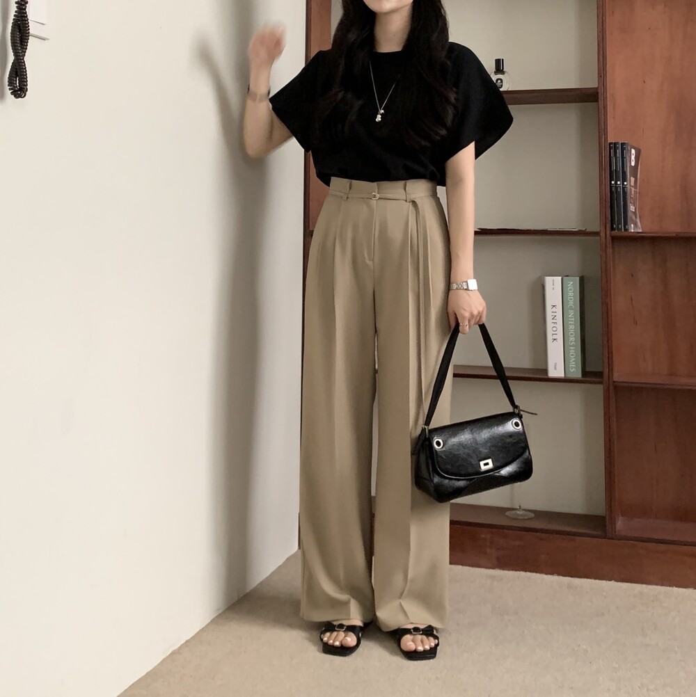 BOTTOM - VERDI STRAP PINTUCK SLACKS (summer ver.)(BEIGE/S)