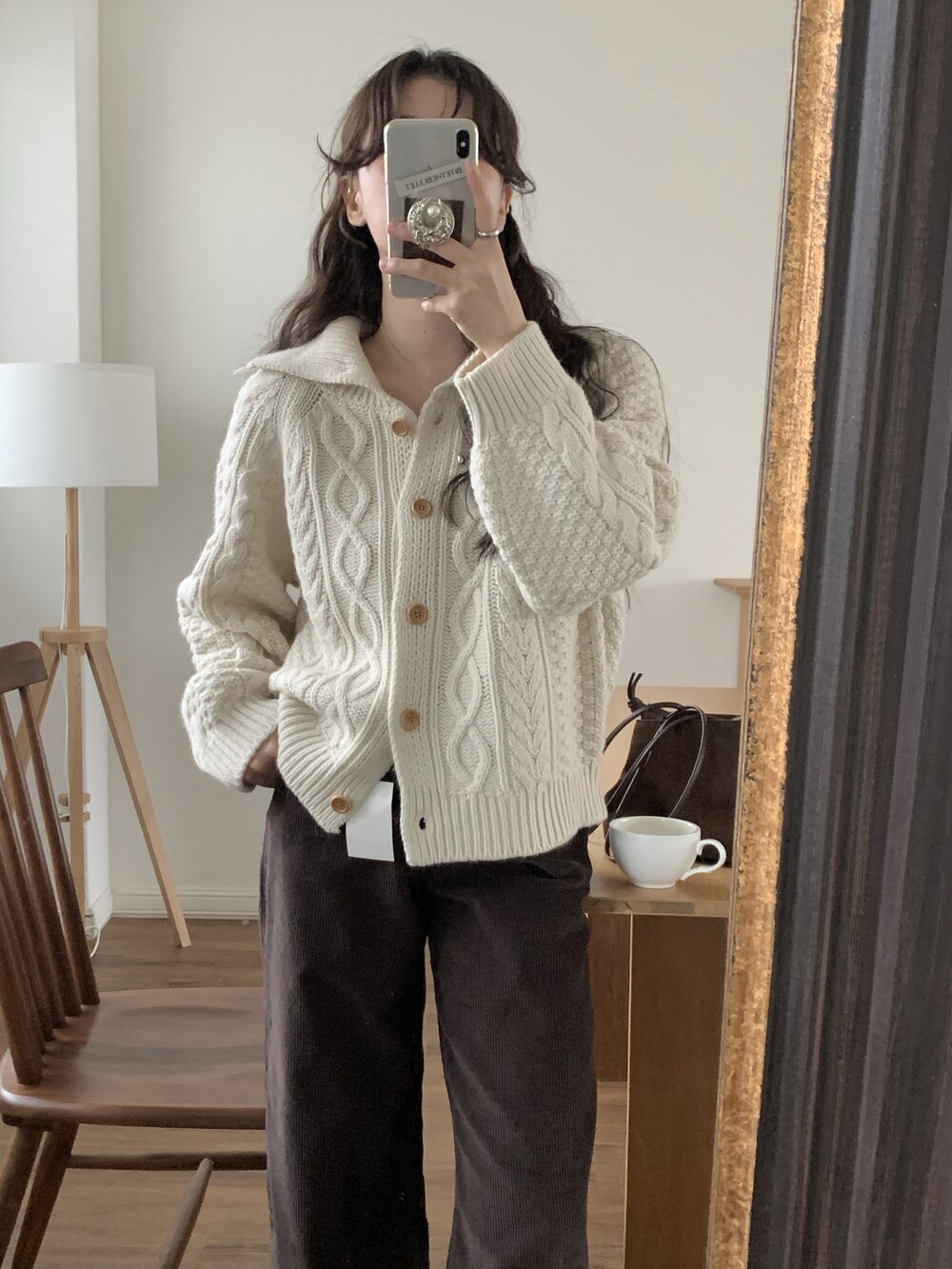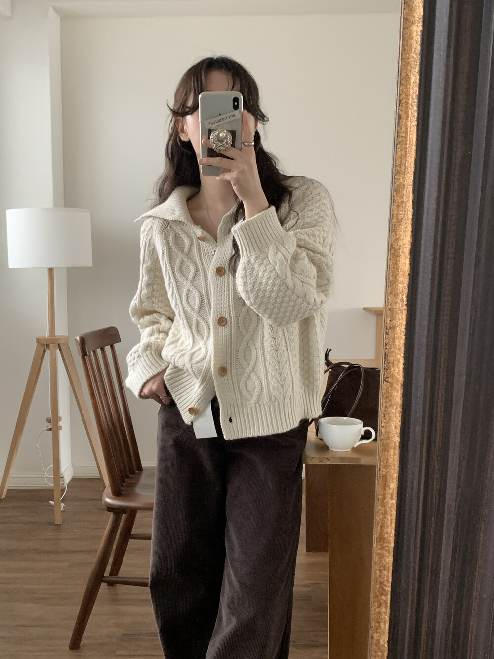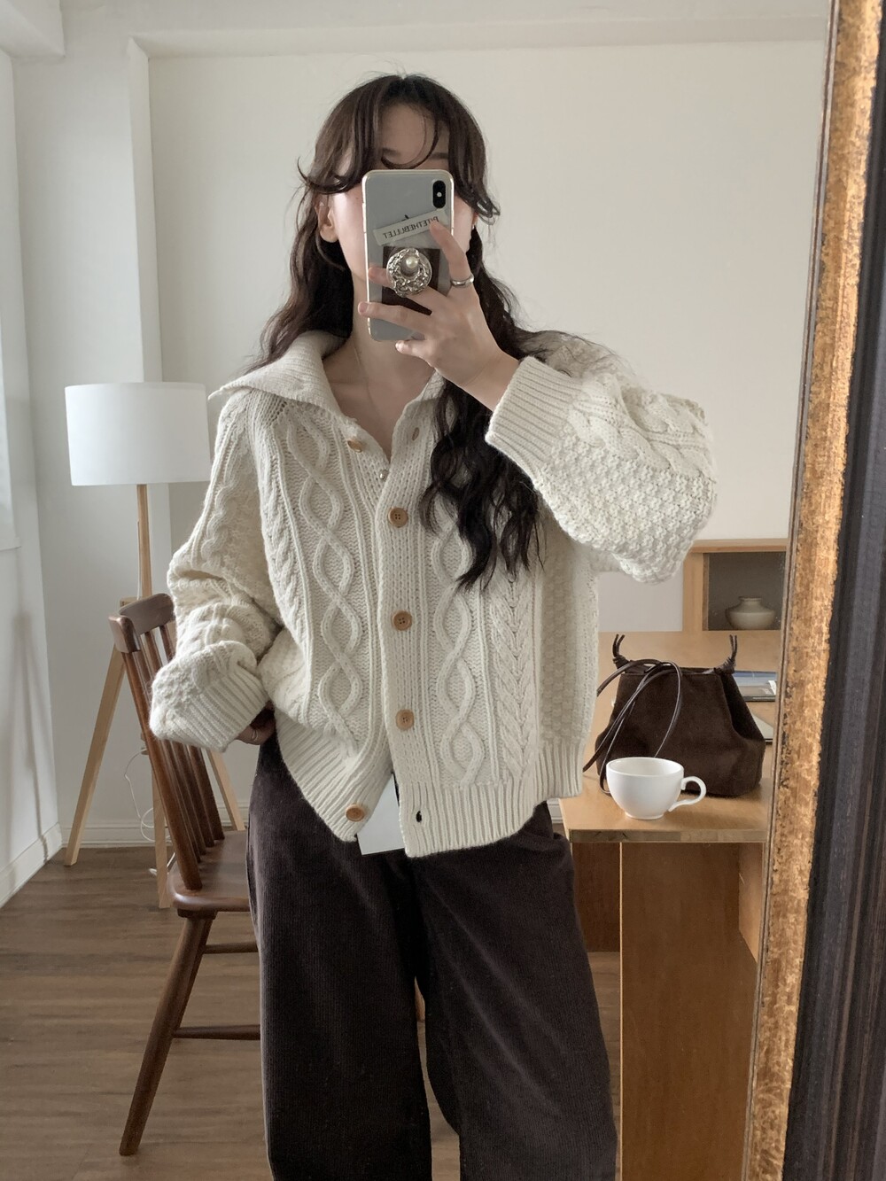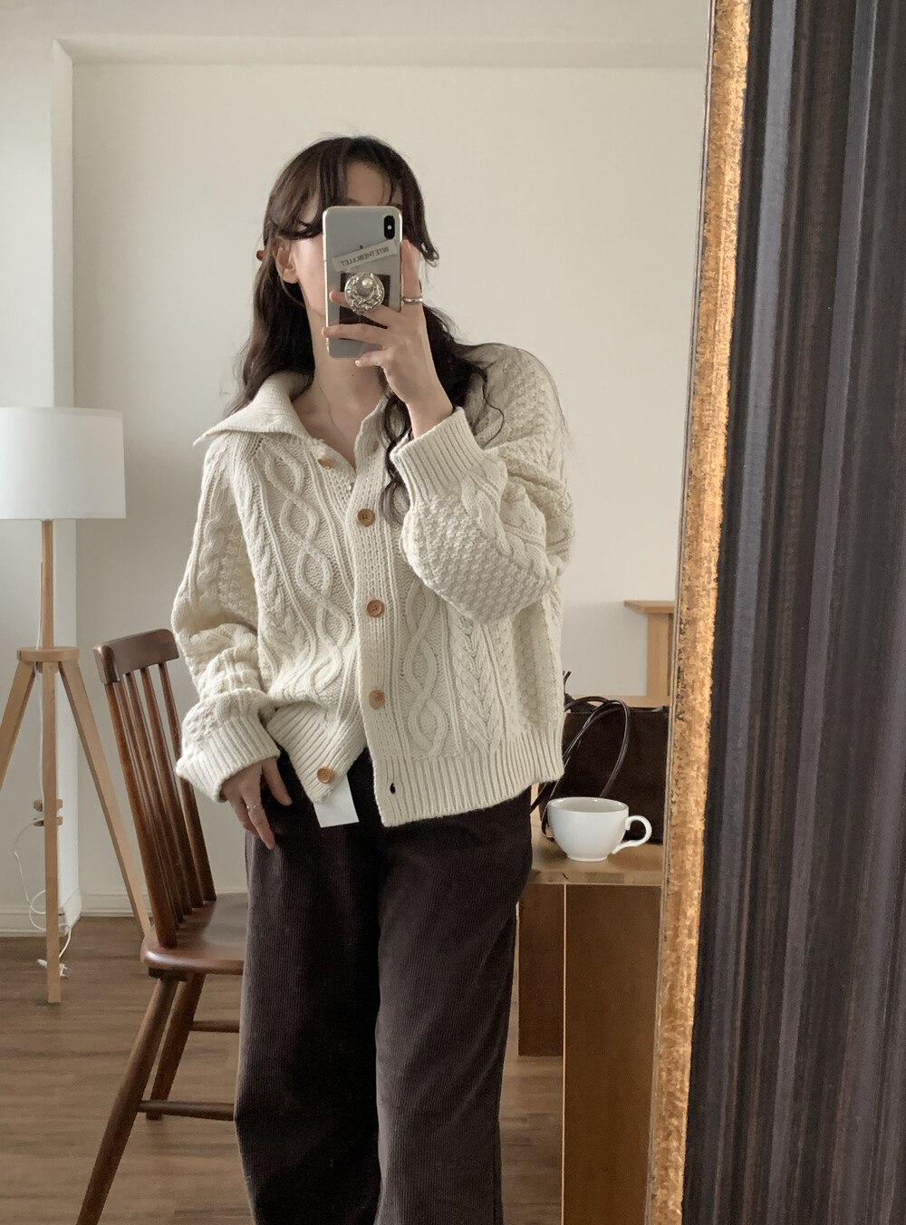 OUTER - MERINO WOOL HIGH-NECK CABLE CARDIGAN(IVORY)