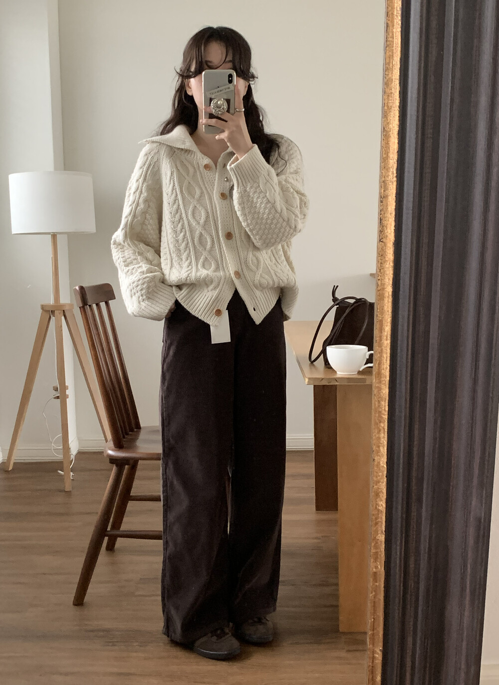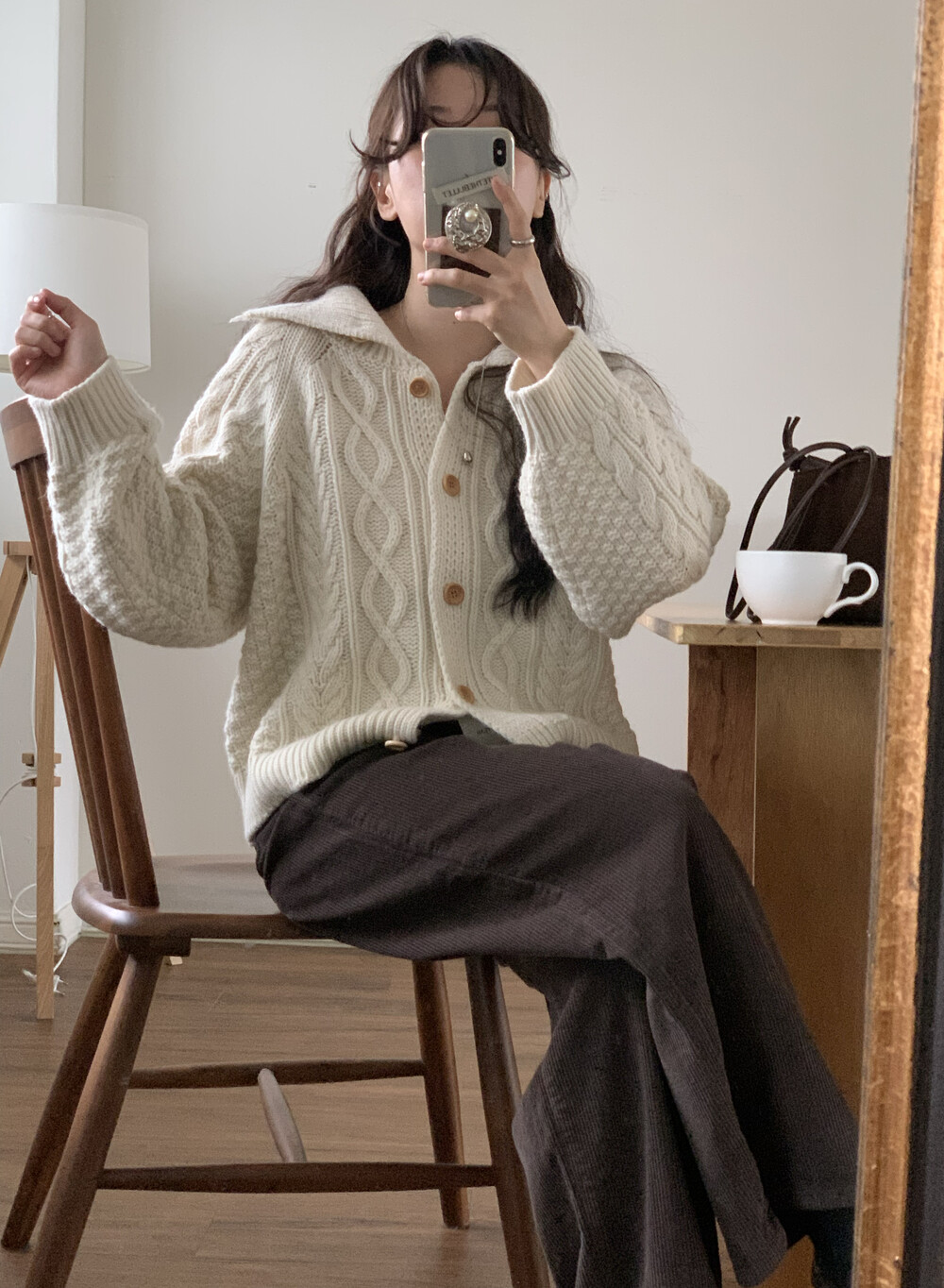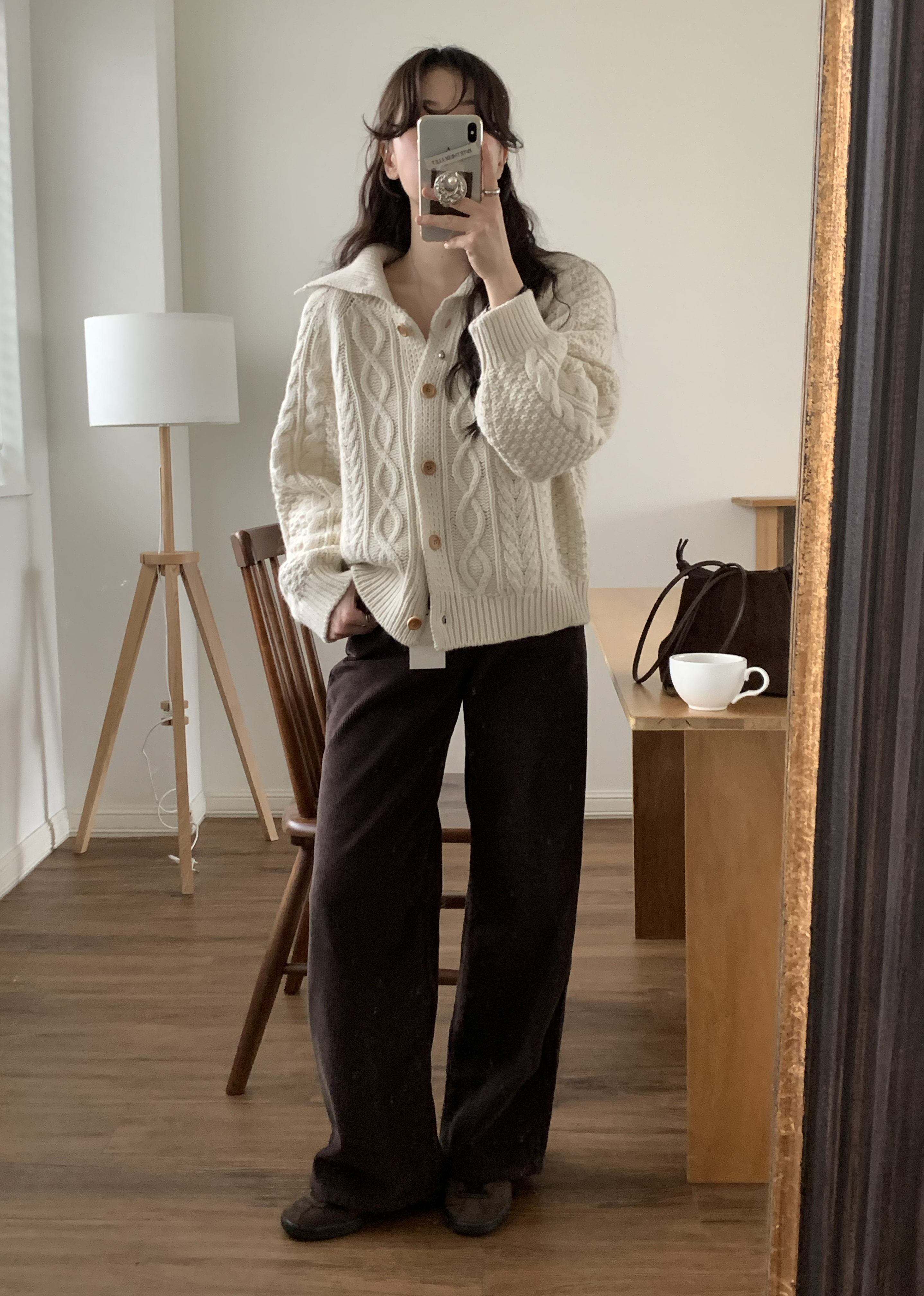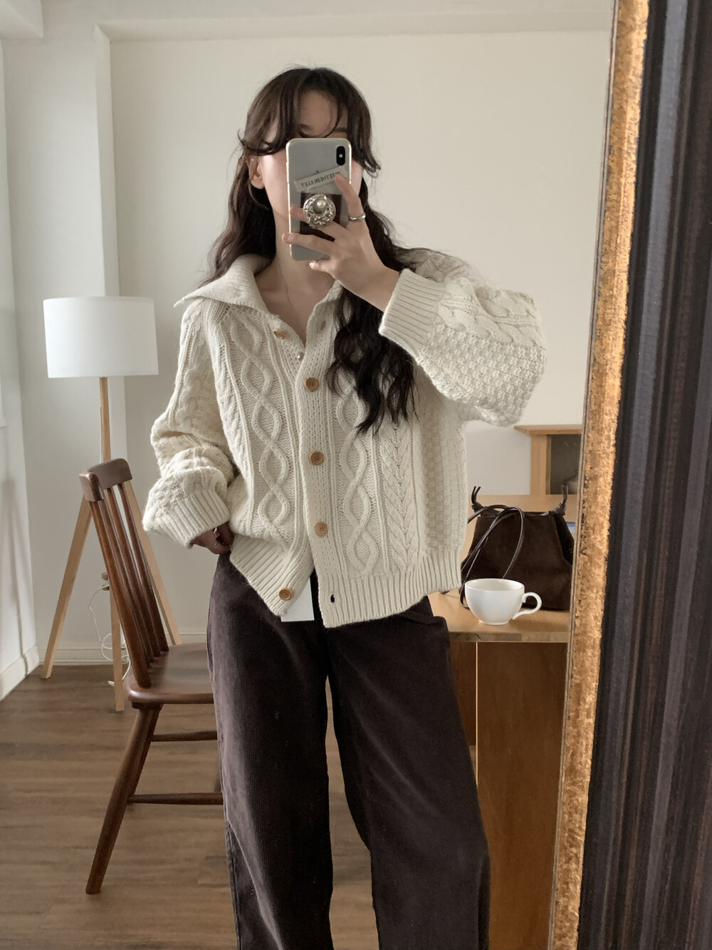 OUTER - MERINO WOOL HIGH-NECK CABLE CARDIGAN(IVORY)