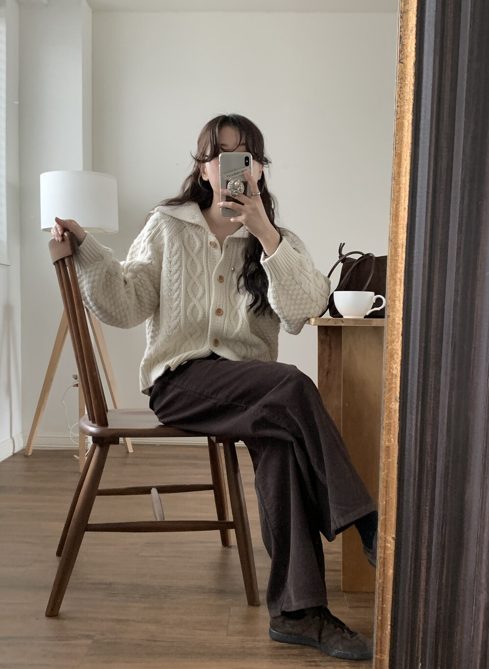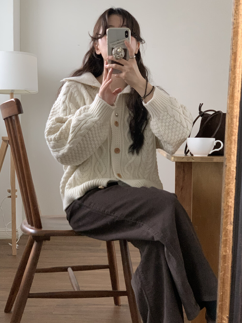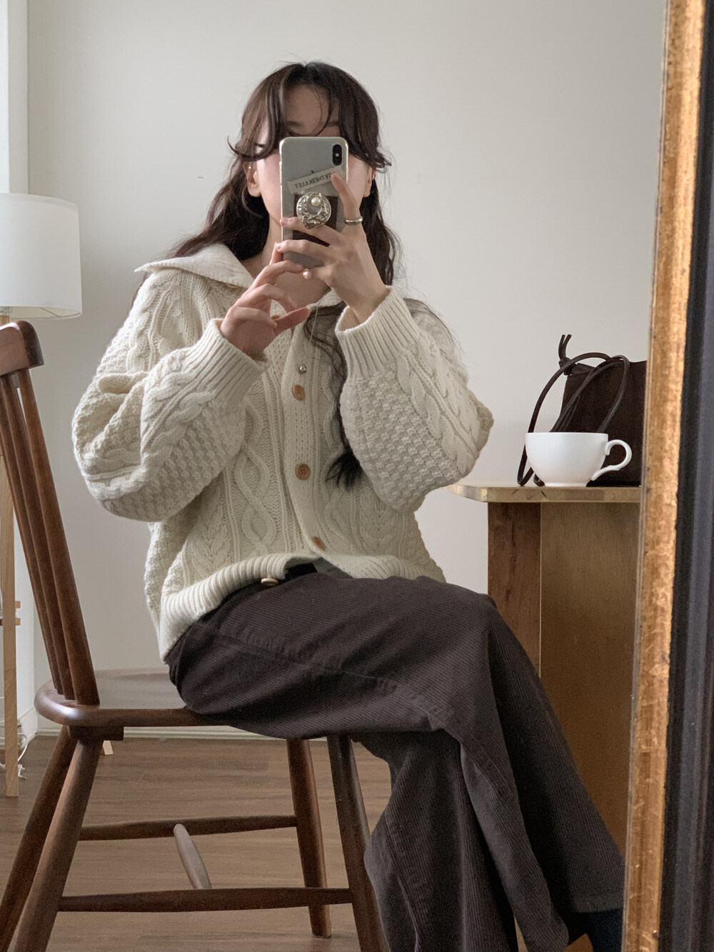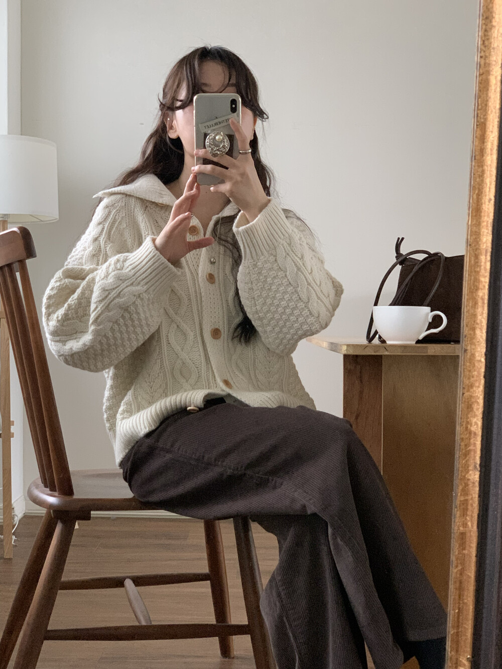 OUTER - MERINO WOOL HIGH-NECK CABLE CARDIGAN(IVORY)