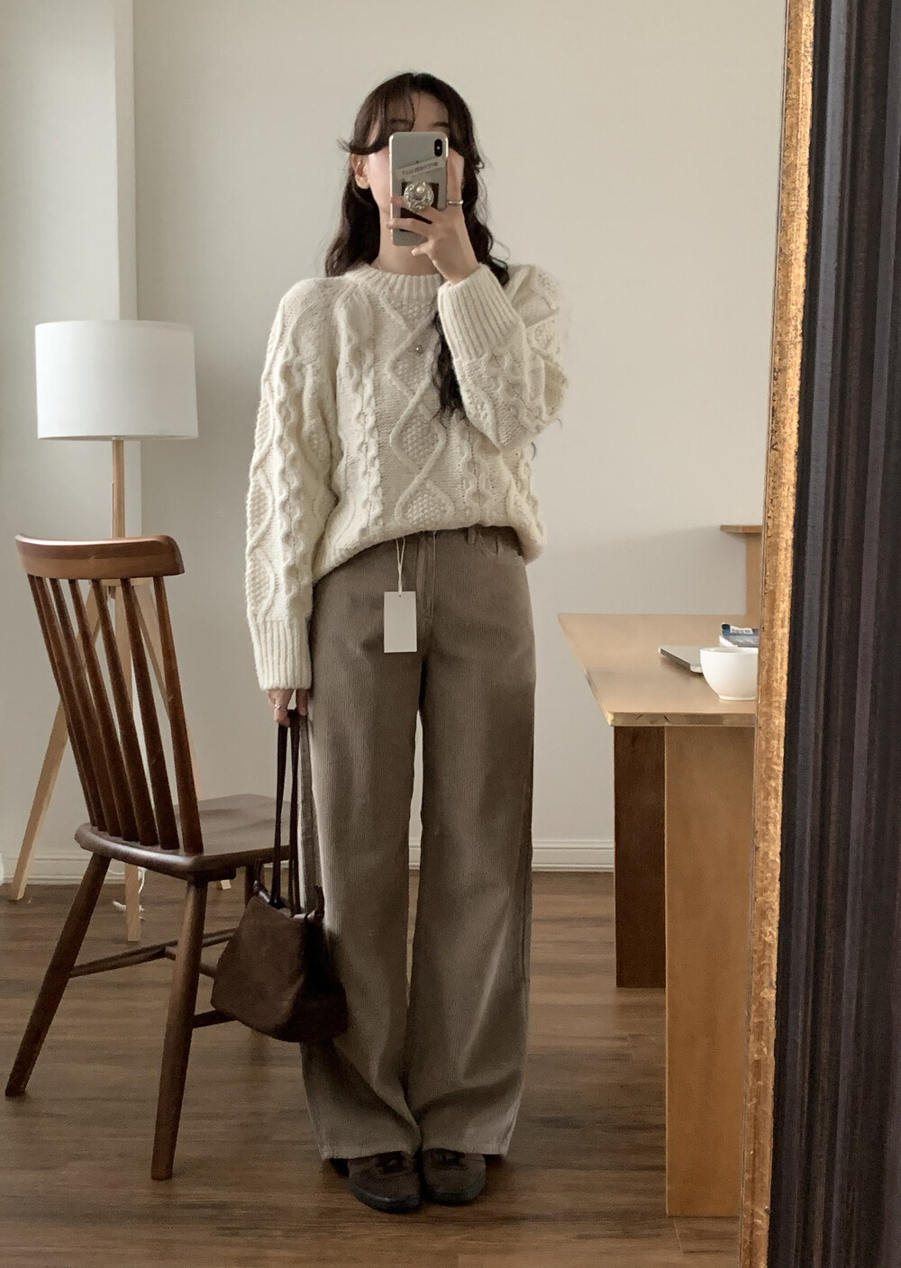 BOTTOM - SANDING CORDUROY WIDE PANTS(BROWN/S)