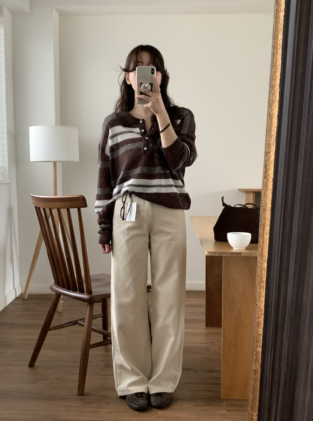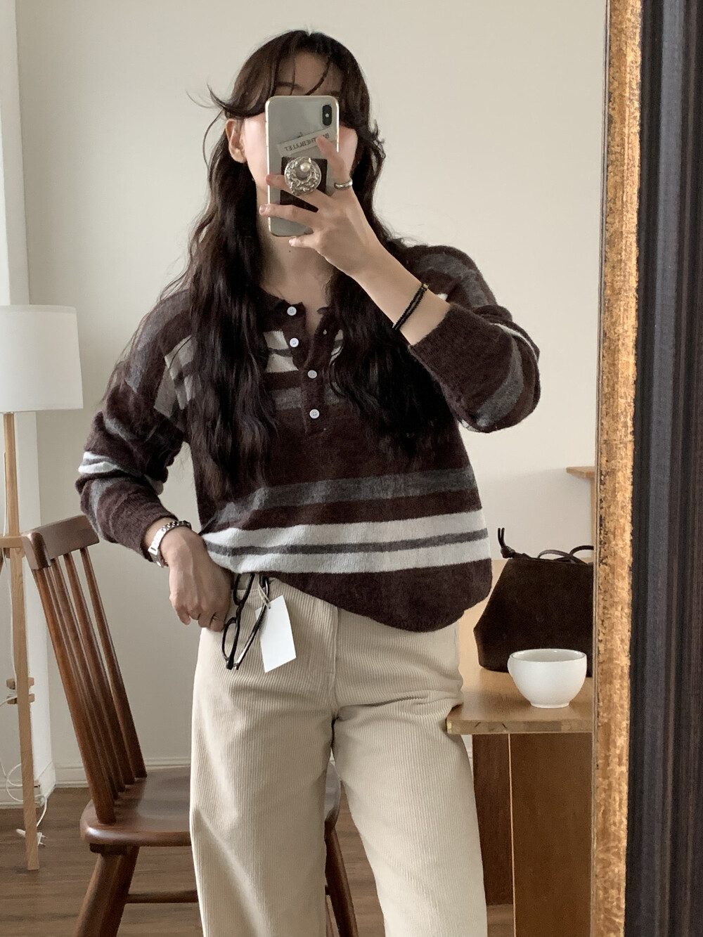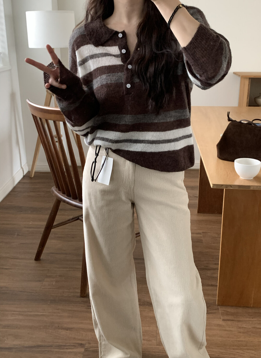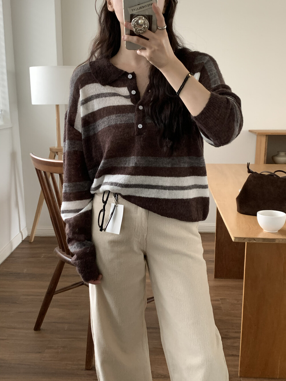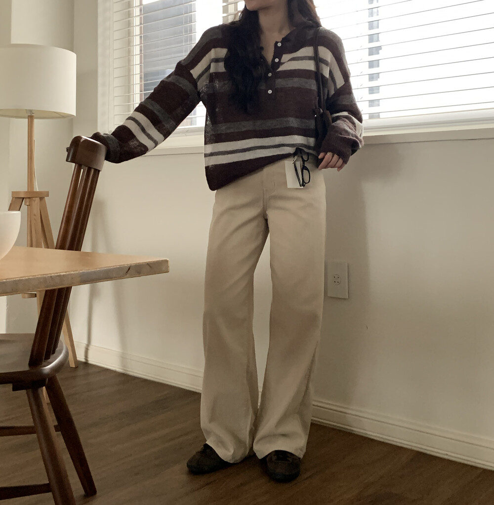 TOP - MOCHA STRIPE COLLAR KNIT(BROWN)