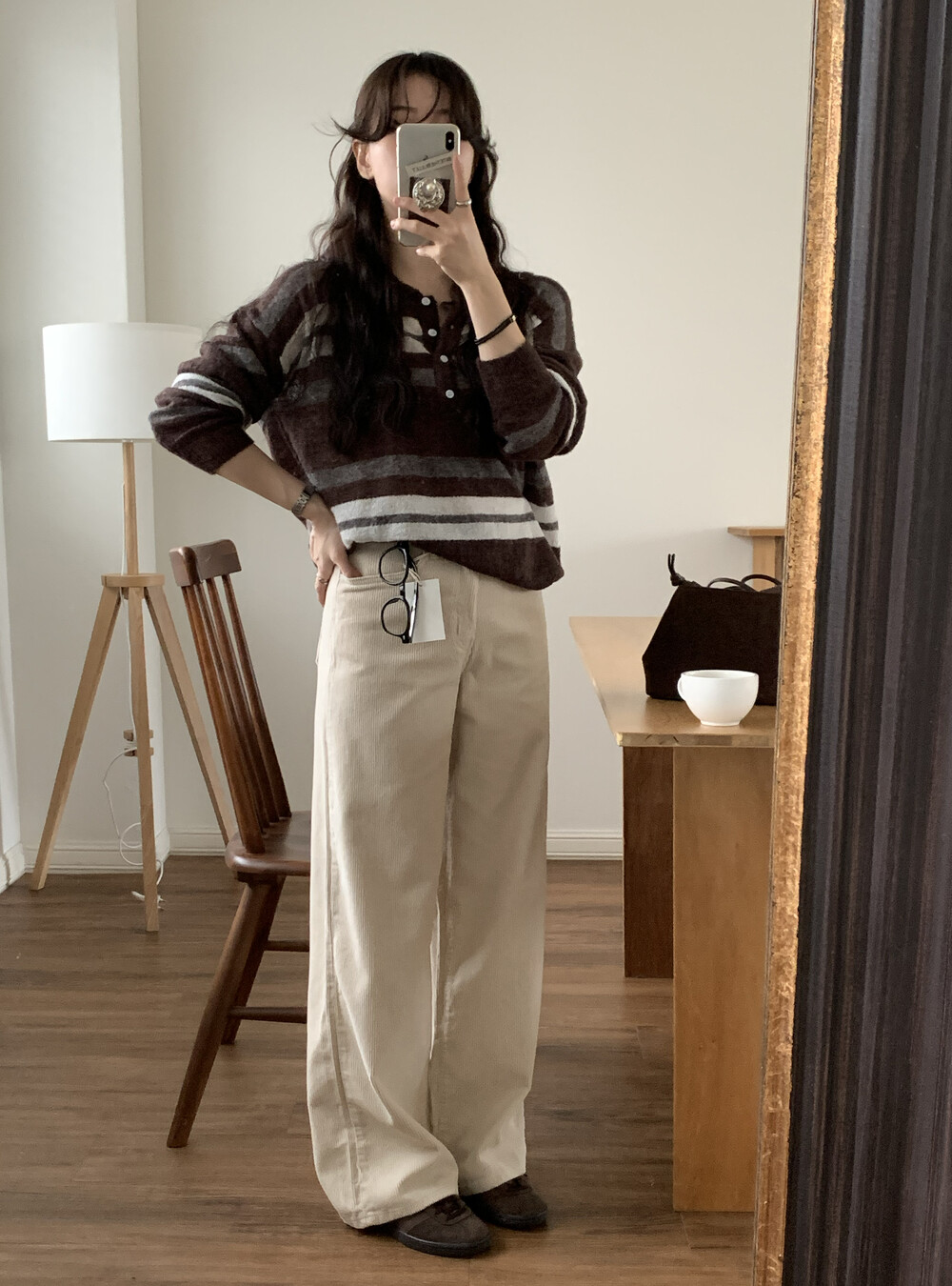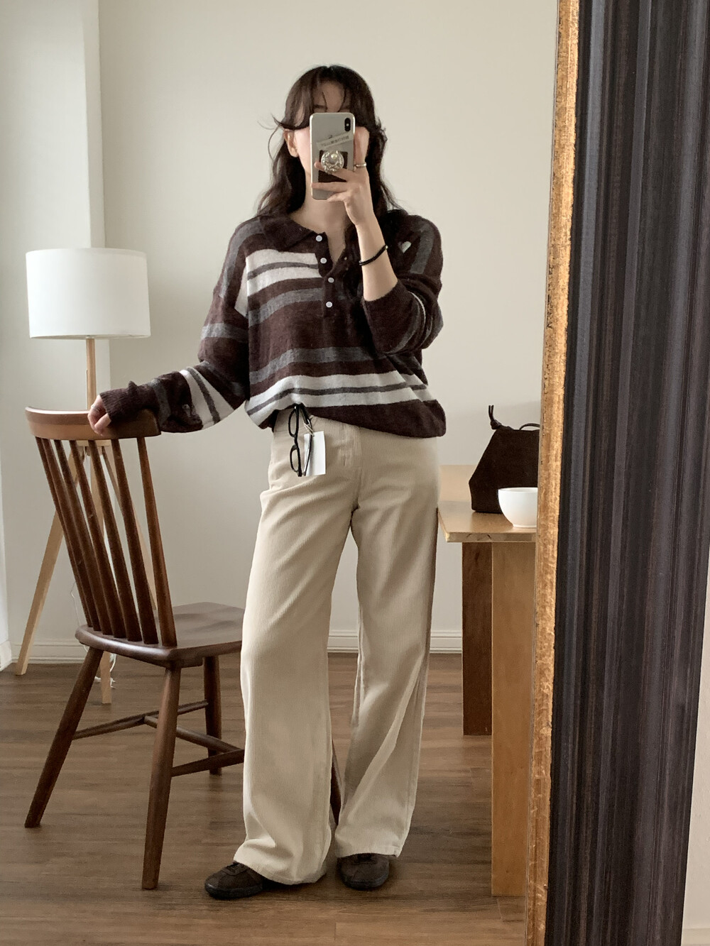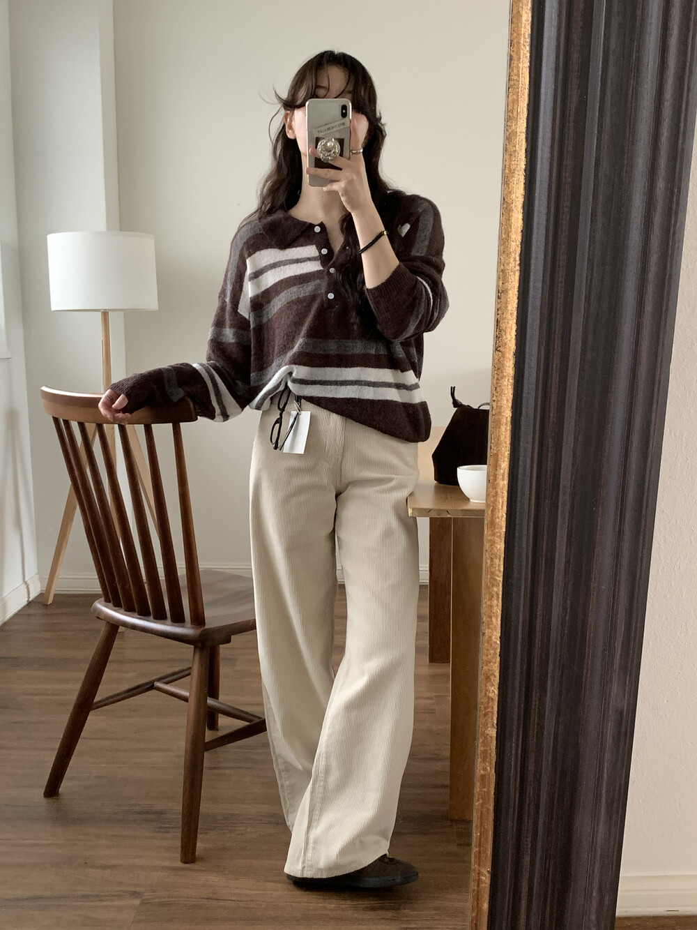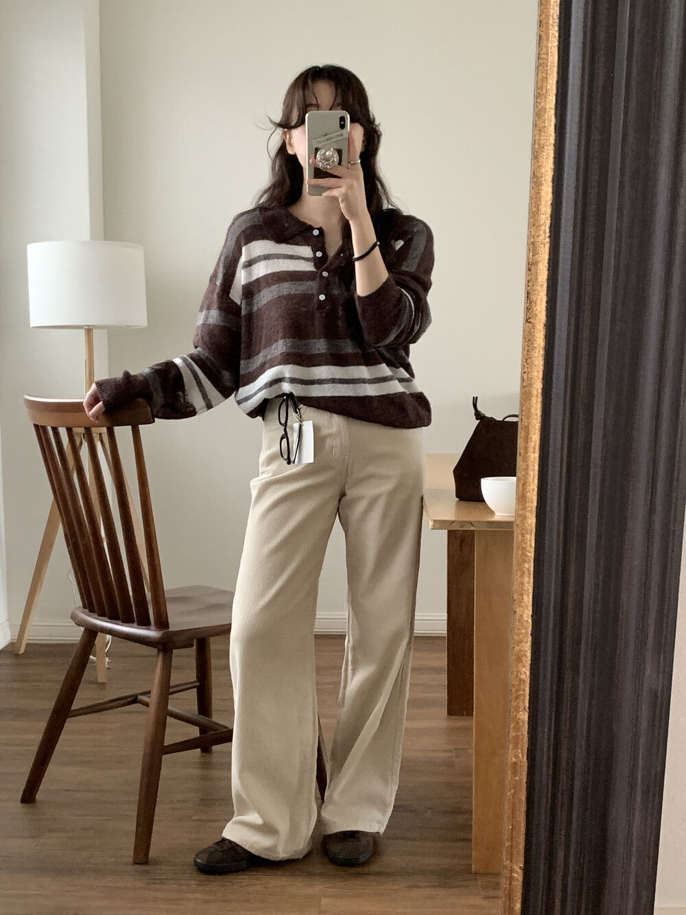 TOP - MOCHA STRIPE COLLAR KNIT(BROWN)