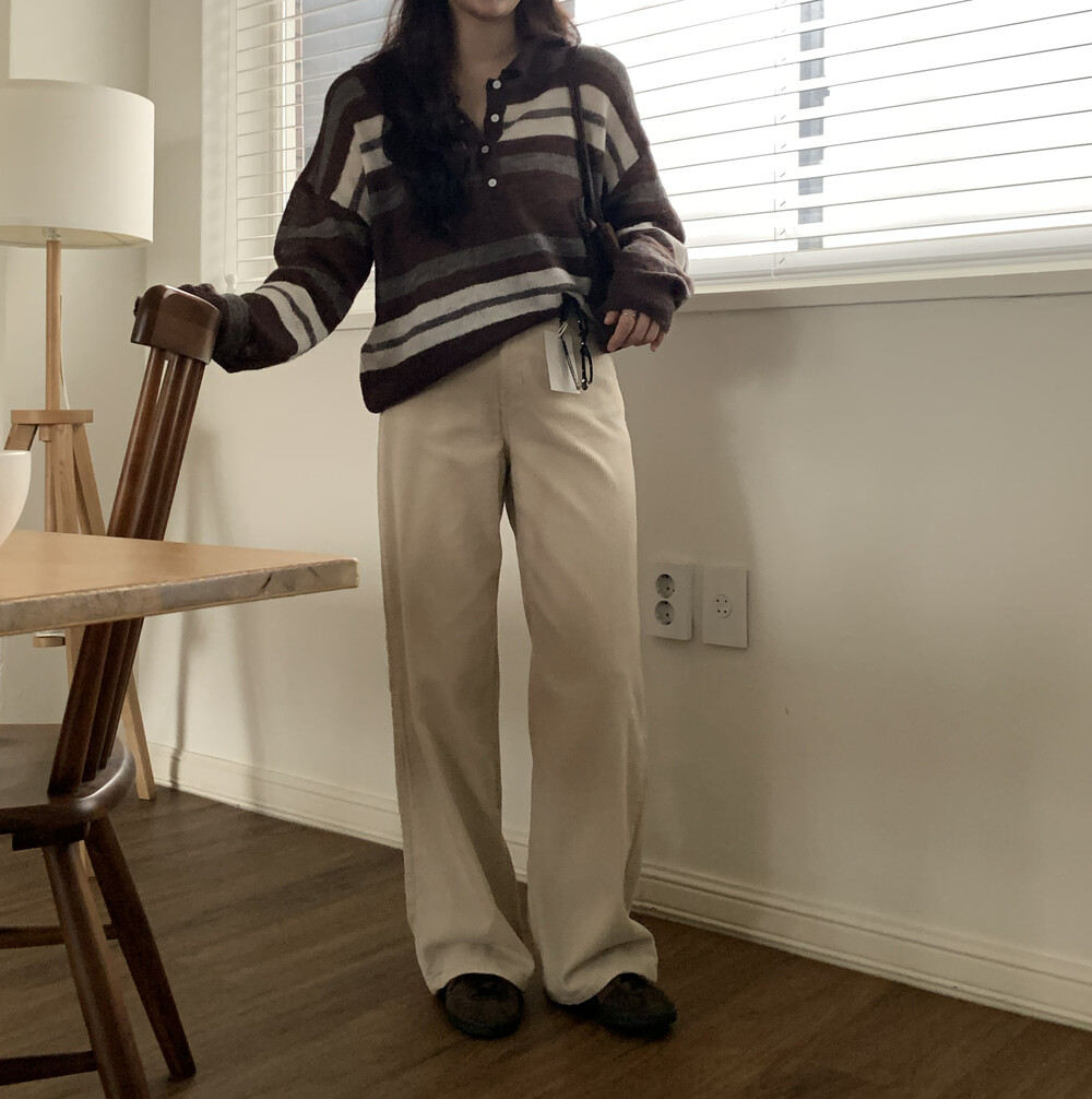 BOTTOM - SANDING CORDUROY WIDE PANTS(IVORY/S)