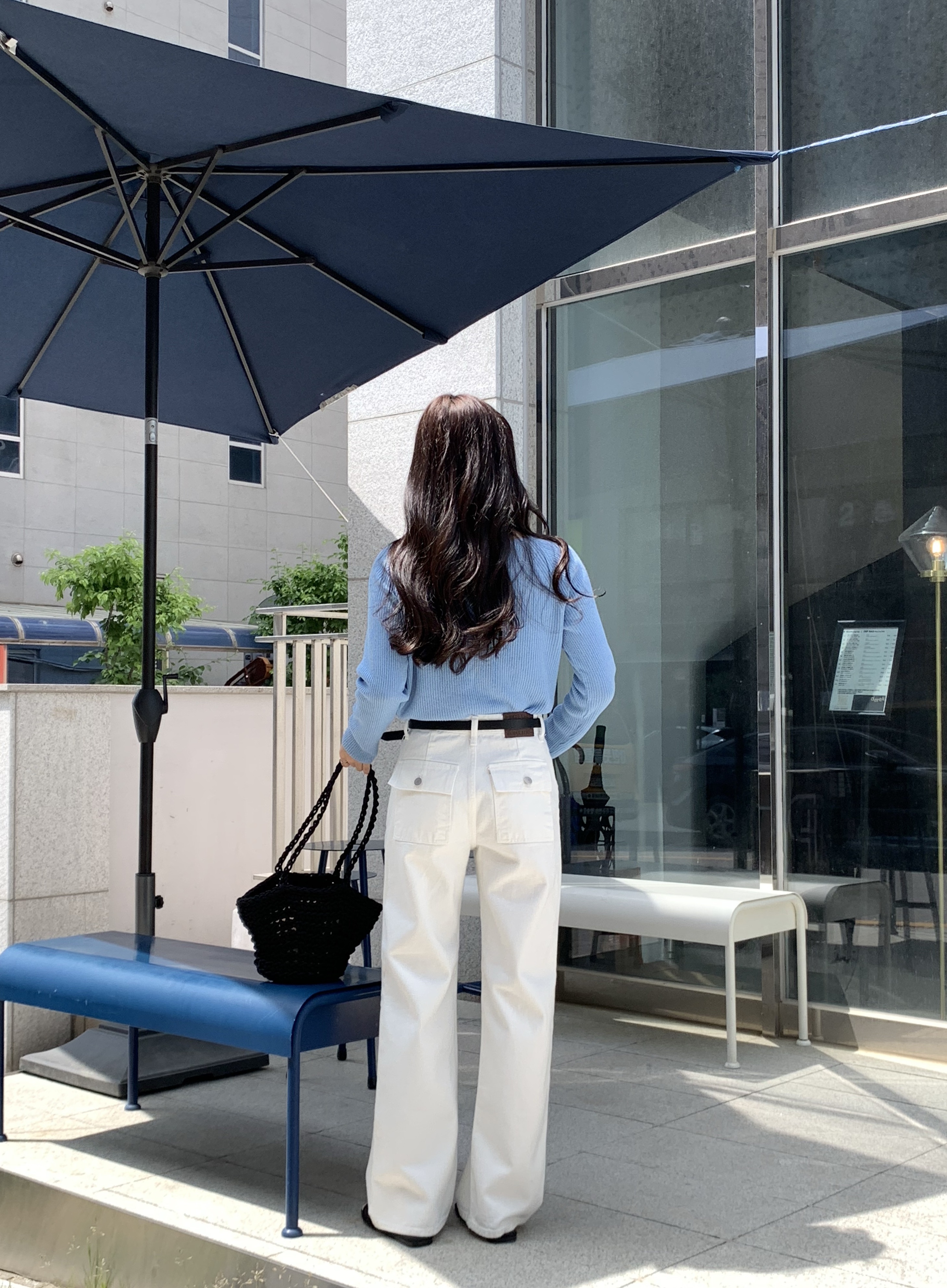 BOTTOM - BUTTON IVORY WIDE LONG COTTON PANTS(M)