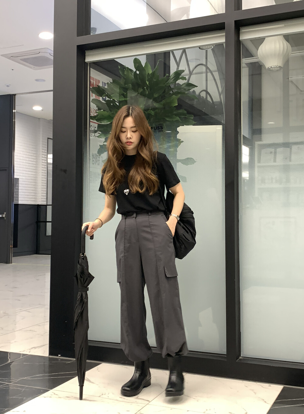 BOTTOM - URBAN CARGO LONG SLACKS(DARKGRAY)