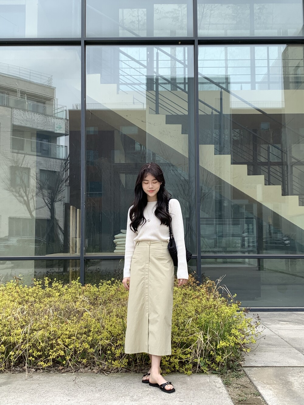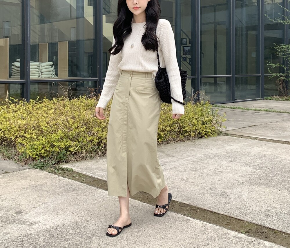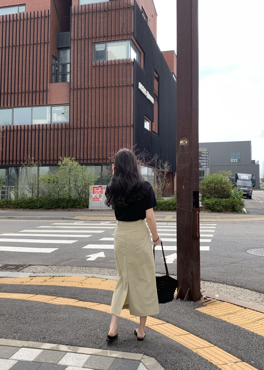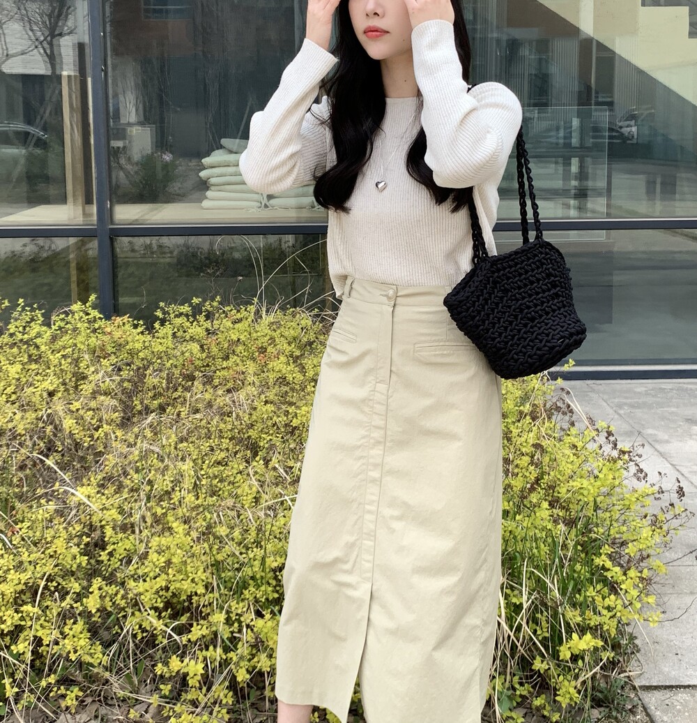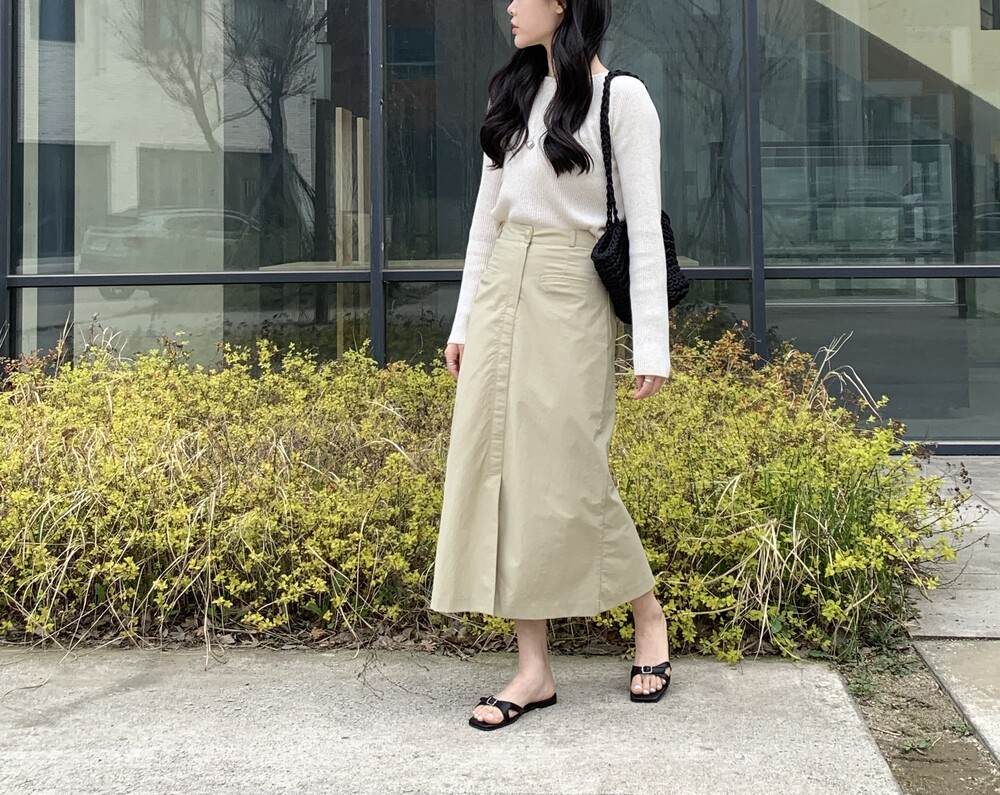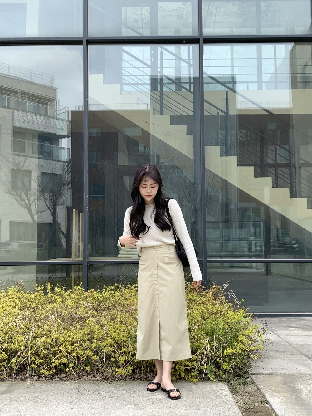 BOTTOM : PENNY SLIT LONG SKIRTS(LIGHT KHAKI/M)