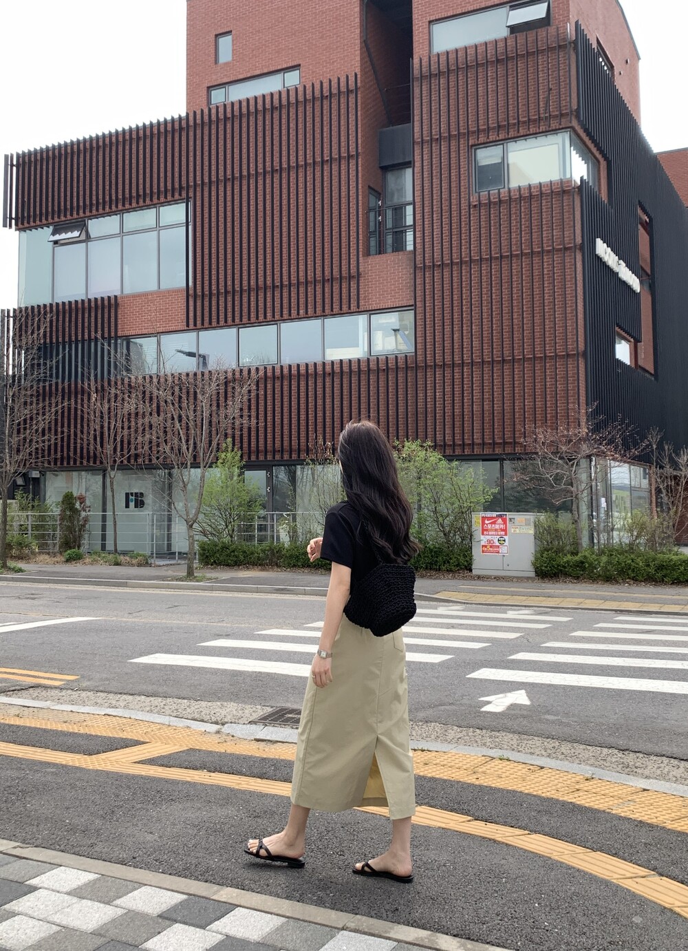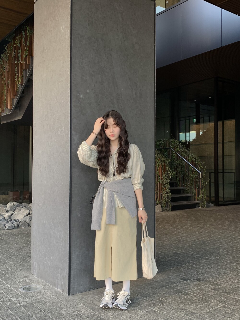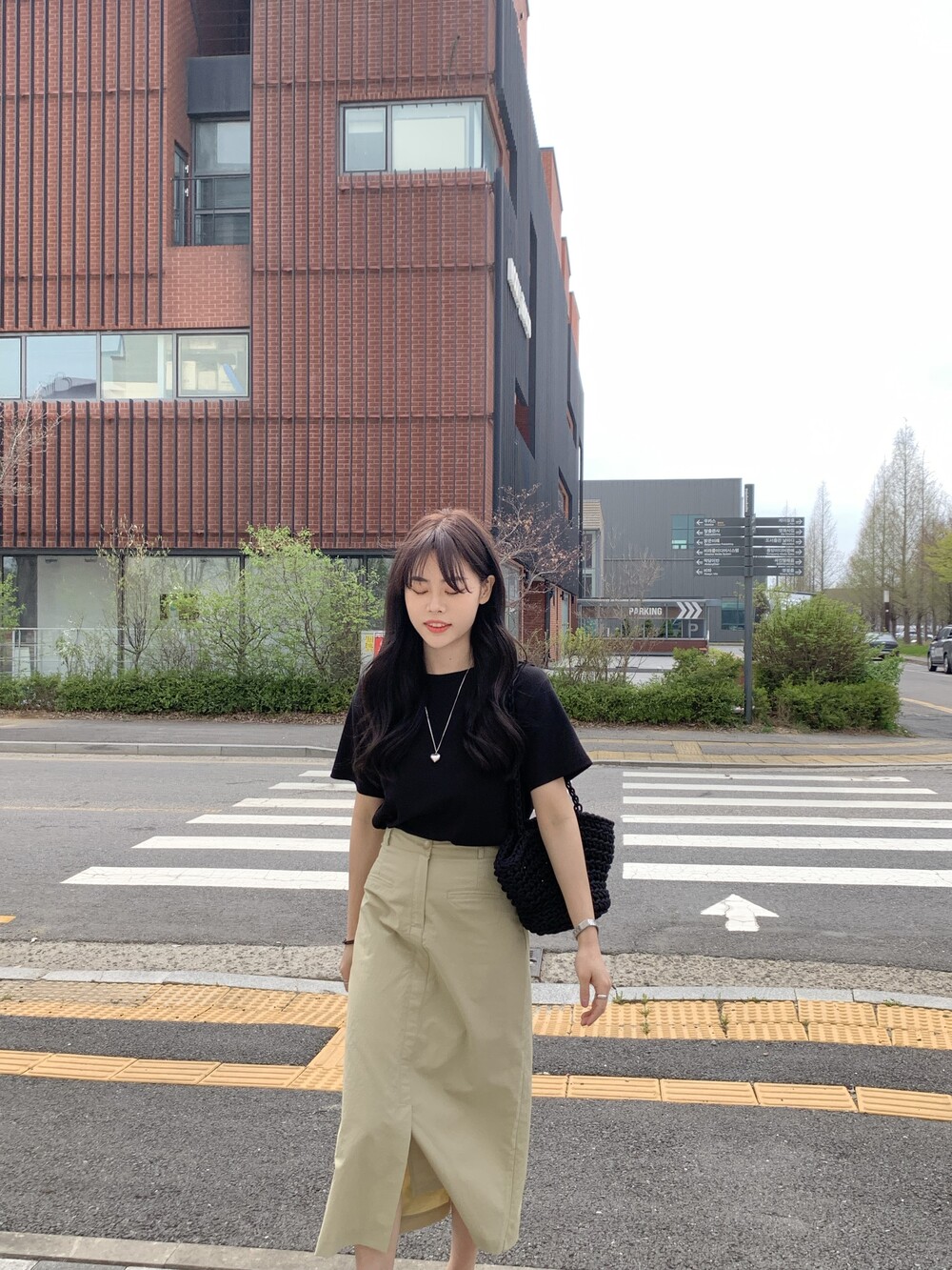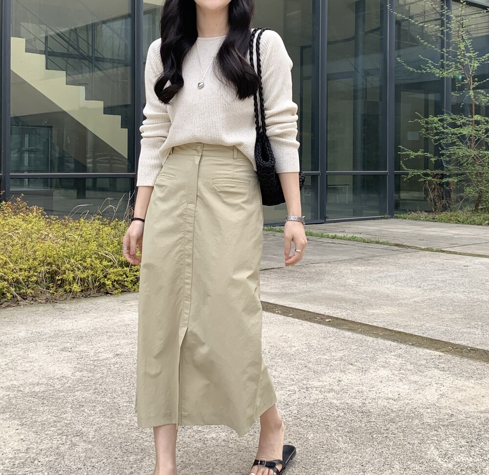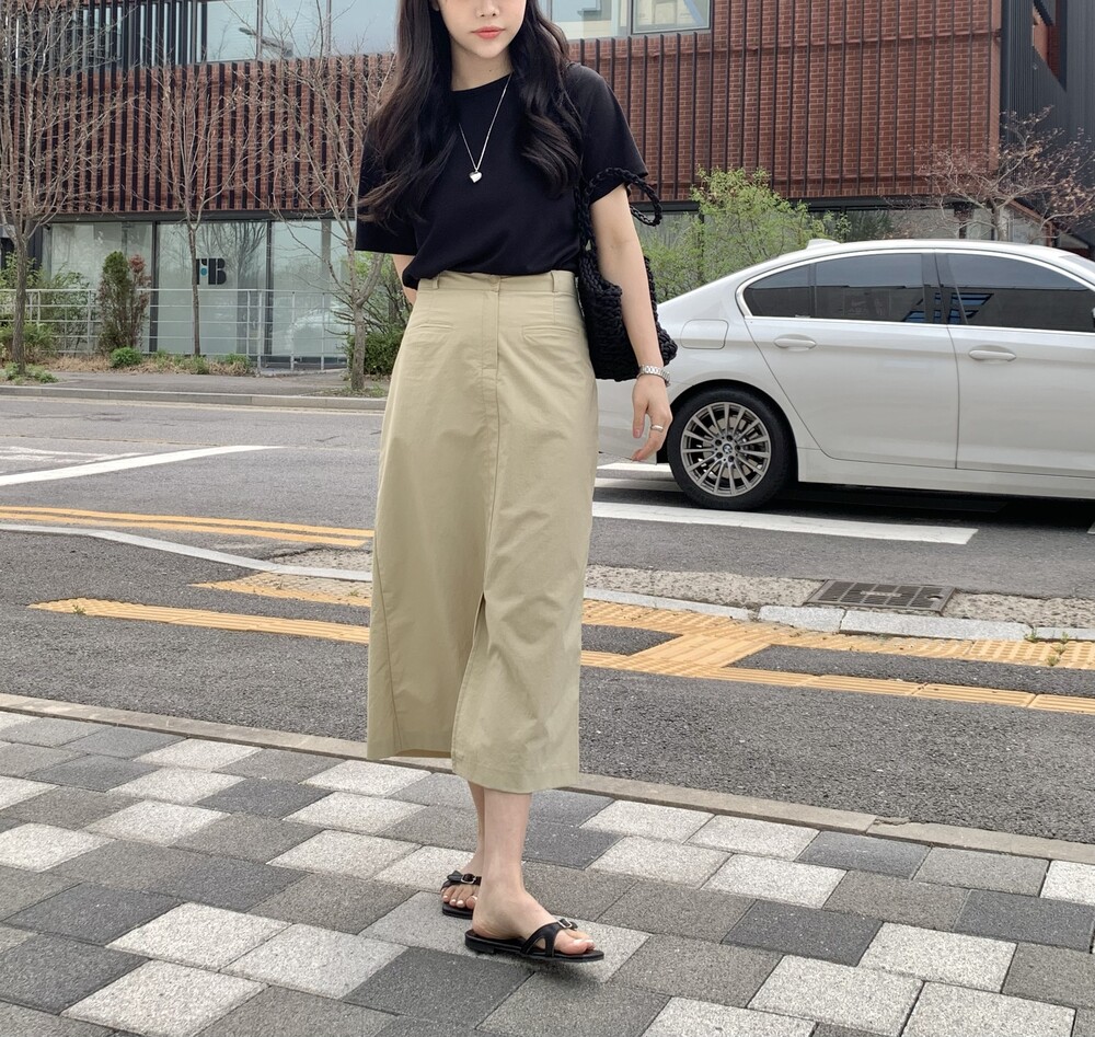 BOTTOM : PENNY SLIT LONG SKIRTS(LIGHT KHAKI/M)