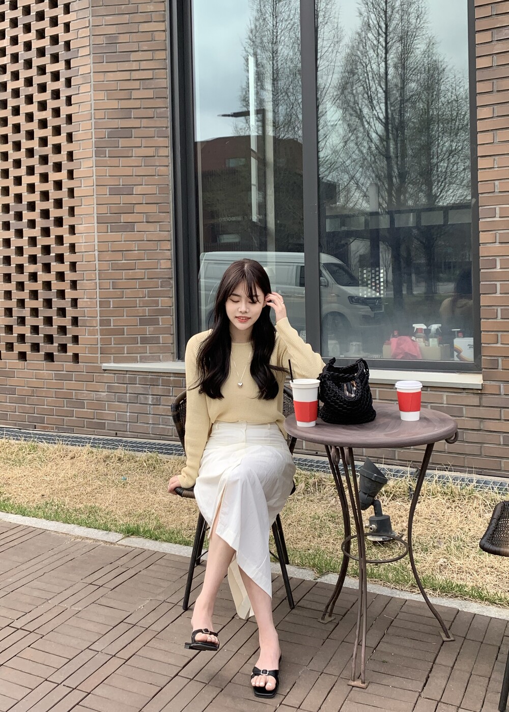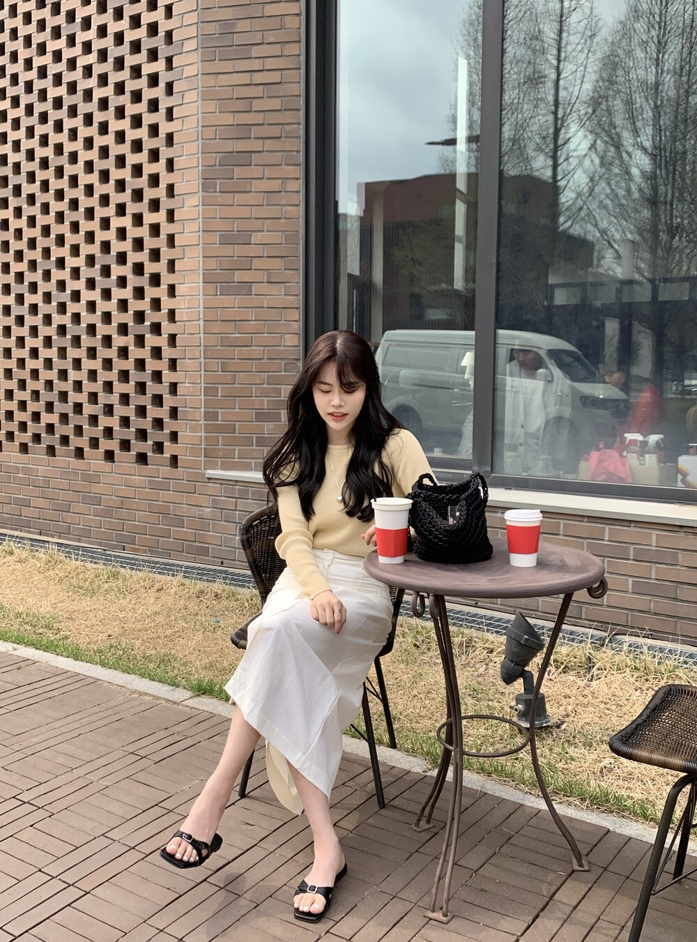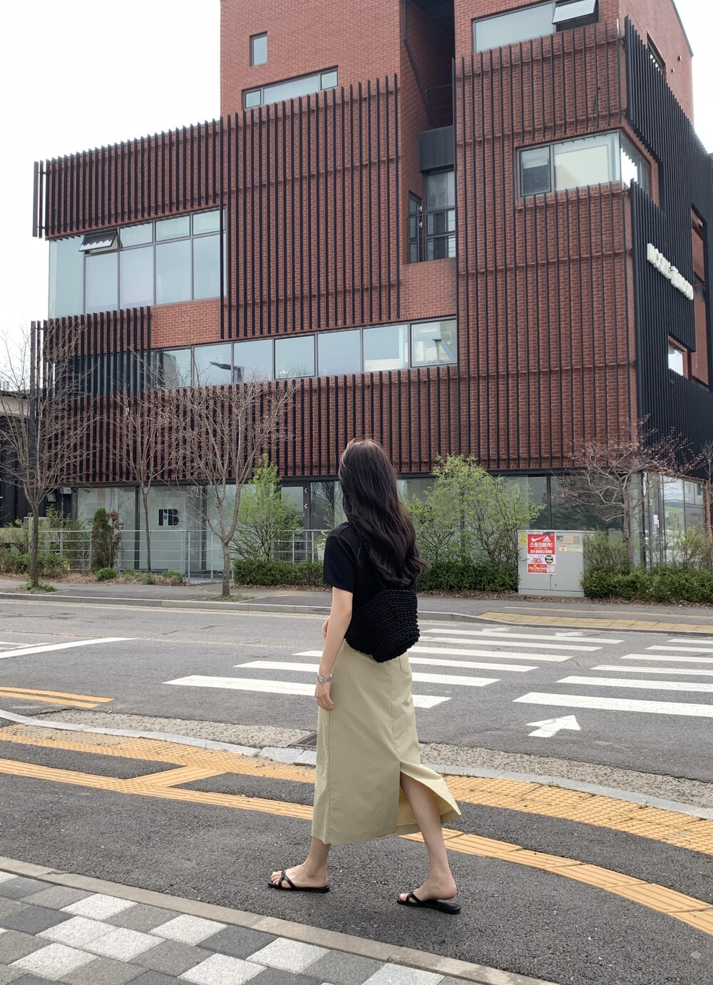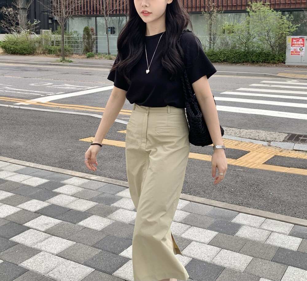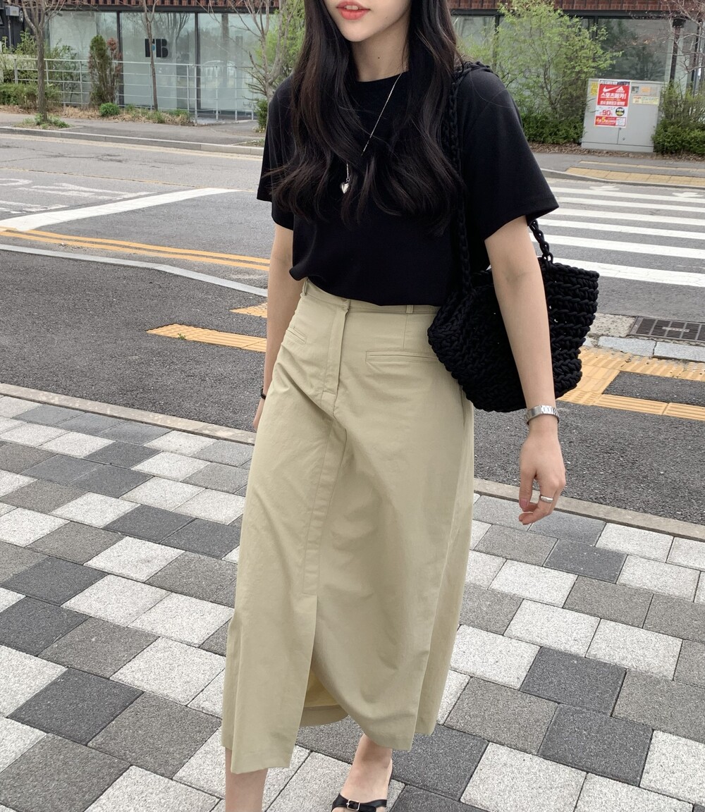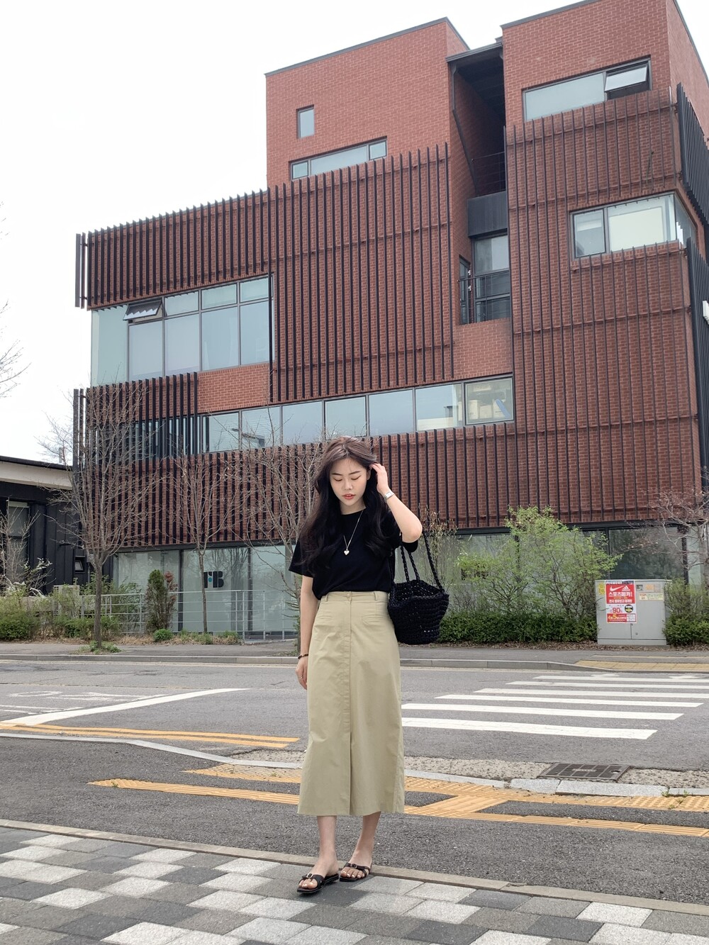 BOTTOM : PENNY SLIT LONG SKIRTS(LIGHT KHAKI/M)