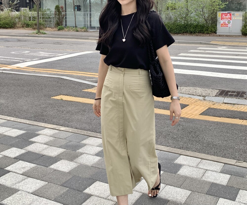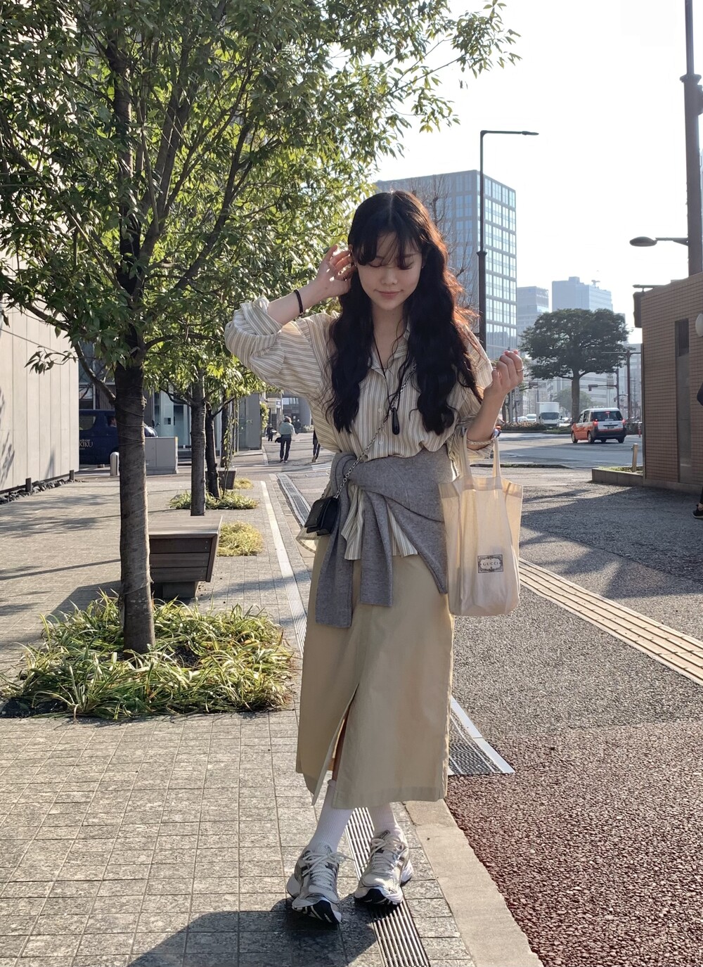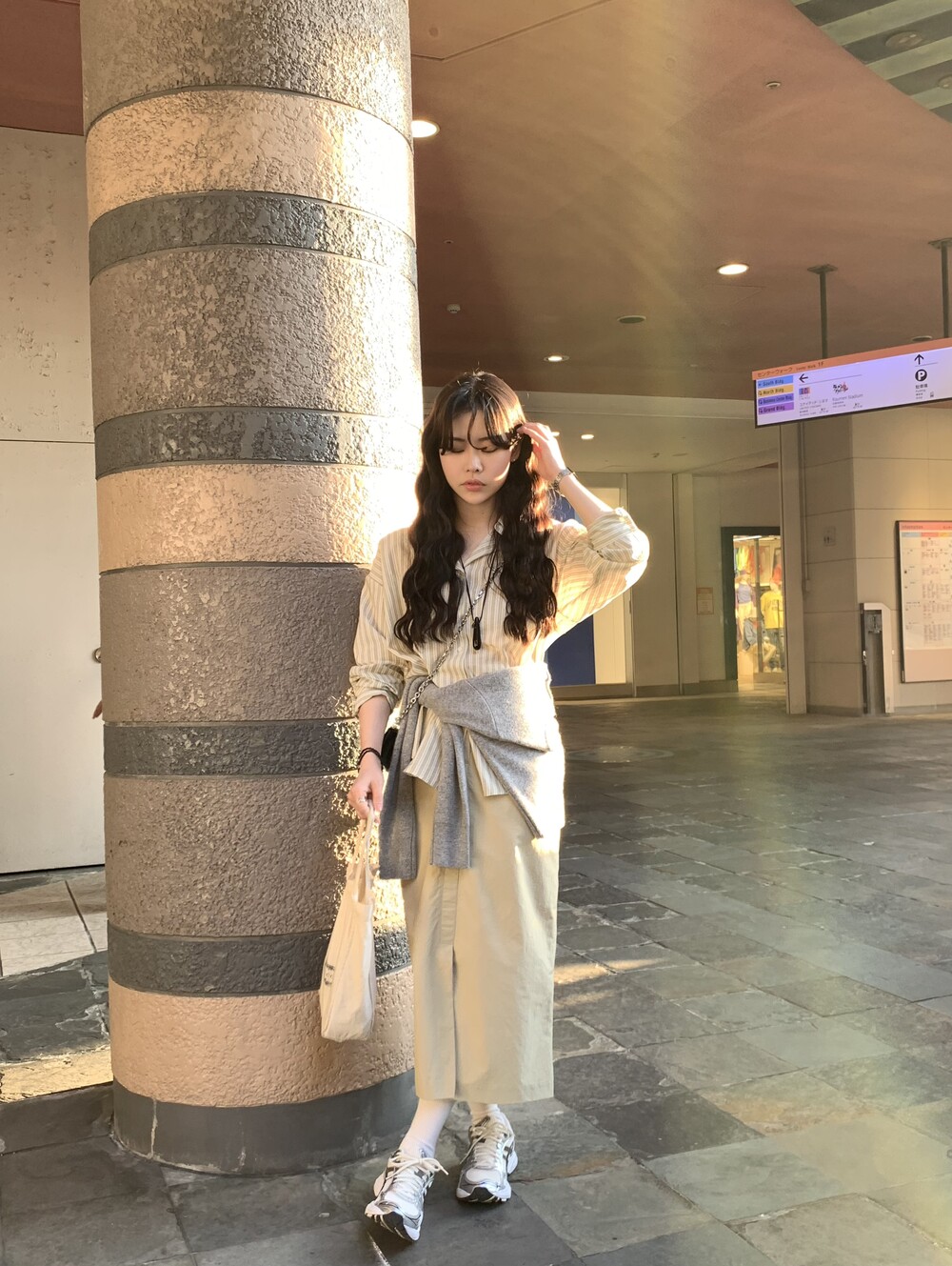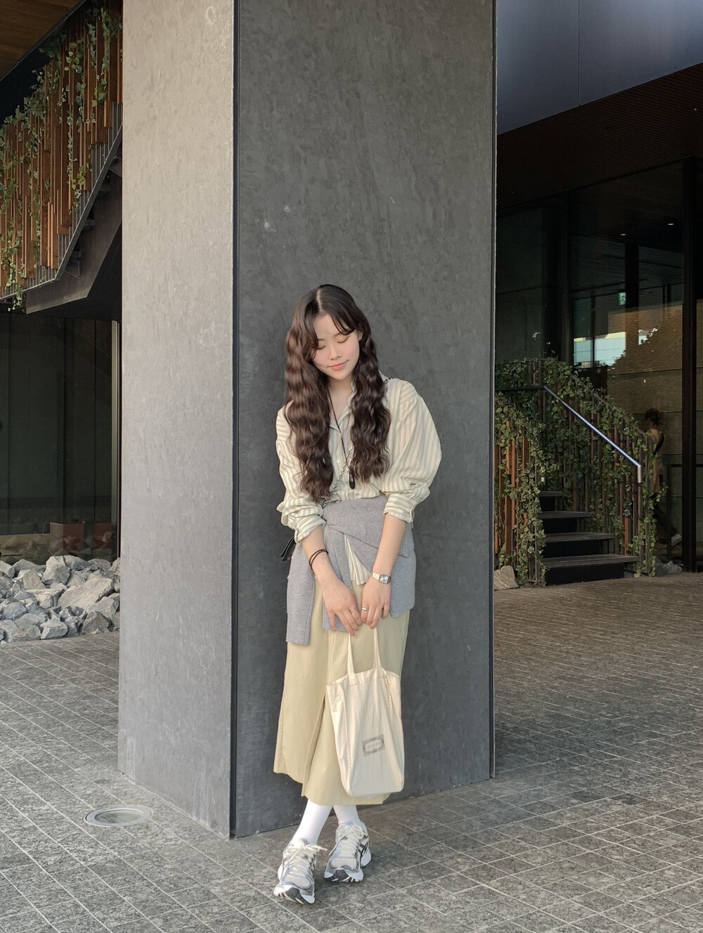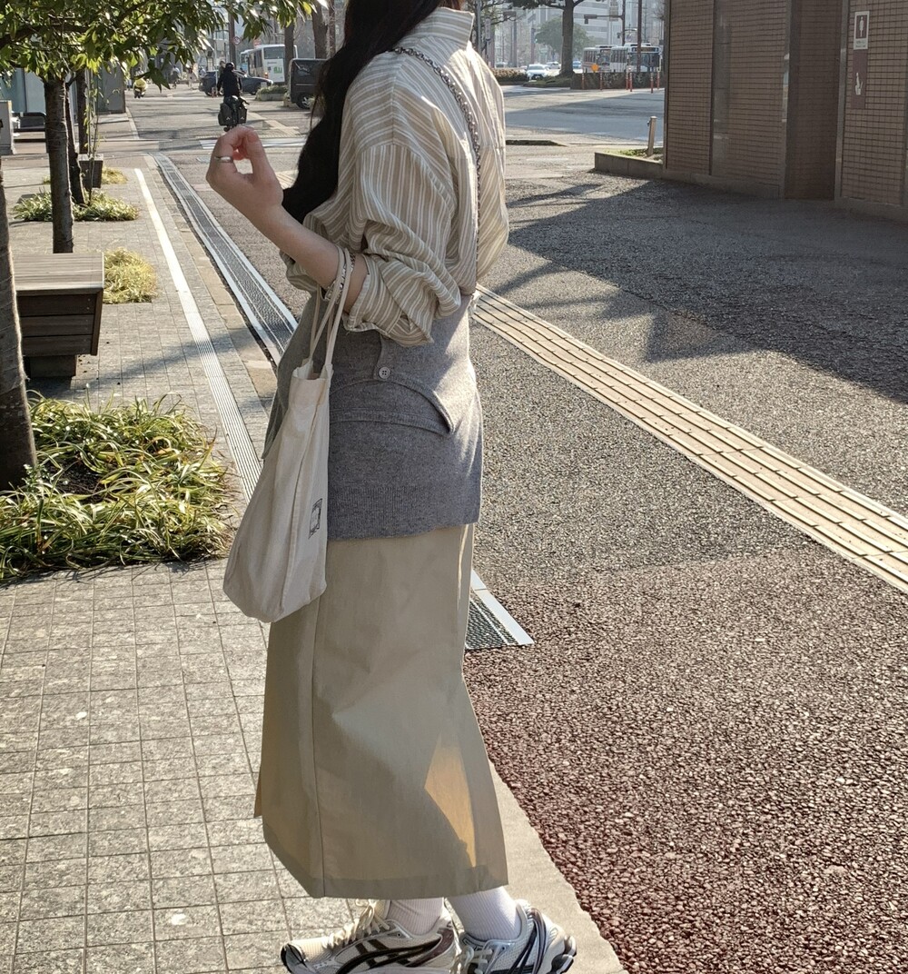 BOTTOM : PENNY SLIT LONG SKIRTS(LIGHT KHAKI/M)
