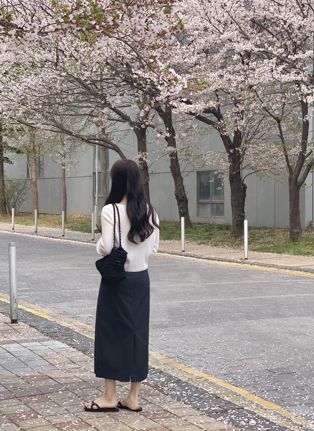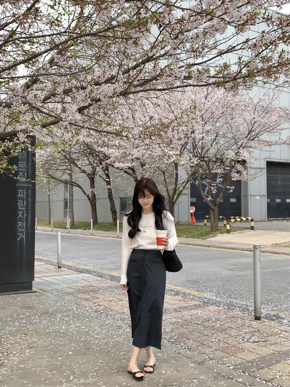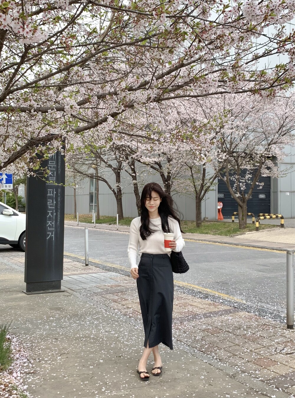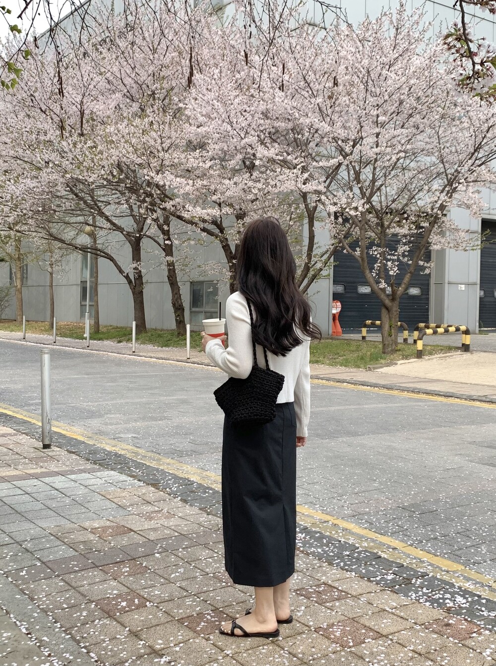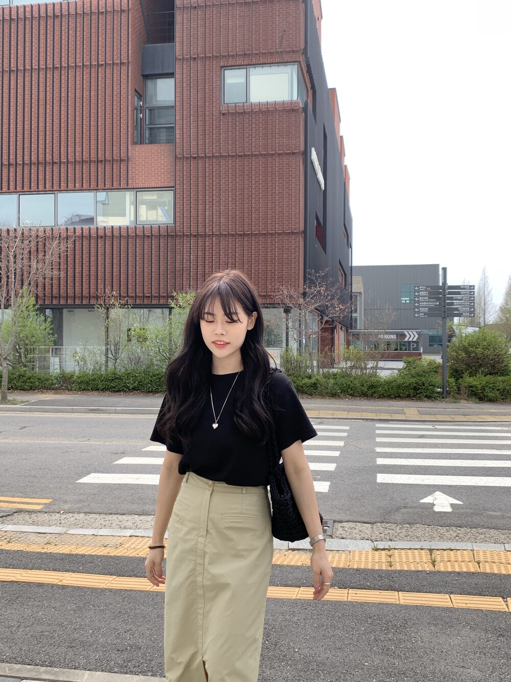 BOTTOM : PENNY SLIT LONG SKIRTS(CHACOAL)