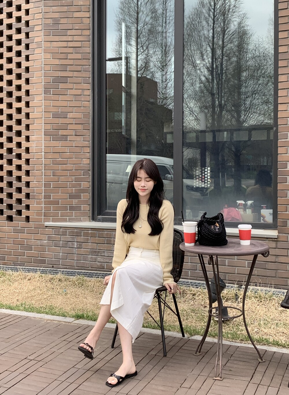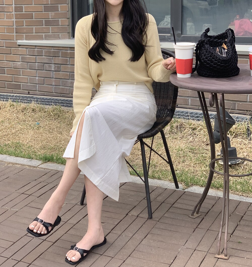 BOTTOM : PENNY SLIT LONG SKIRTS(IVORY/M)