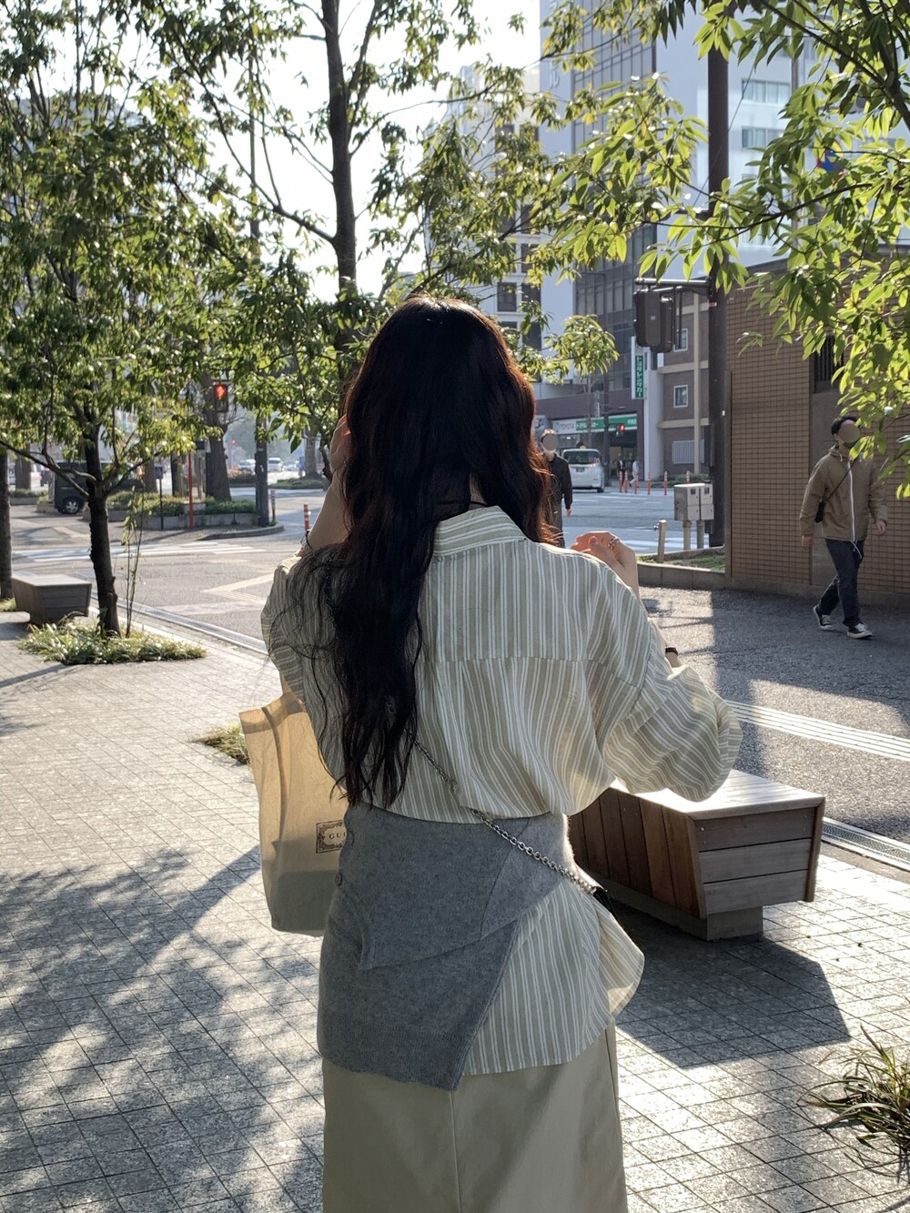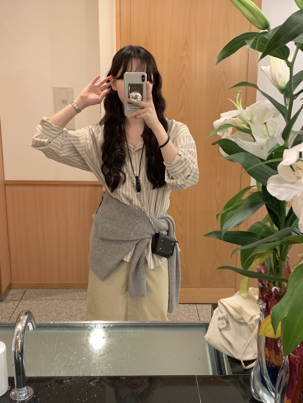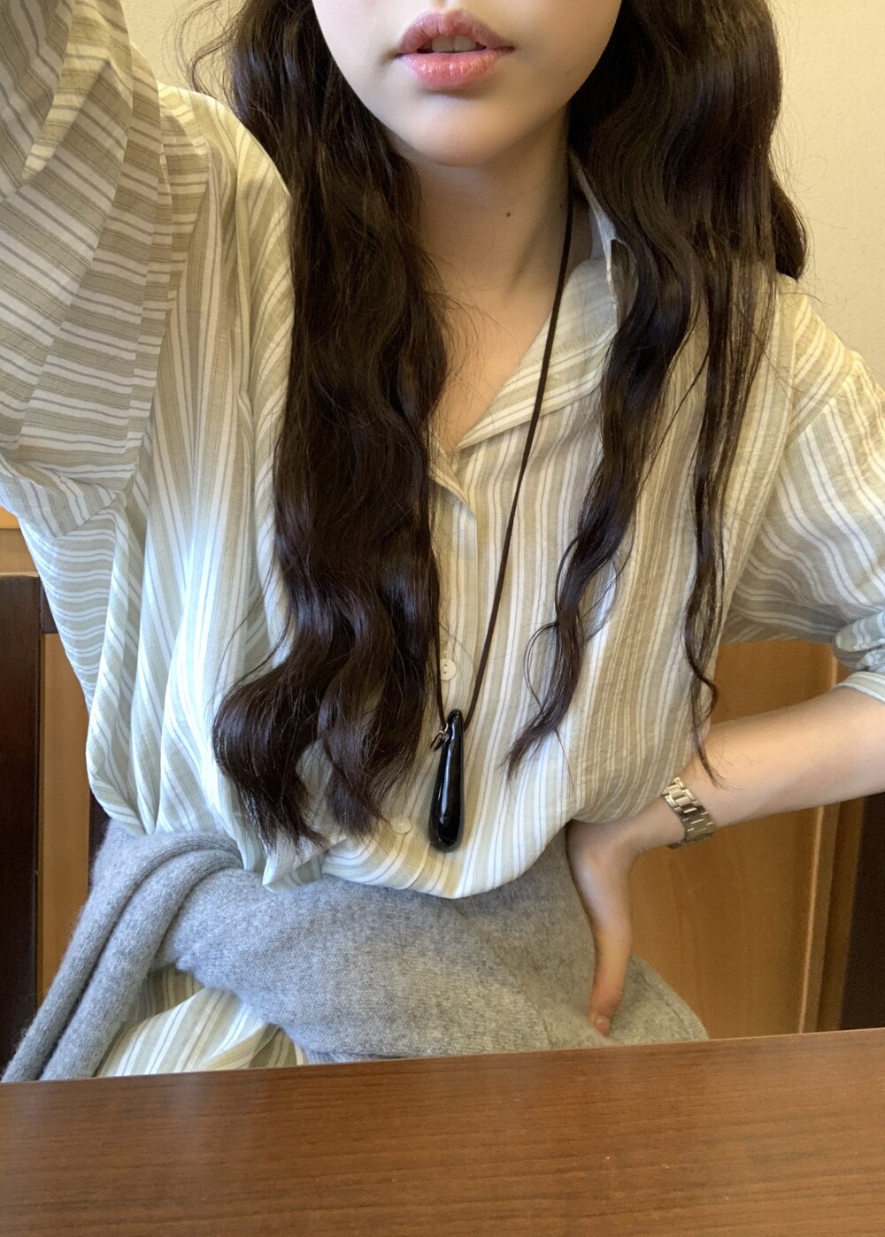 TOP - LAZY STRIPE SHIRTS(LIGHTKHAKI)