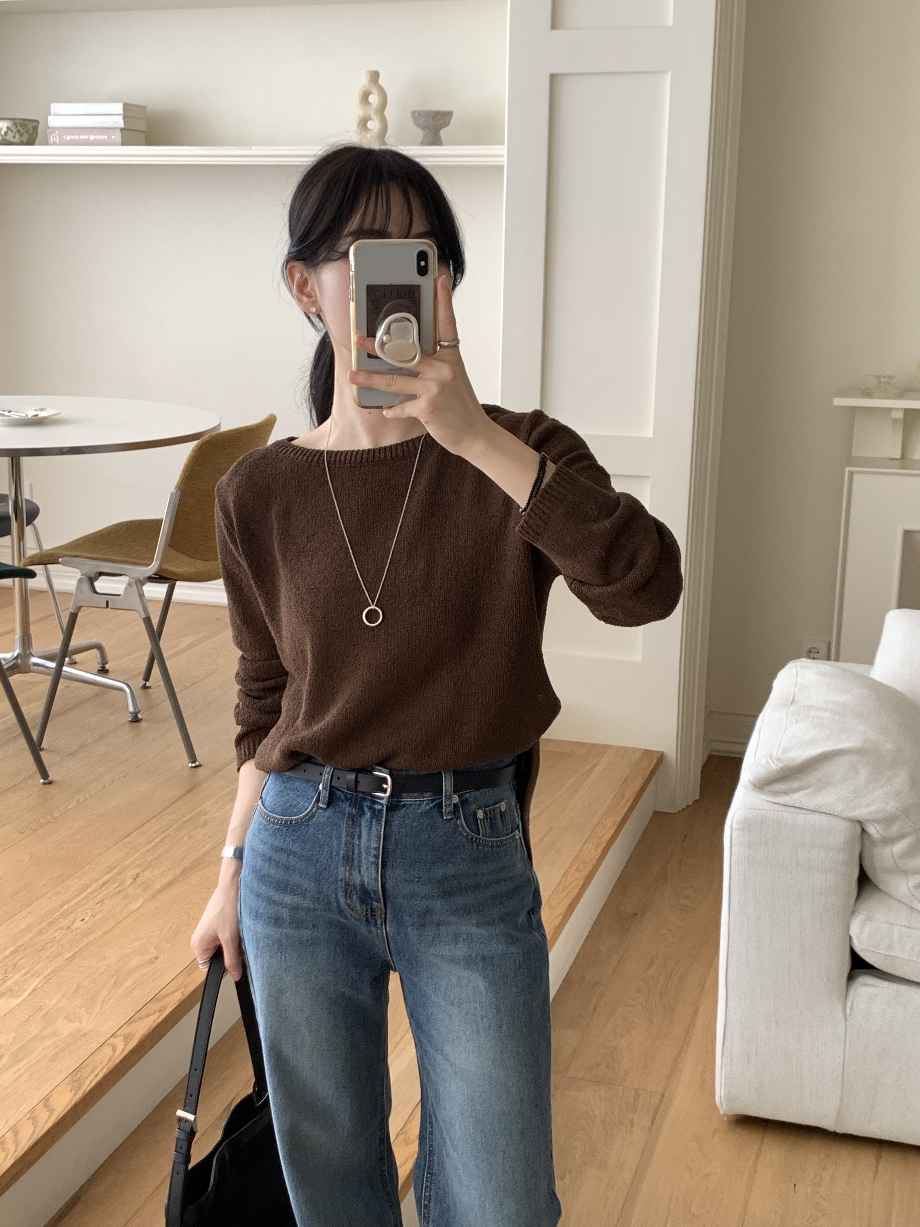 TOP - PLAIN SIDE SLIT KNIT(BROWN)