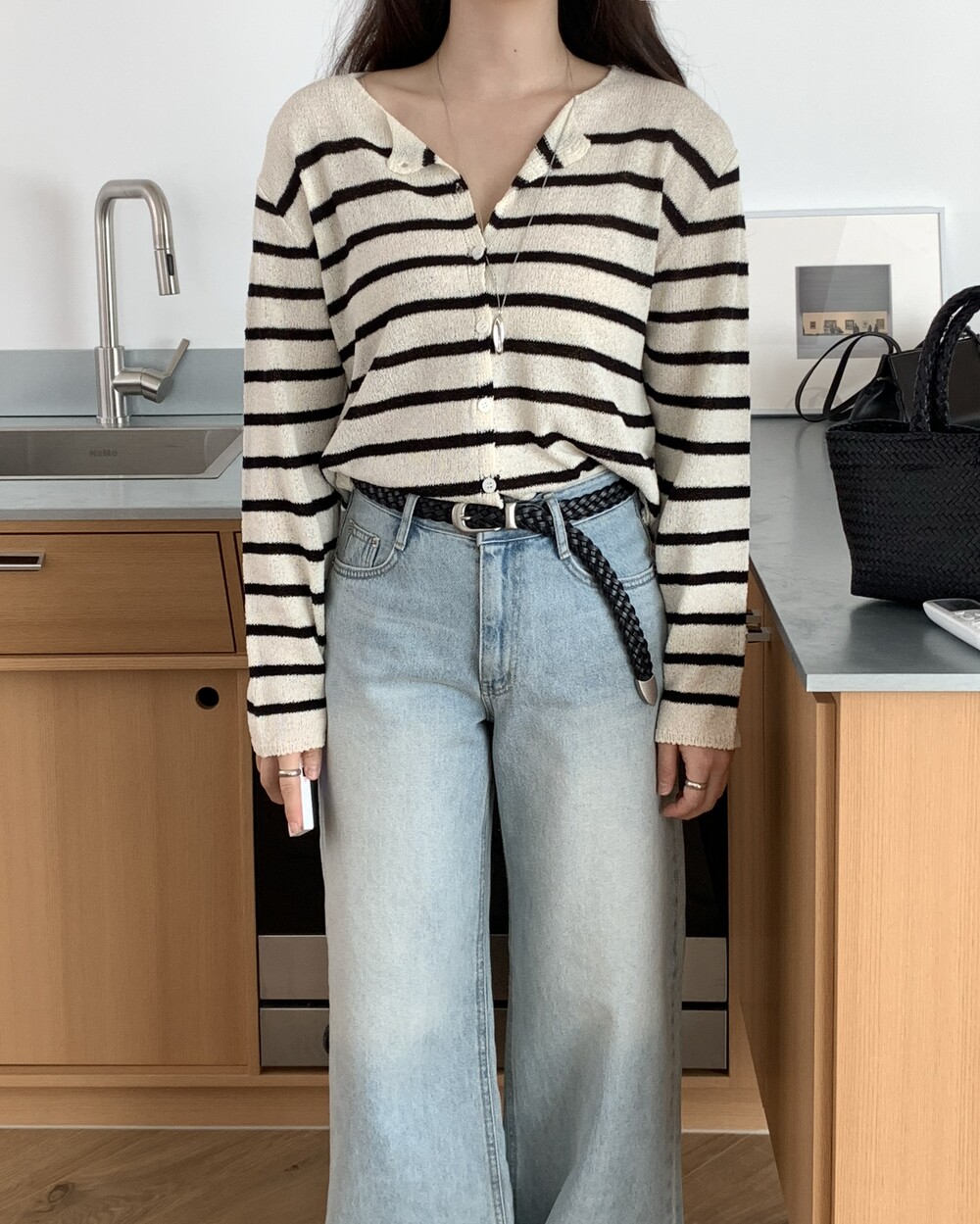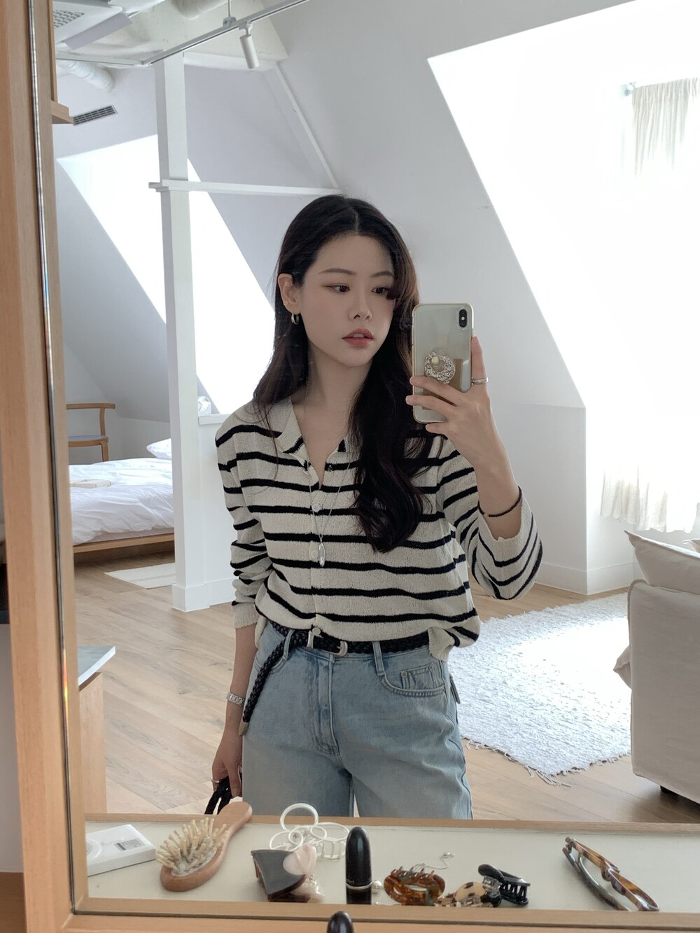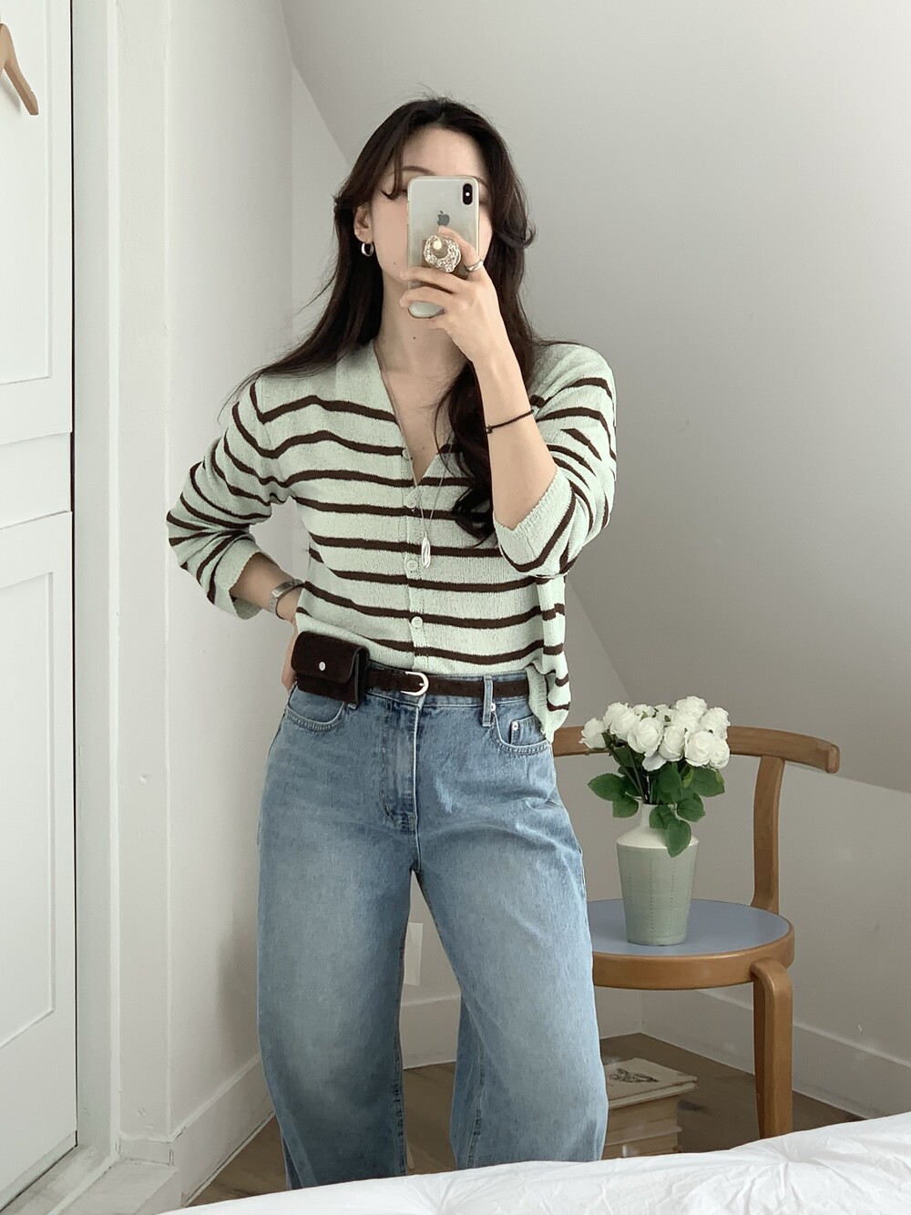 애슐리스트라이프니트가디건 ASHLEY STRIPE KNIT CARDIGAN