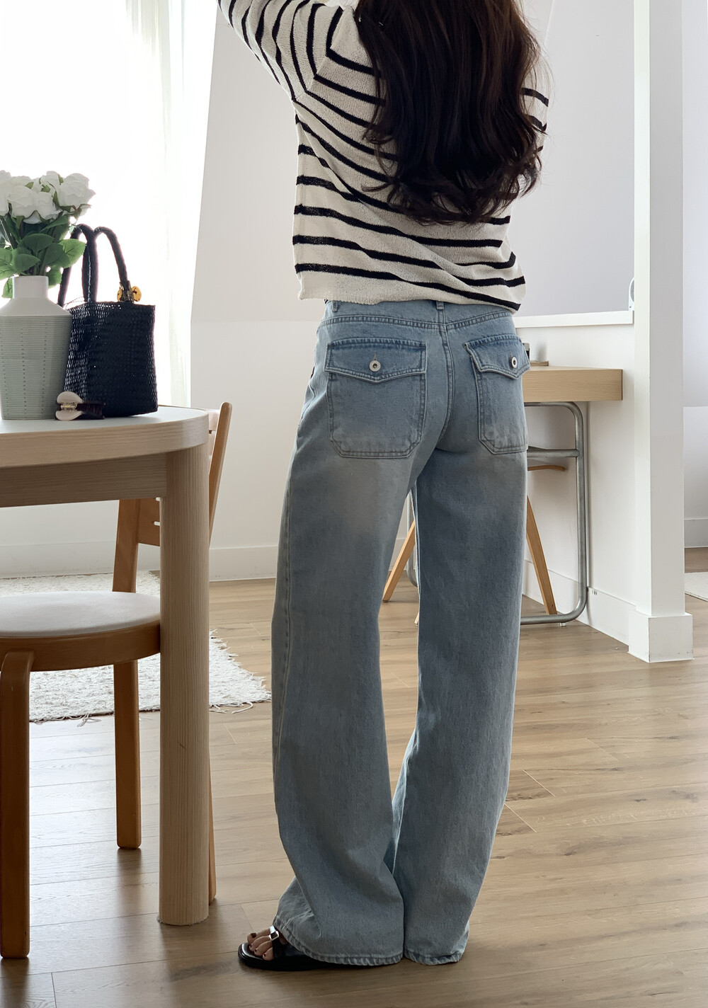 BOTTOM - BUTTON POINT LIGHT BLUE SEMI-WIDE DENIM (S)