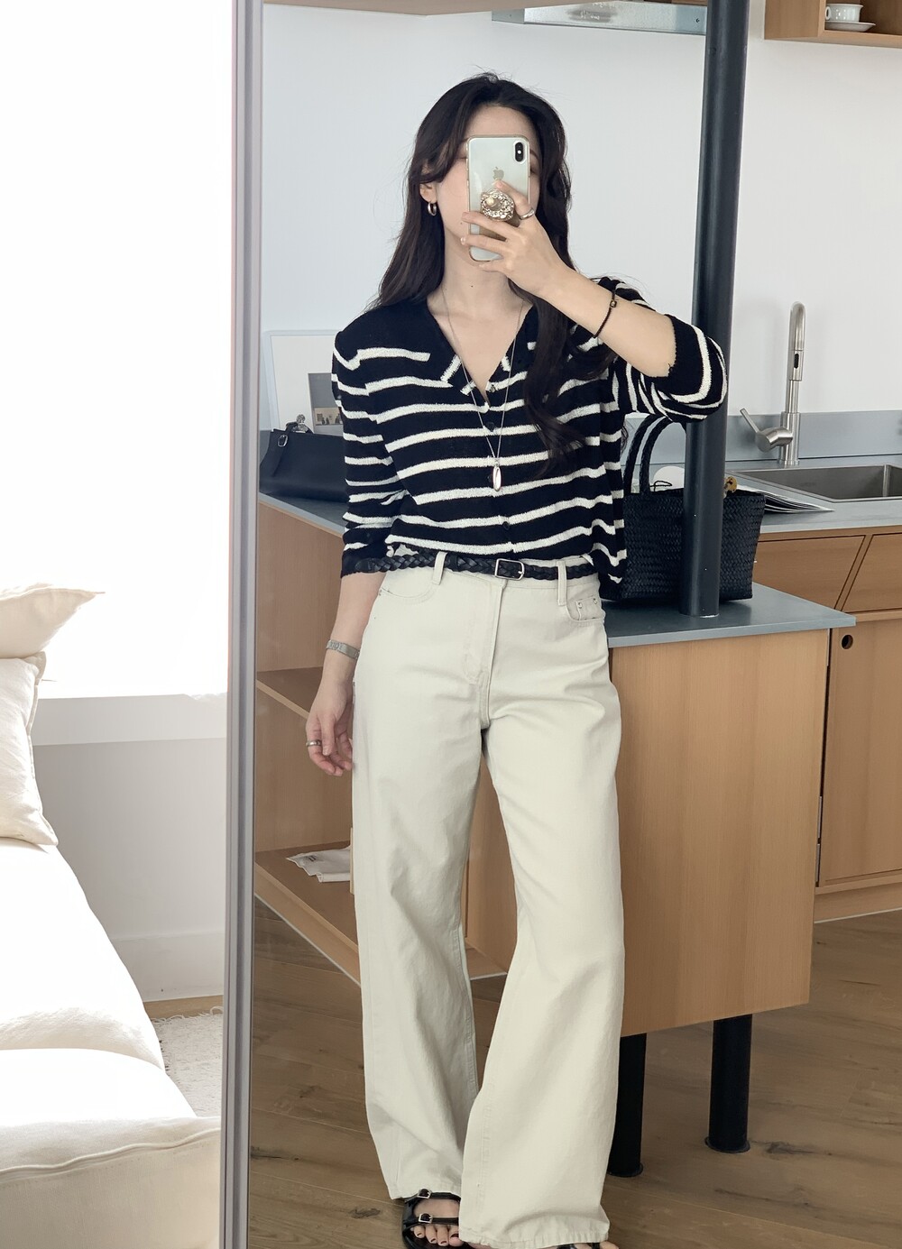TOP - ASHLEY STRIPE KNIT CARDIGAN (IVORY)