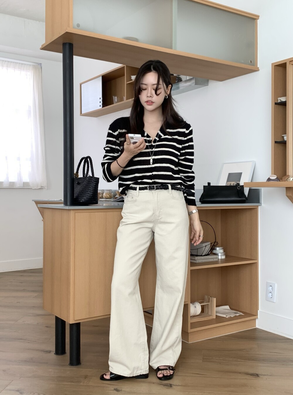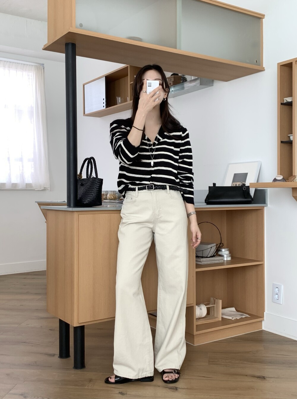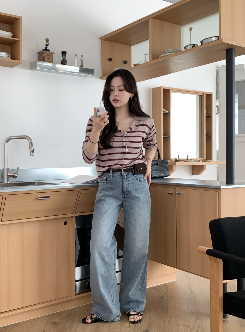 Coordination: ‘버튼 포인트 연청 세미 와이드 데님'과 매치하면 청량하면서도 캐주얼한 무드를 극대화할 수 있습니다. 특히 연핑크나 라이트민트 컬러는 연청 데님과 만났을 때 더욱 맑고 깨끗한 느낌을 줍니다. 슬랙스나 스커트와 함께 매치하여 단정한 출근 룩이나 데이트 룩으로도 활용해 보세요!