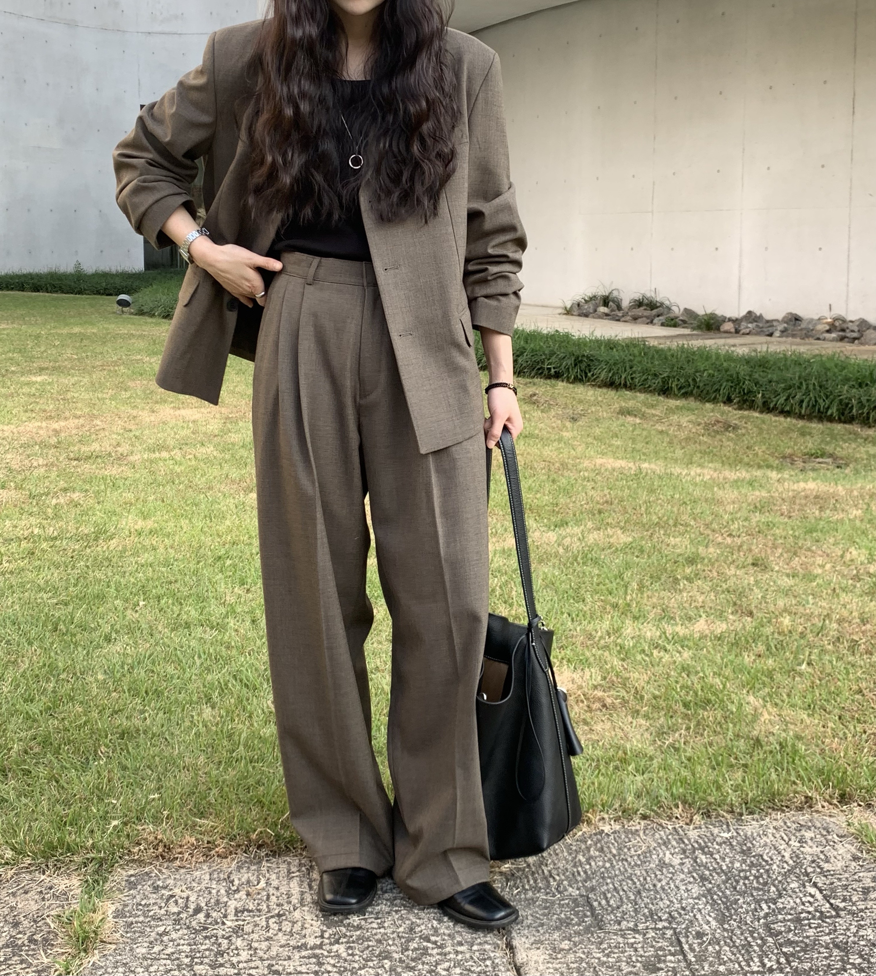 BOTTOM - MATIN SET UP TWO PINTUCK WIDE SLACKS(KHAKI/WS)