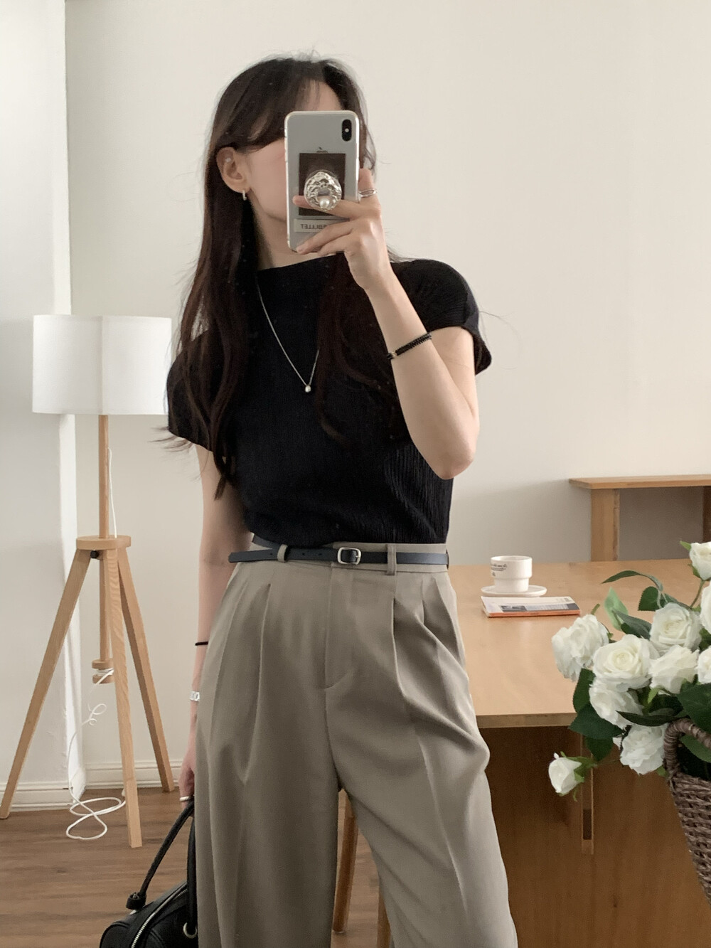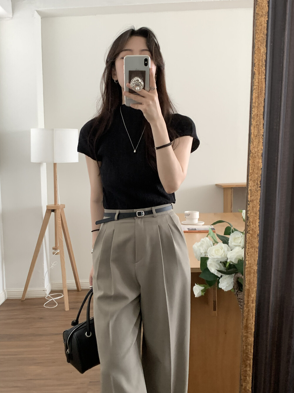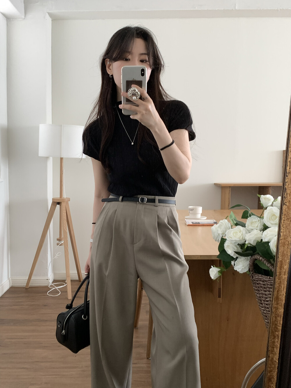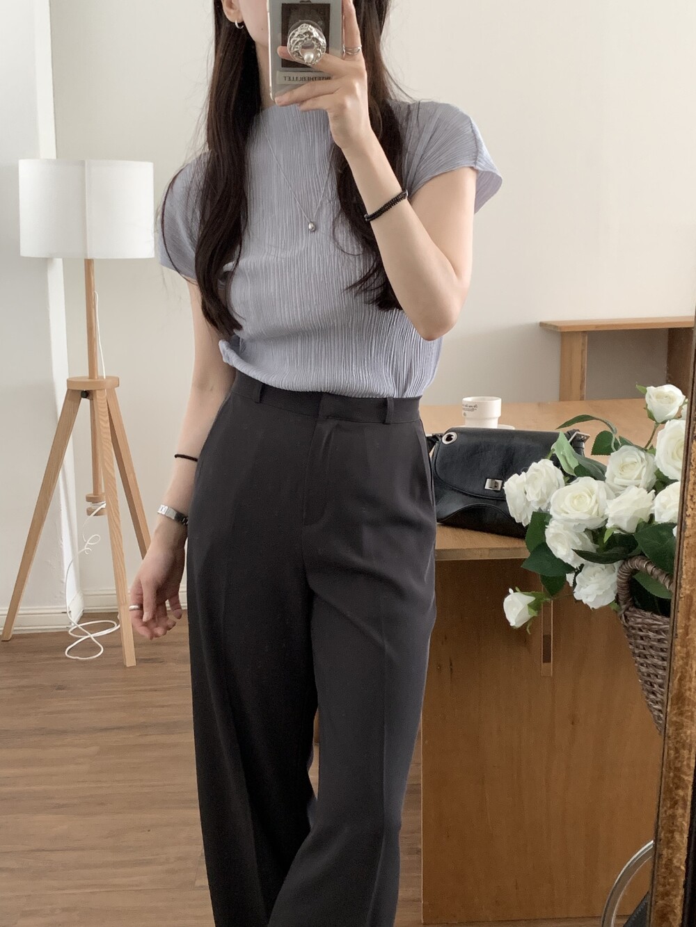 BOTTOM - ICE NO-PINTUCK SLACKS(CHACOAL/S)