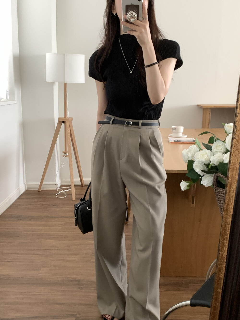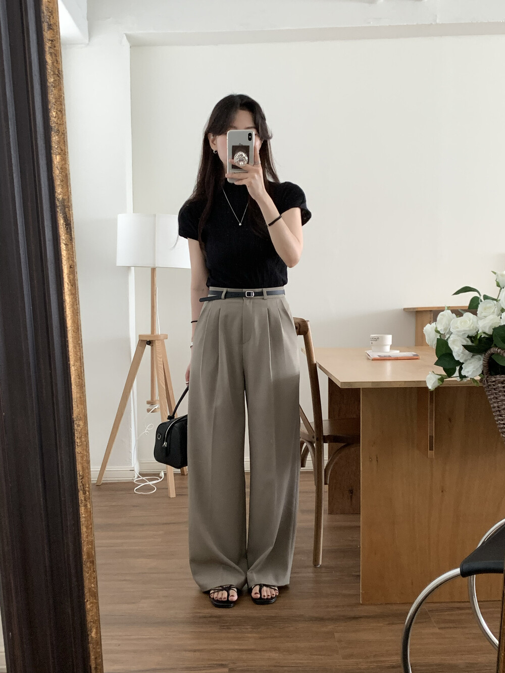 BOTTOM - POST TWO-TUCK WIDE LONG SLACKS(KHAKIGRAY/S)