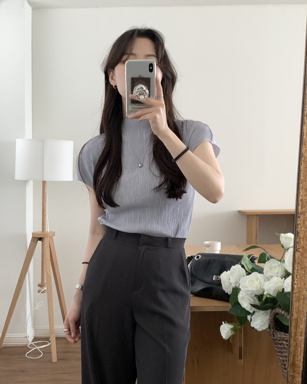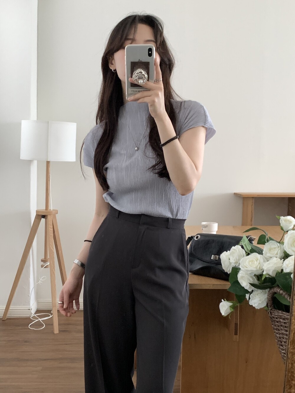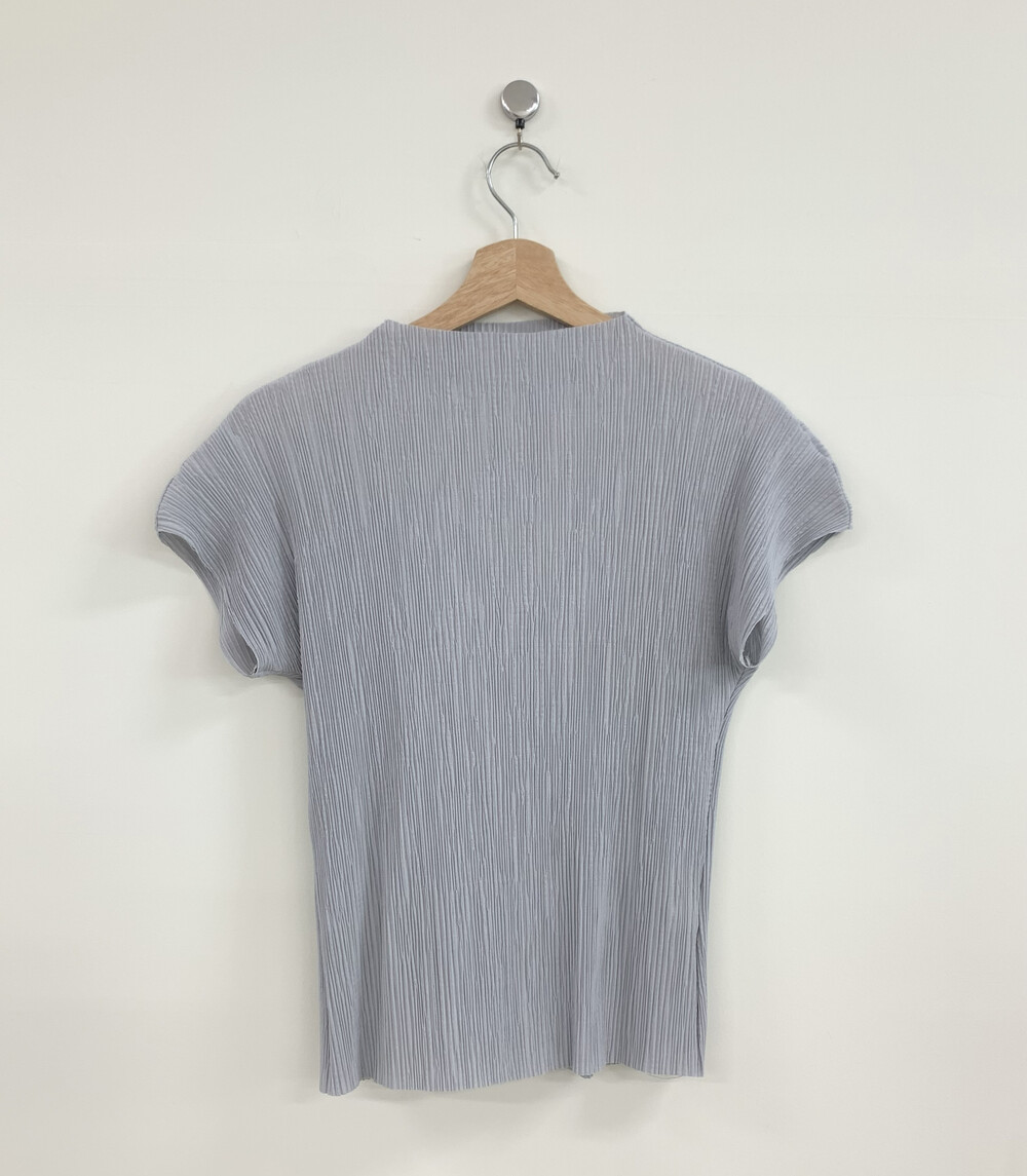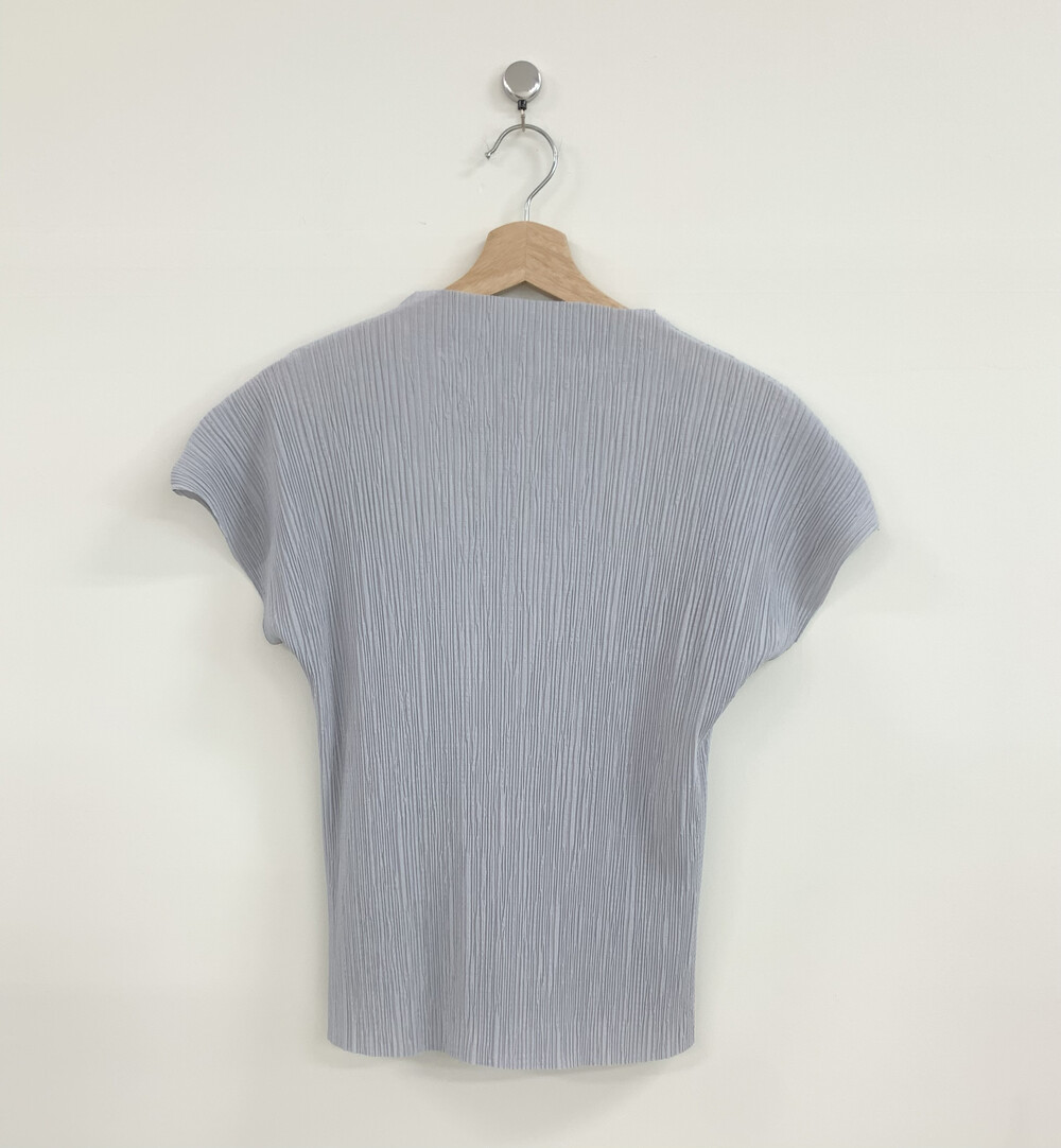 TOP - CURVE HALF-NECK PLEATS BLOUSE(BLUEGRAY)