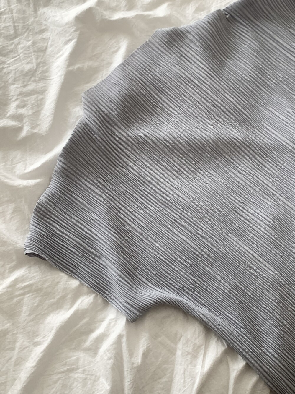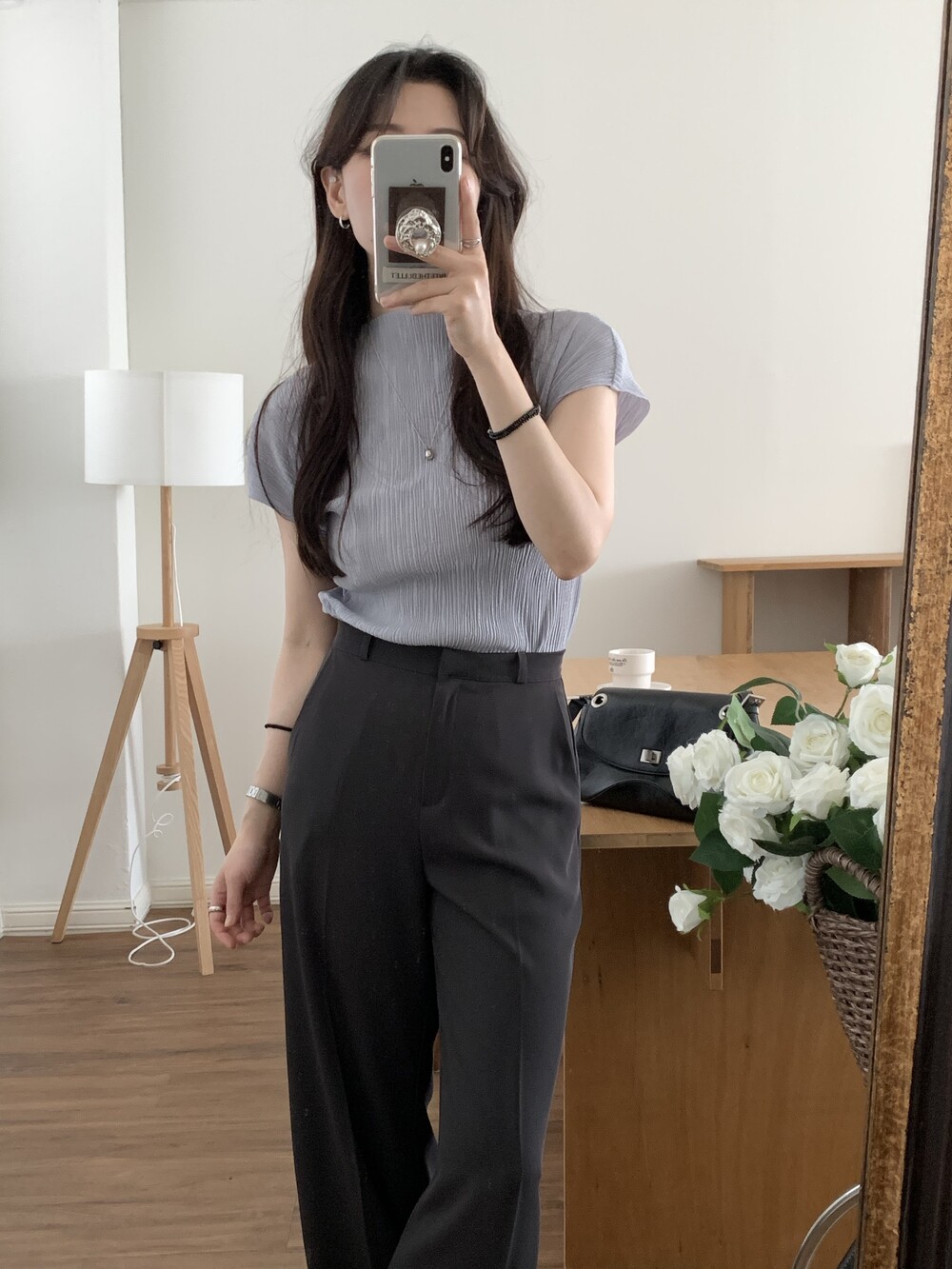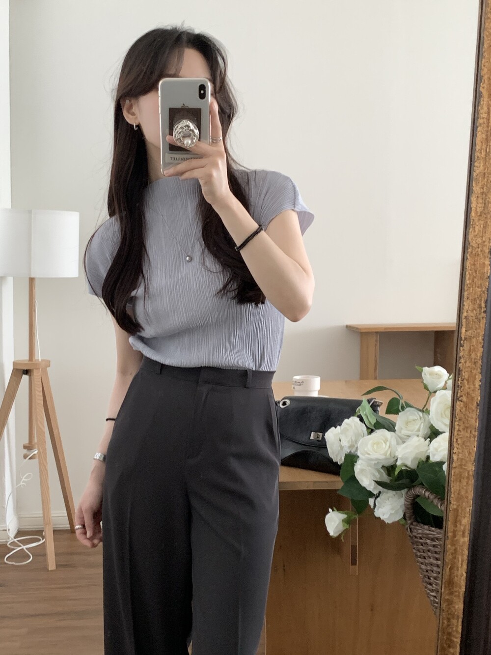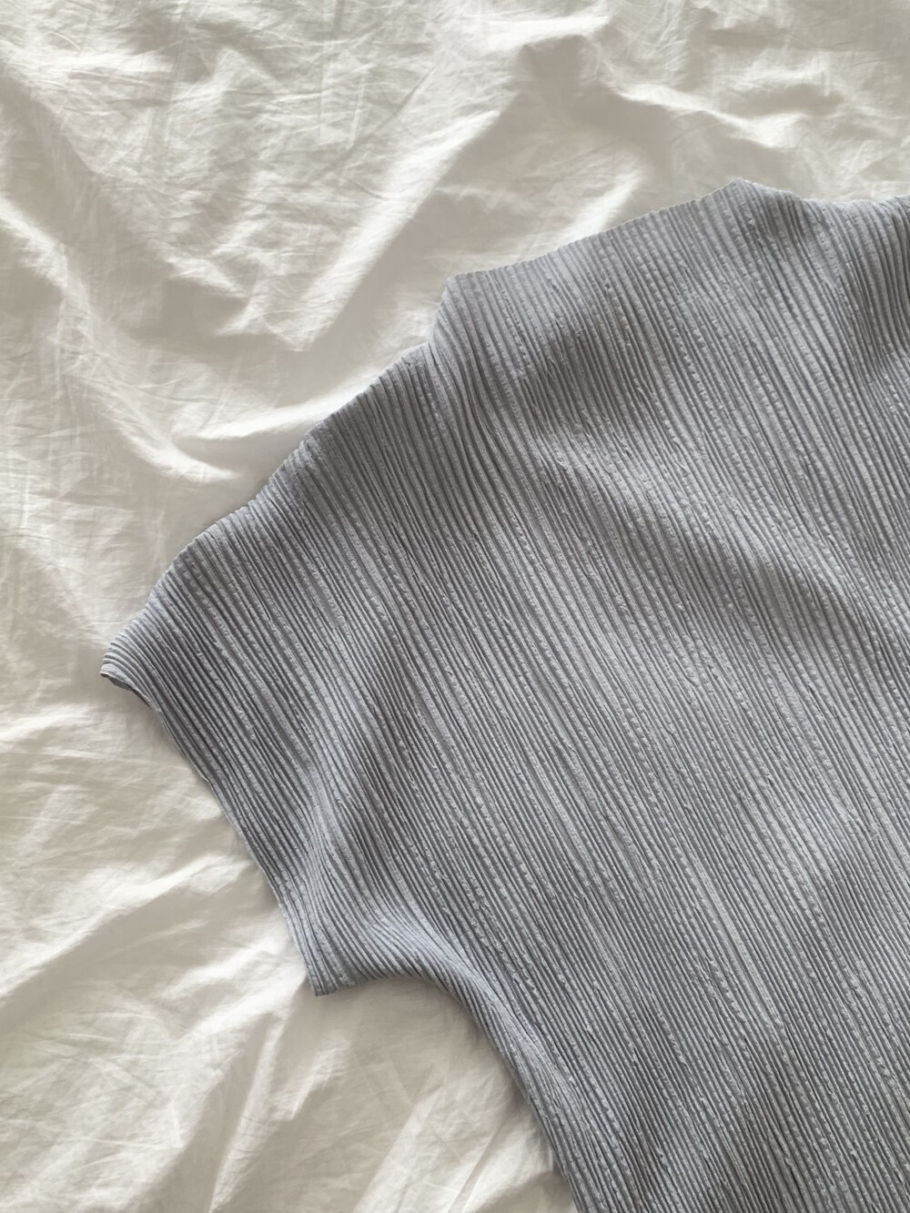 TOP - CURVE HALF-NECK PLEATS BLOUSE(BLUEGRAY)