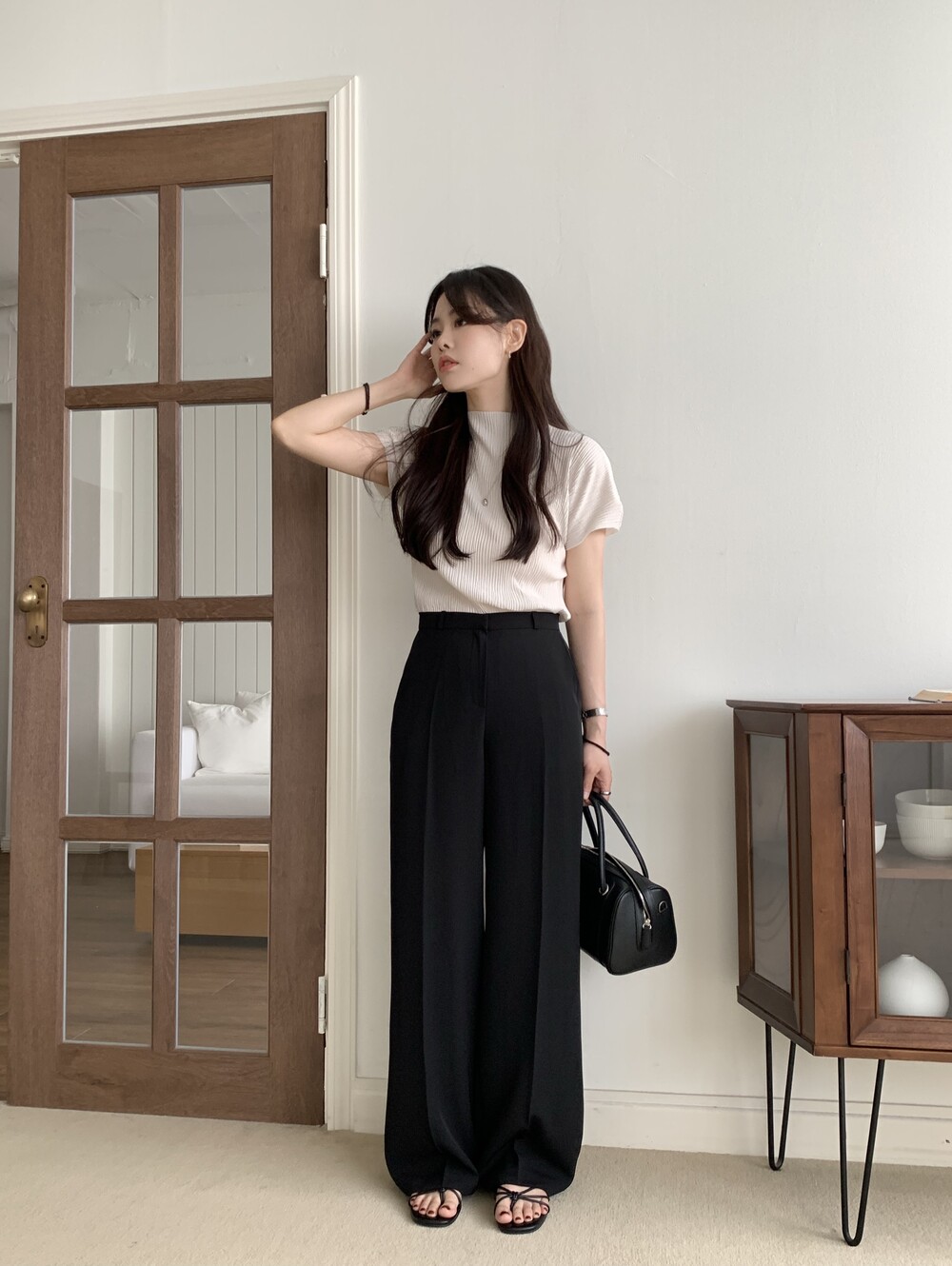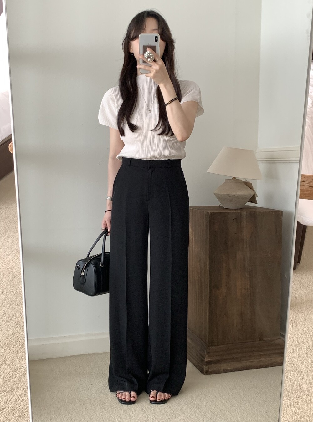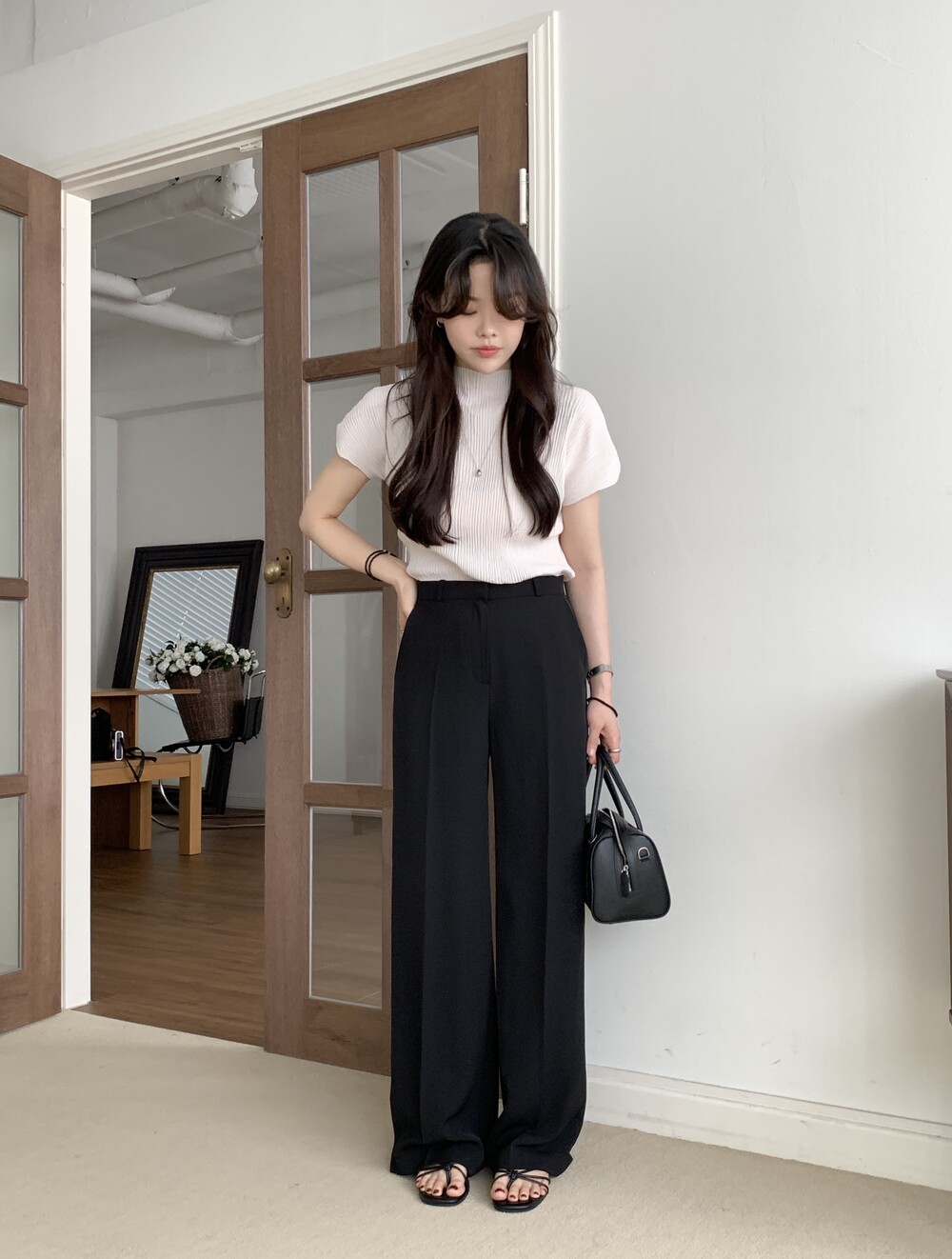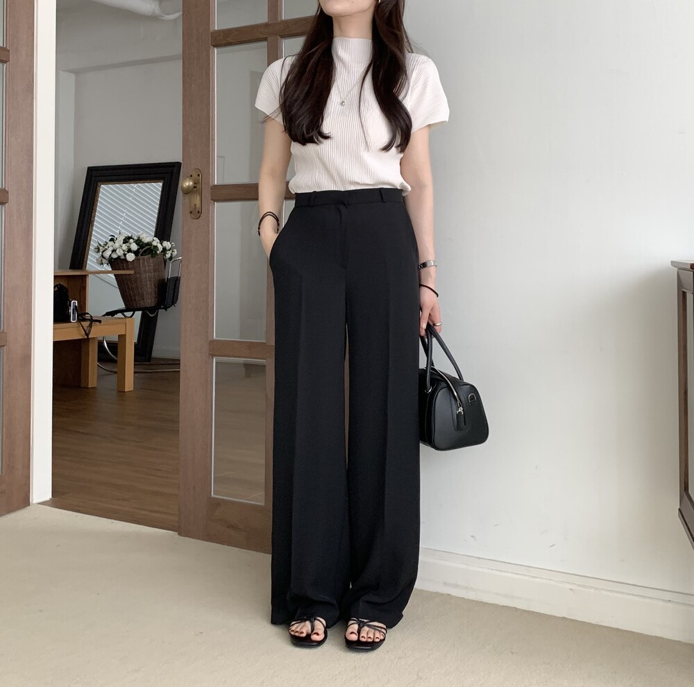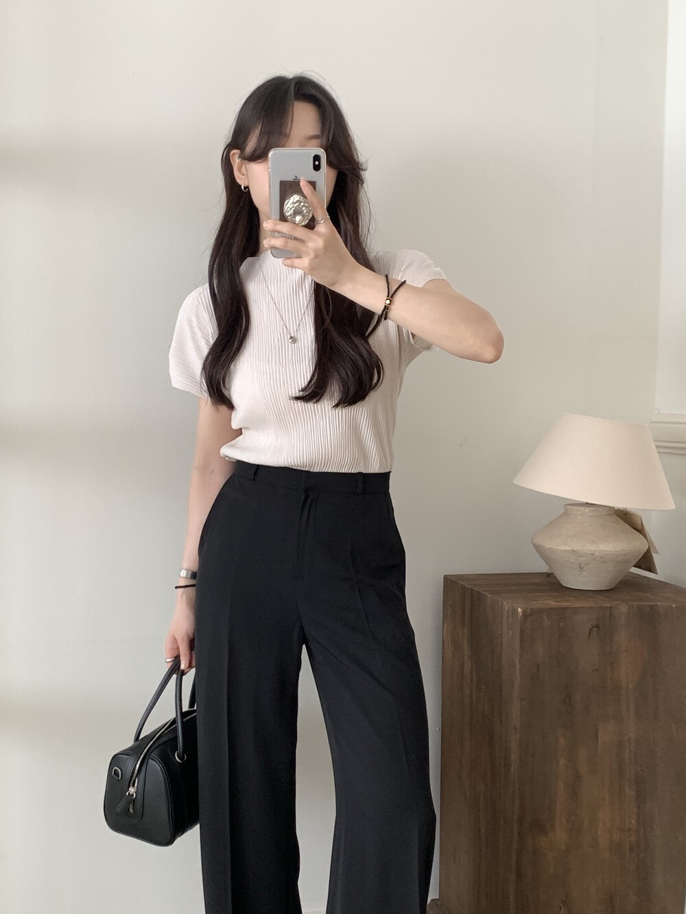 BOTTOM - ICE NO-PINTUCK SLACKS(BLACK/S)