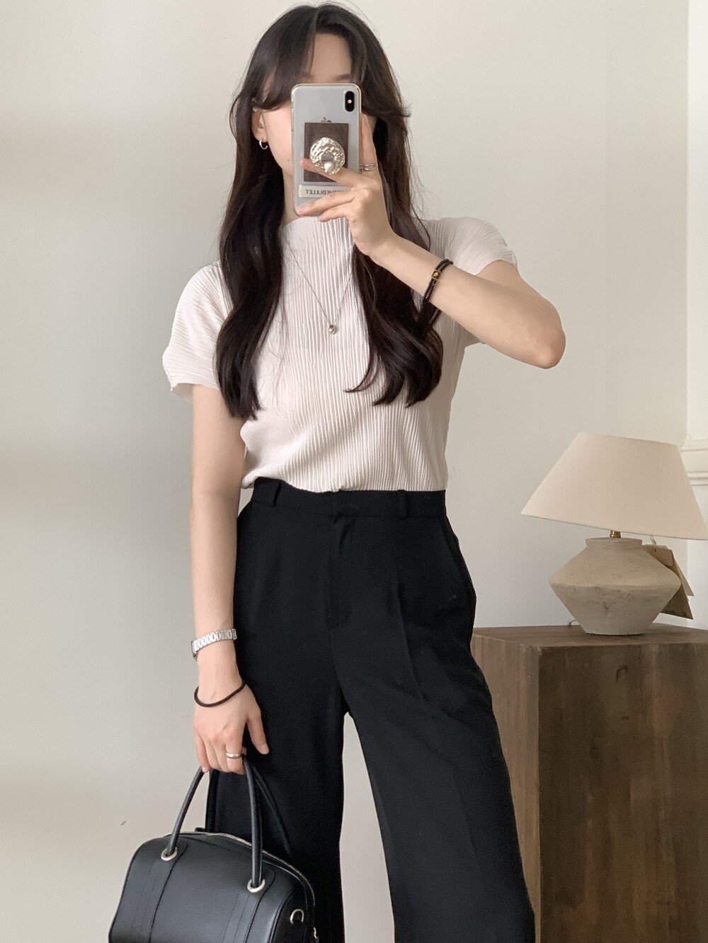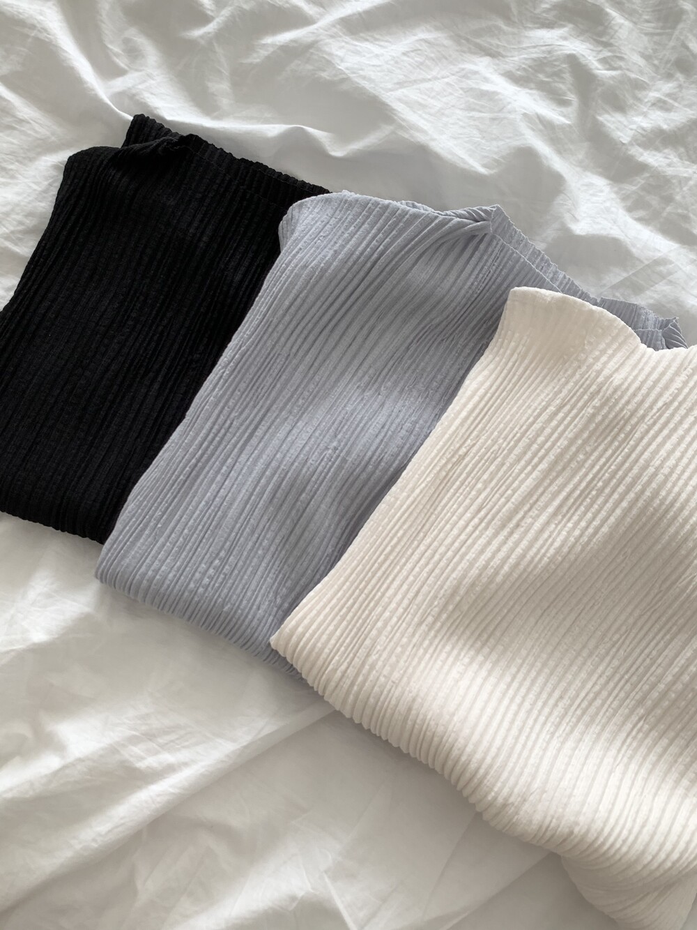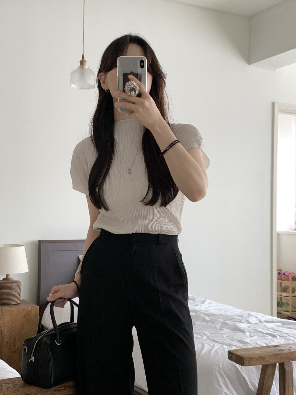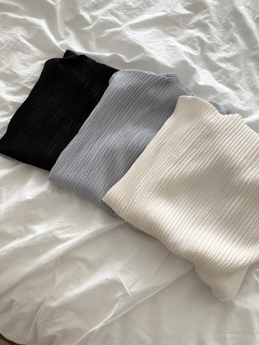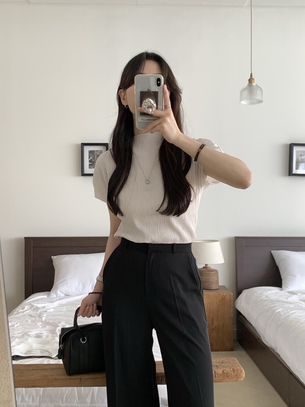 TOP - CURVE HALF-NECK PLEATS BLOUSE(BLACK)