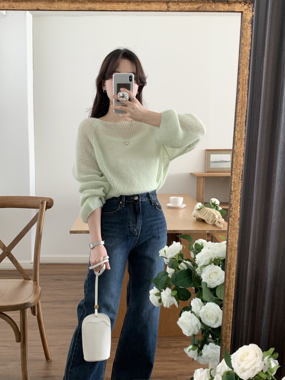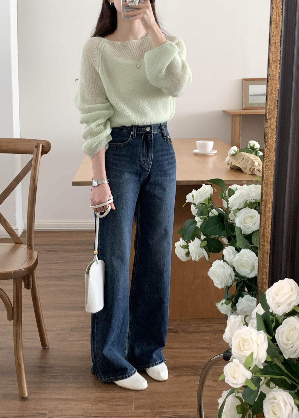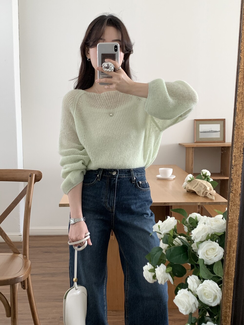 TOP - SPRING SEETHROUGH BOATNECK KNIT(GREEN)