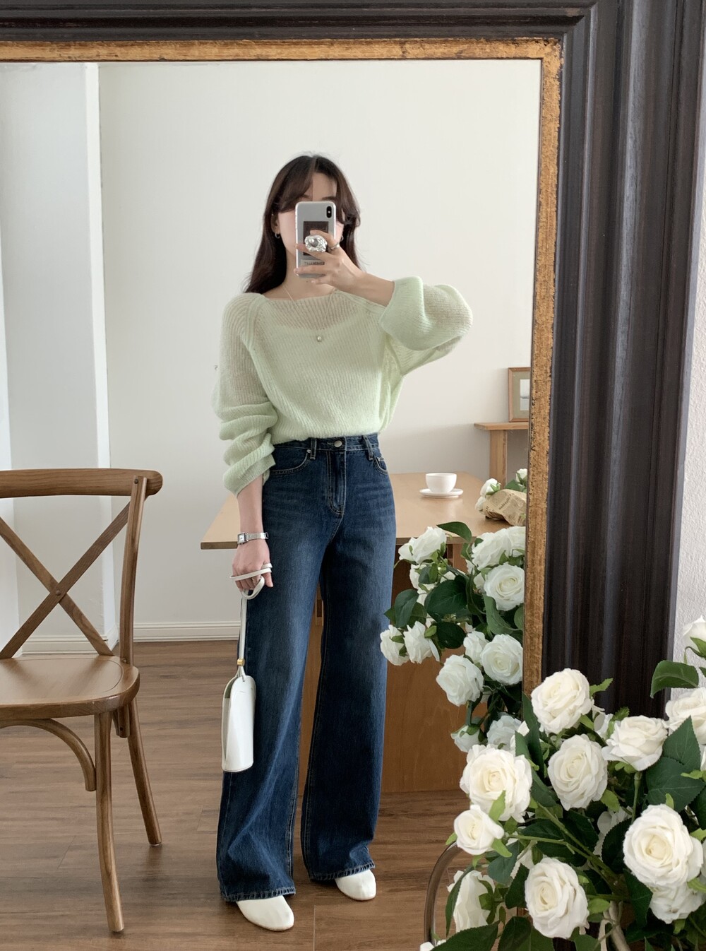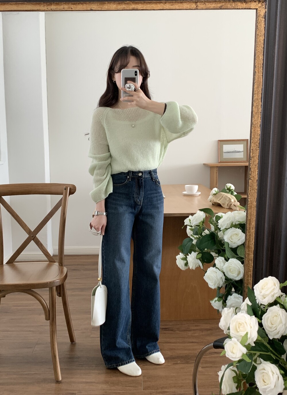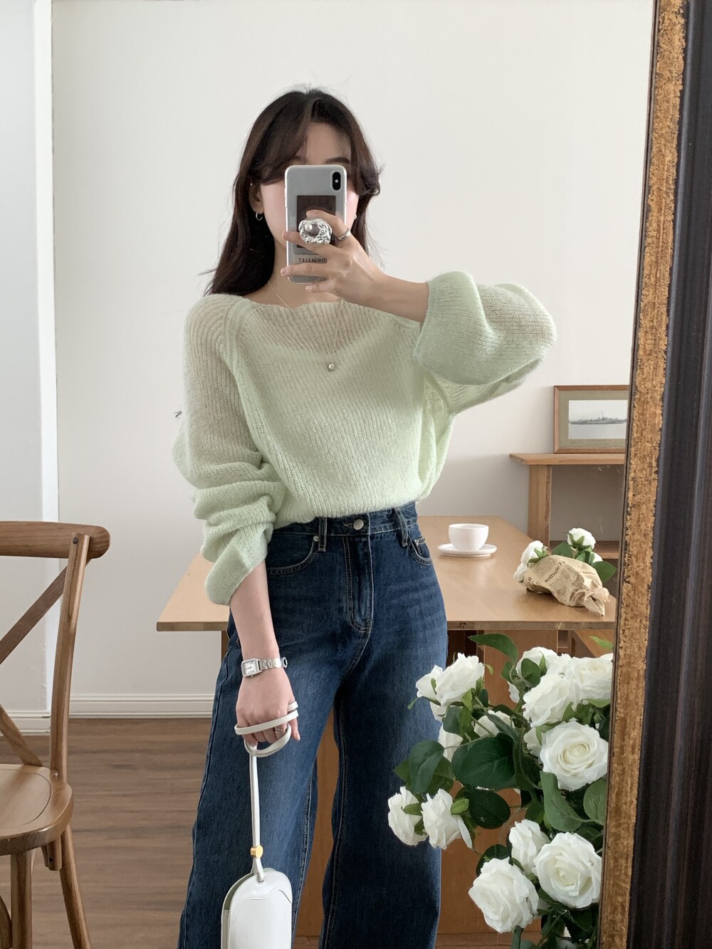 TOP - SPRING SEETHROUGH BOATNECK KNIT(GREEN)