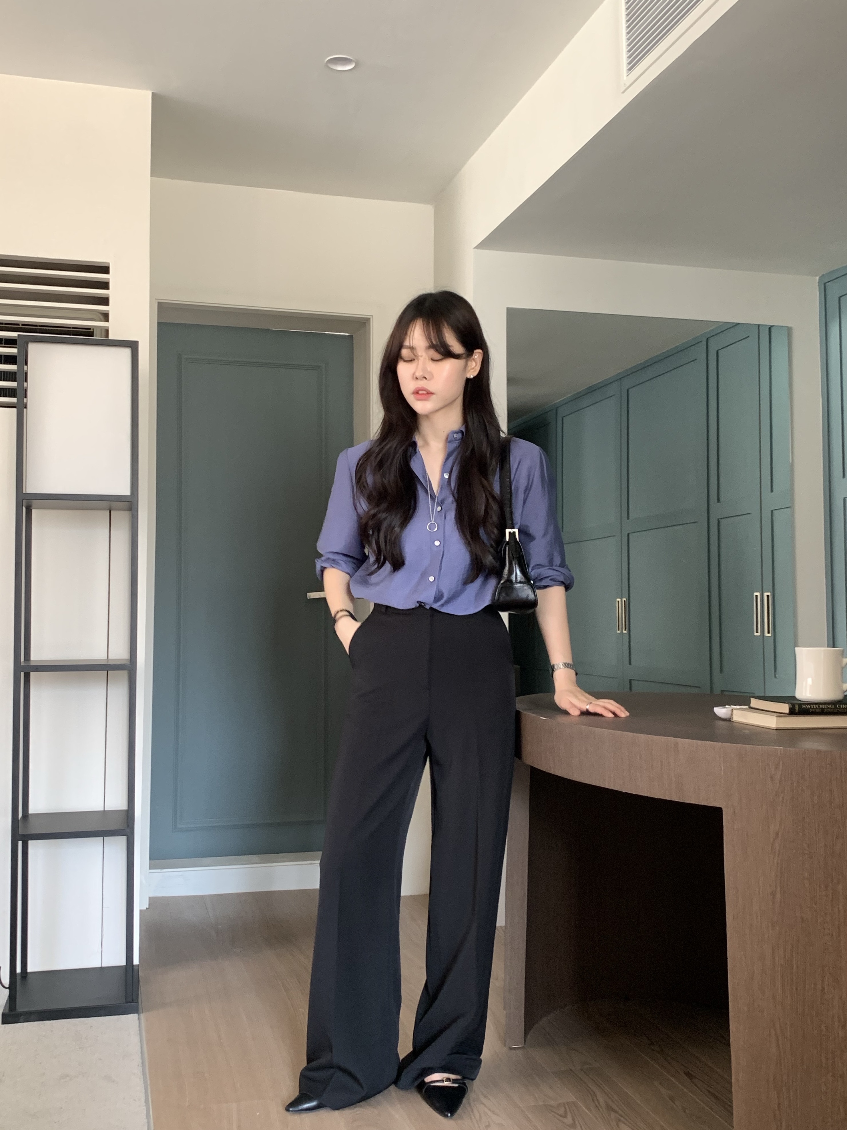 BOTTOM - STAN NO PINTUCK SEMI WIDE LONG SLACKS(BLACK/S)
