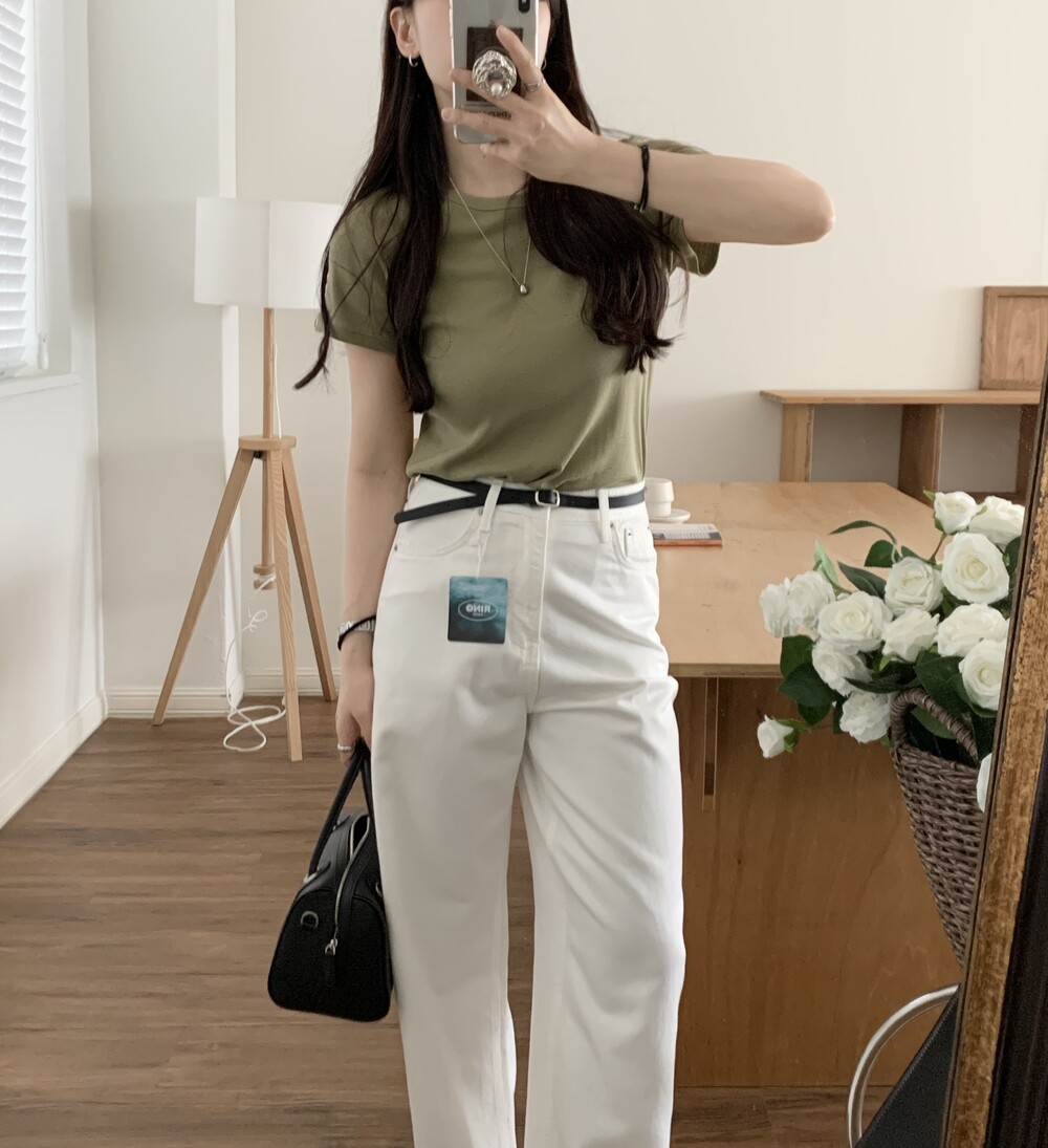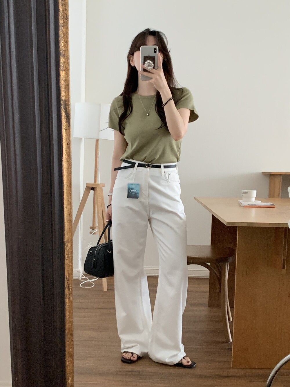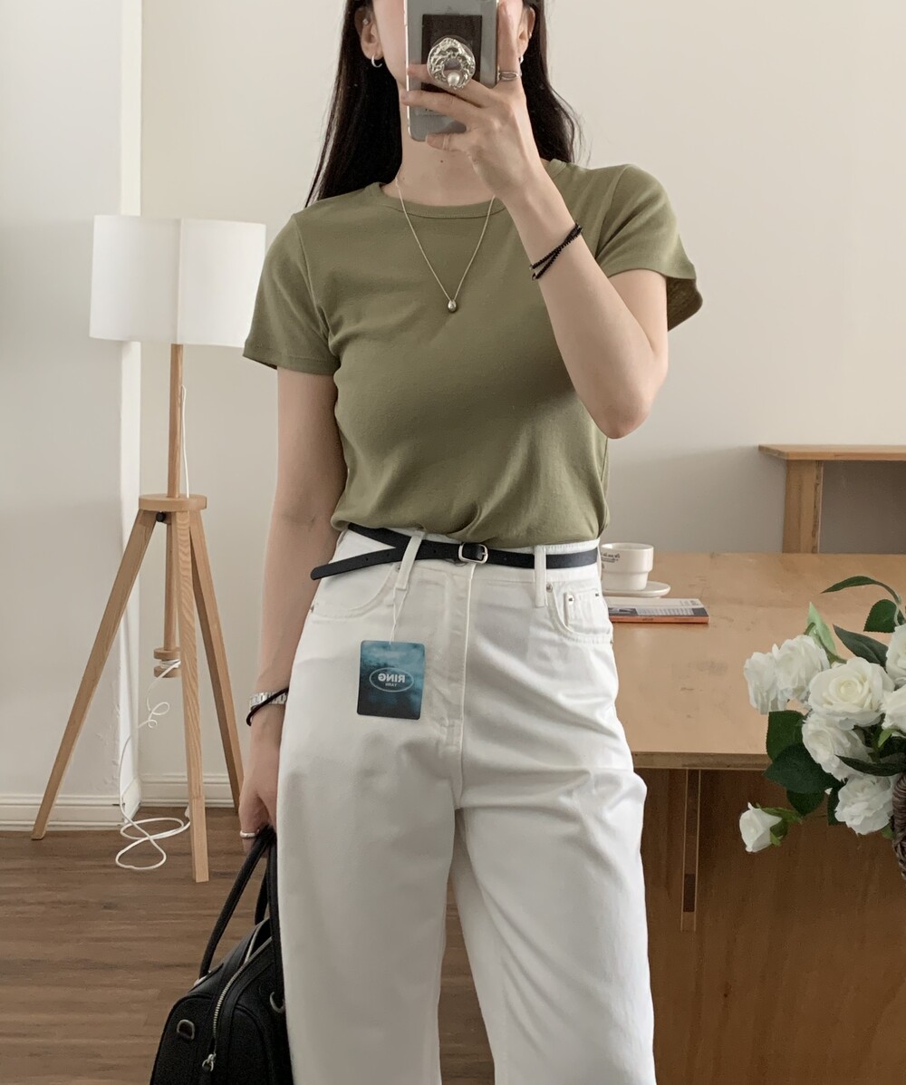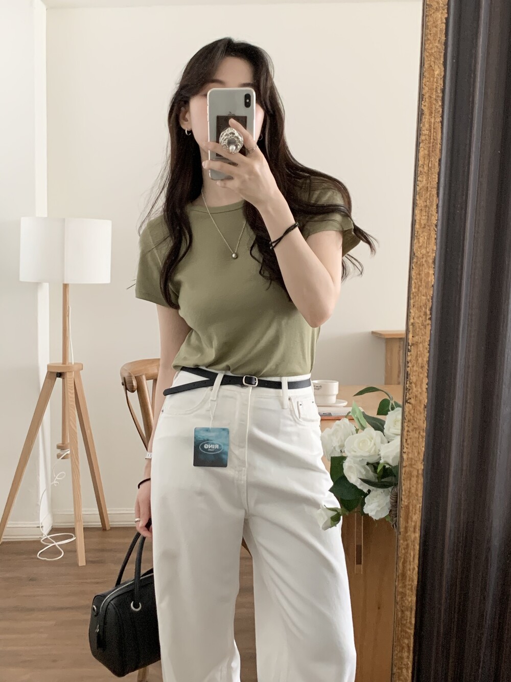 TOP - COLOR WASHING HALF T-SHIRT(OLIVE)