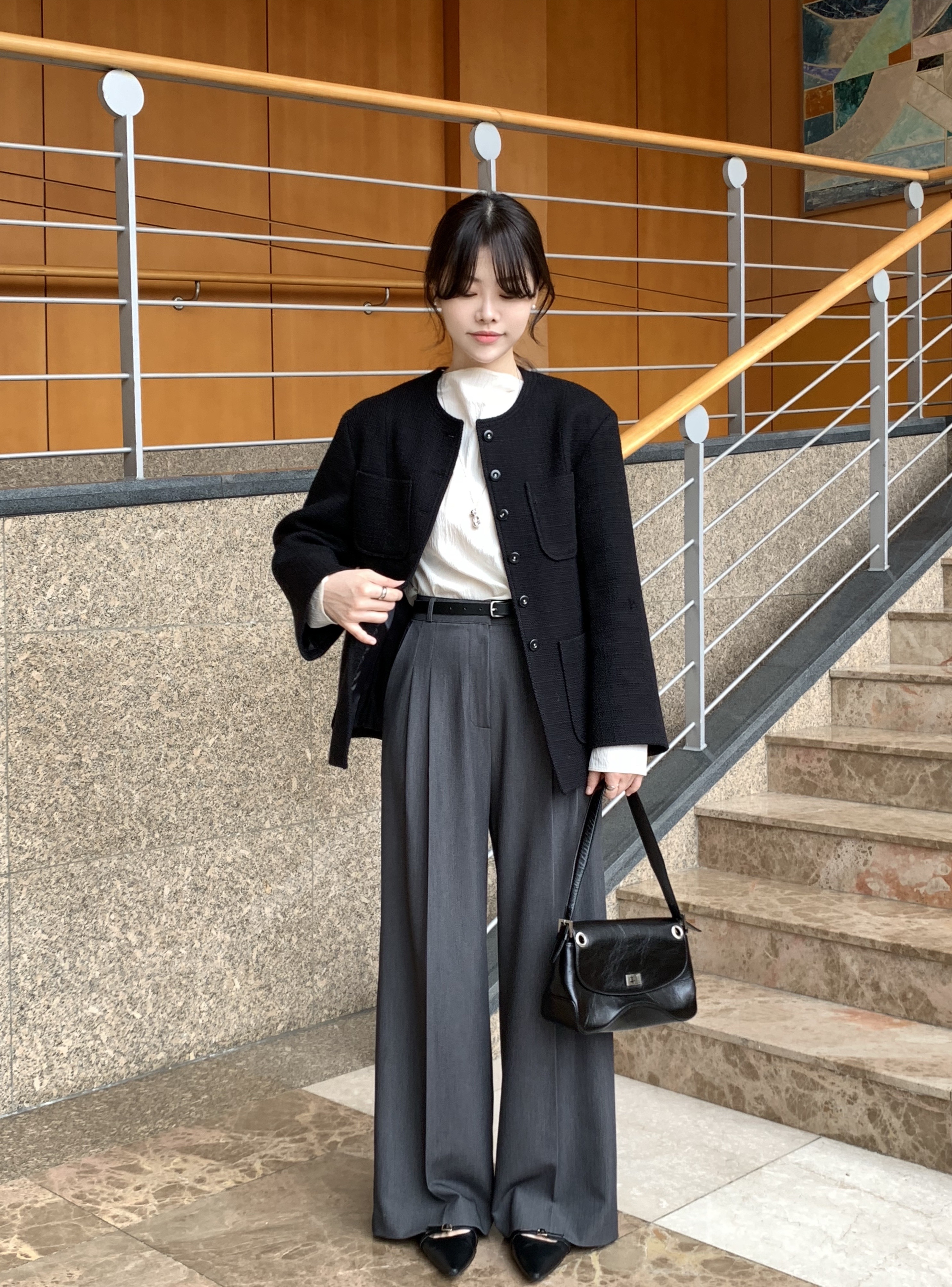BOTTOM - TENTO TWO TUCK WIDE LONG SLACKS(CHACOAL/S)