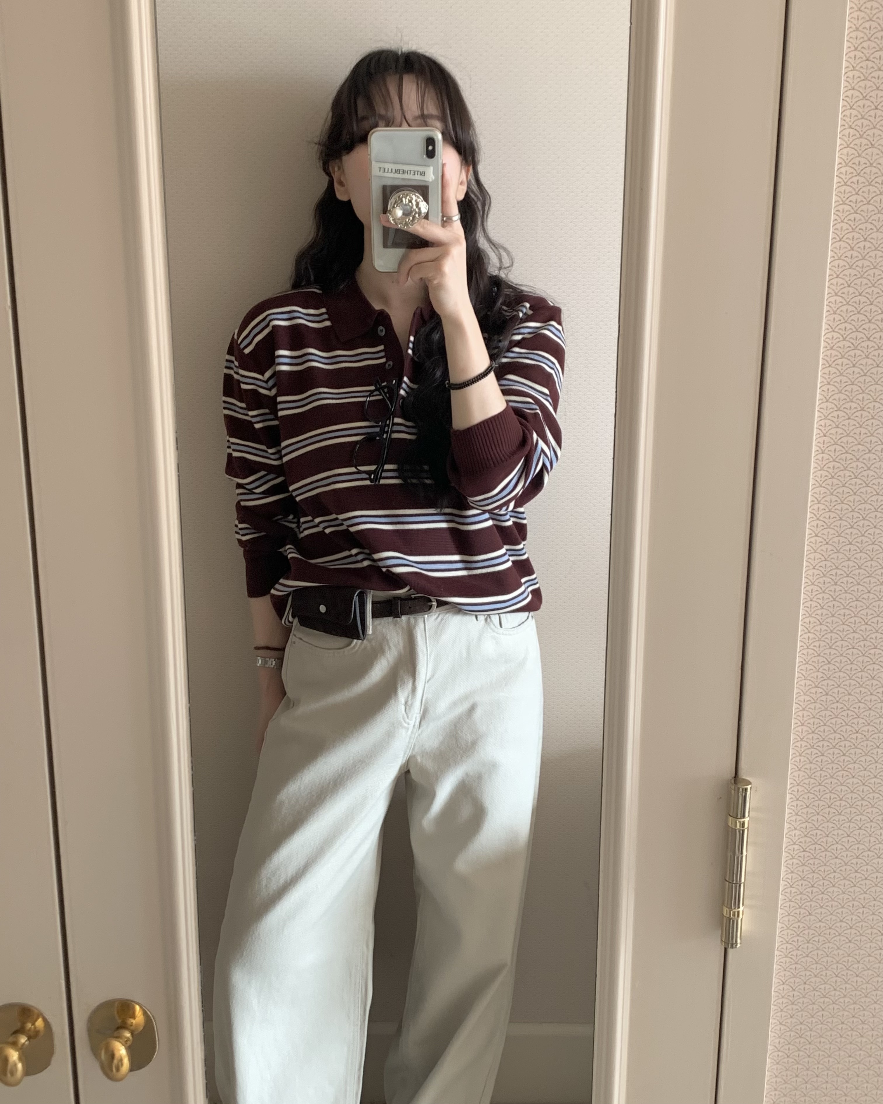 TOP - EMMA STRIPE COLLAR KNIT(BURGUNDY)