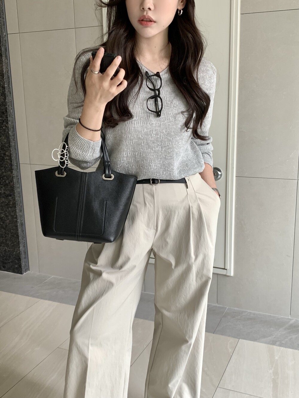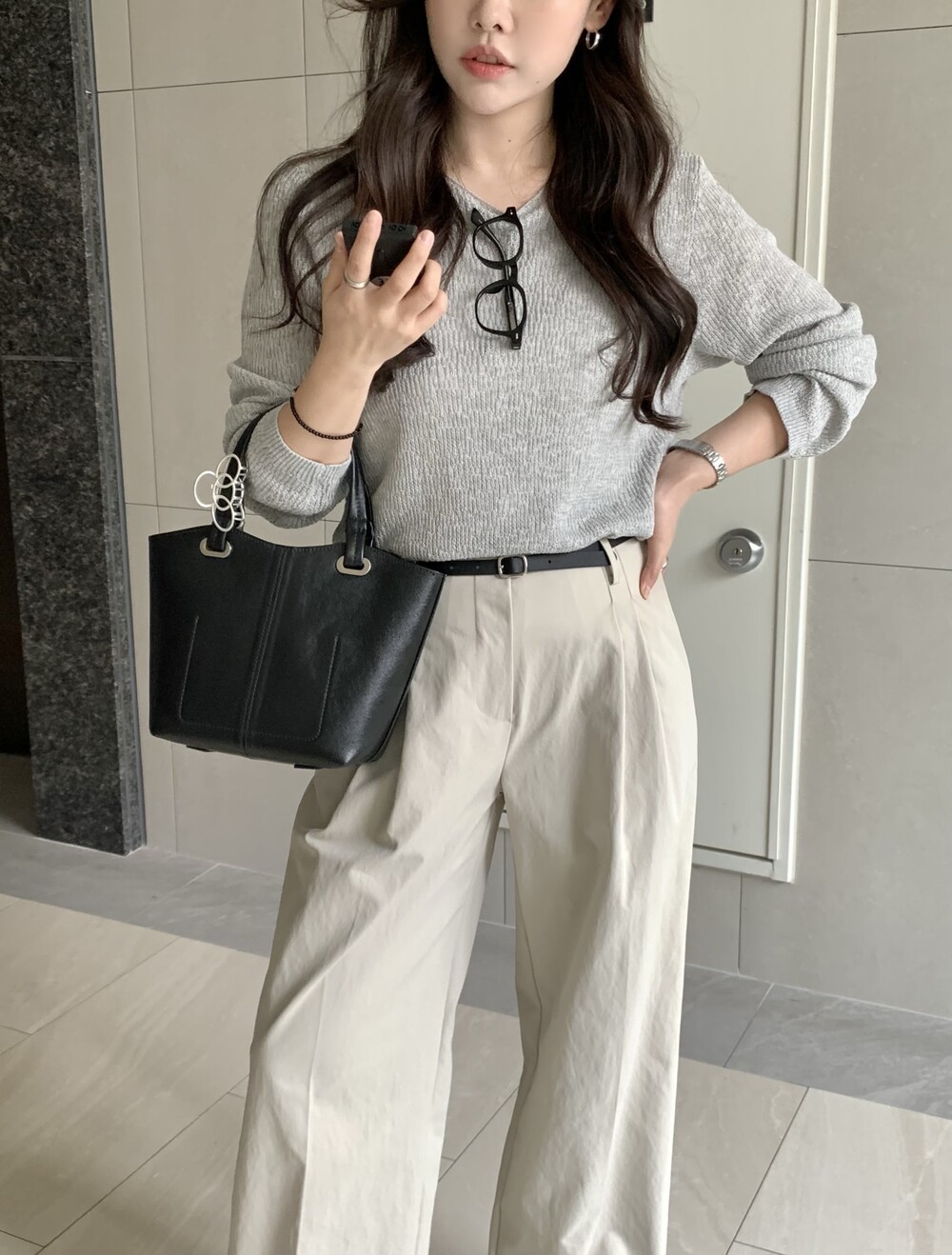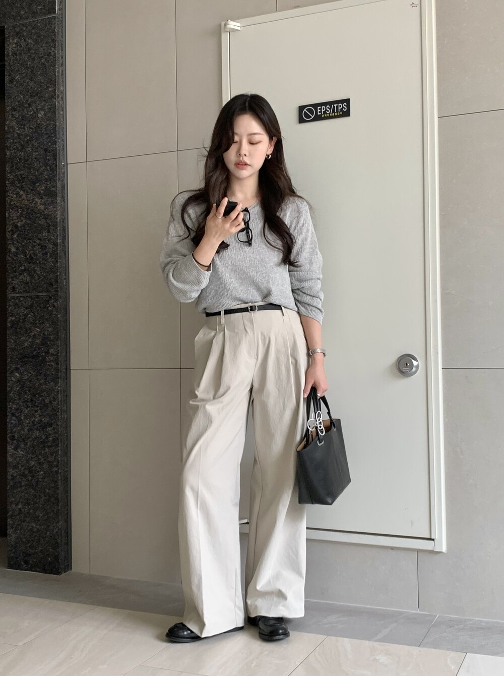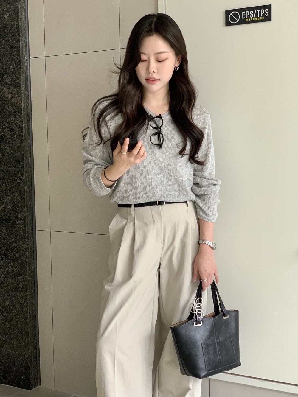 TOP - AIRY LOOSE-FIT BOATNECK KNIT (LIGHT GRAY)