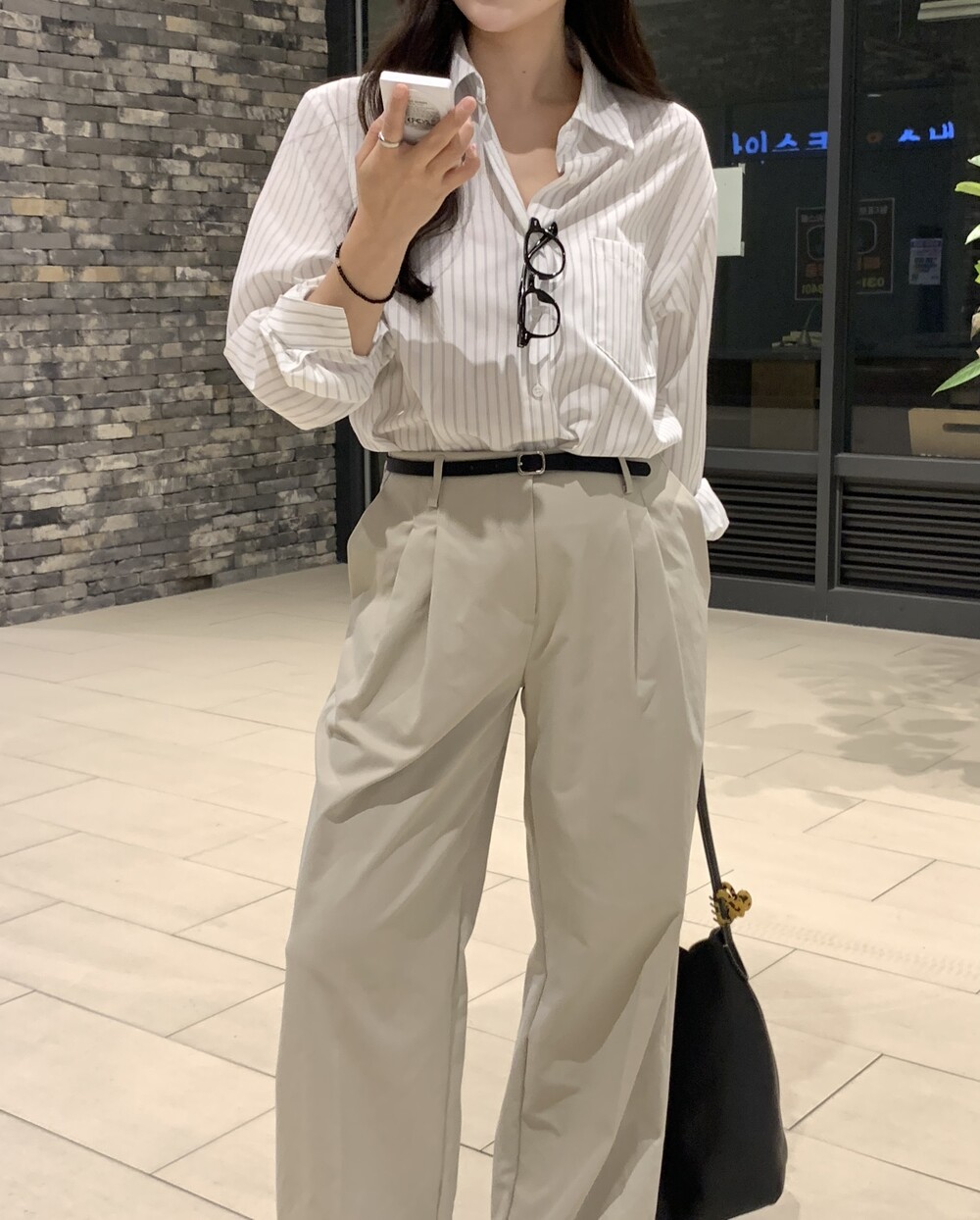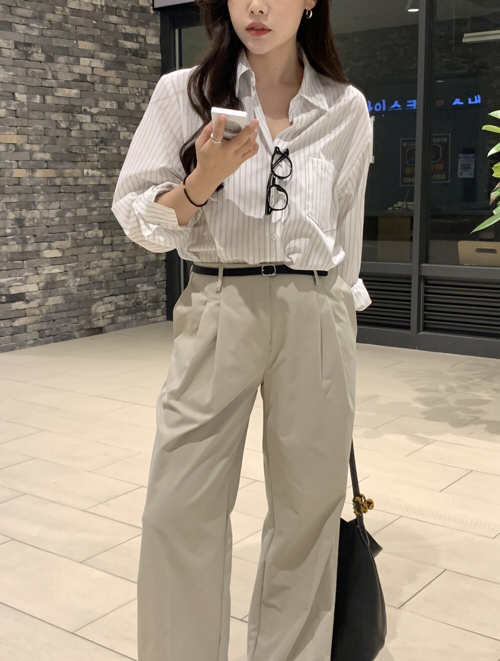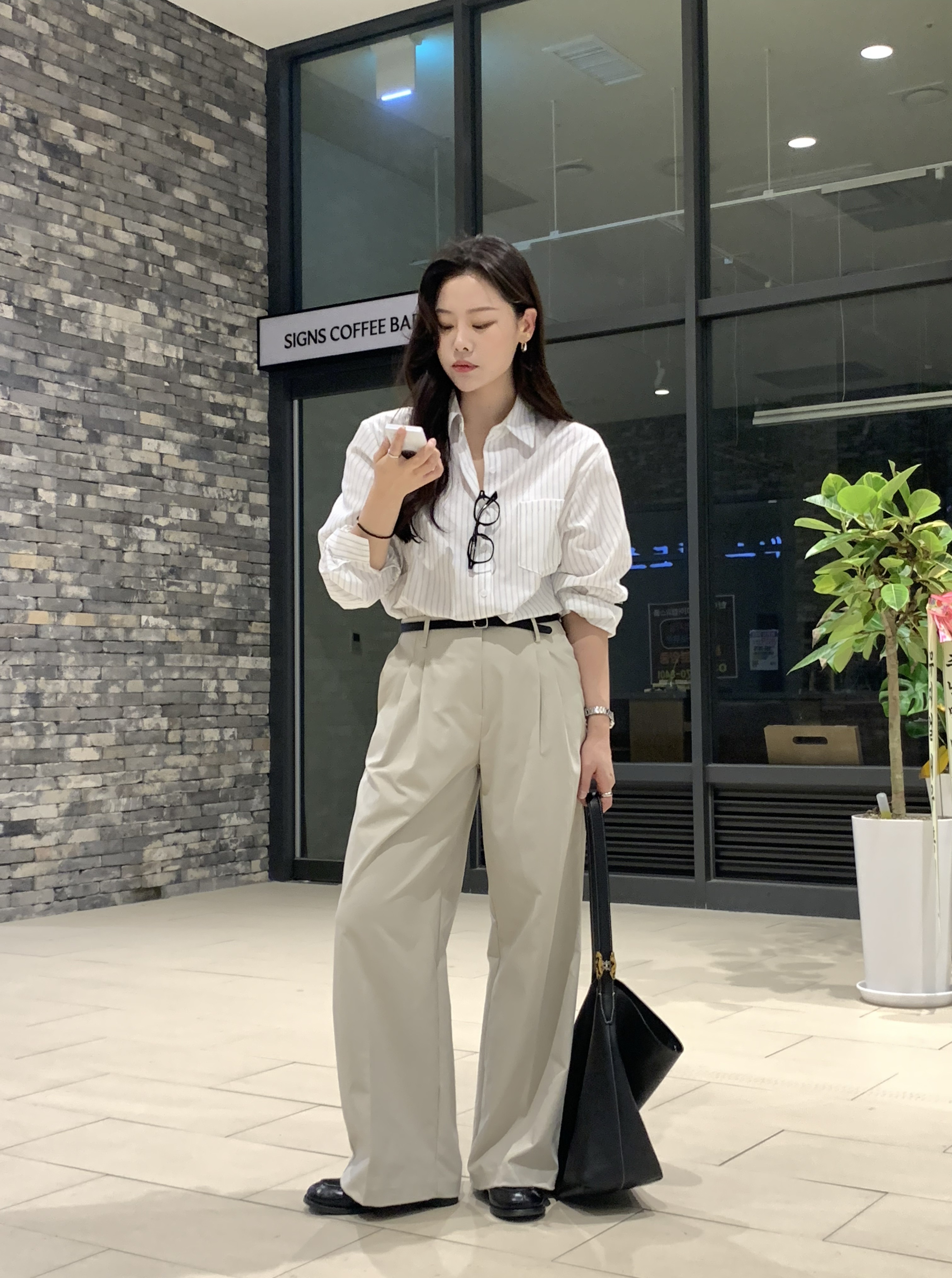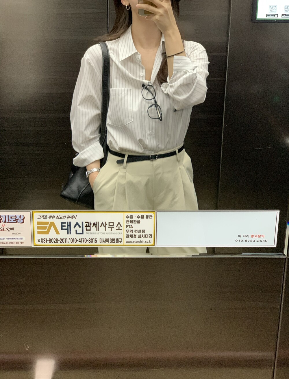 TOP - PAPER STRIPE SHIRT (IVORY)