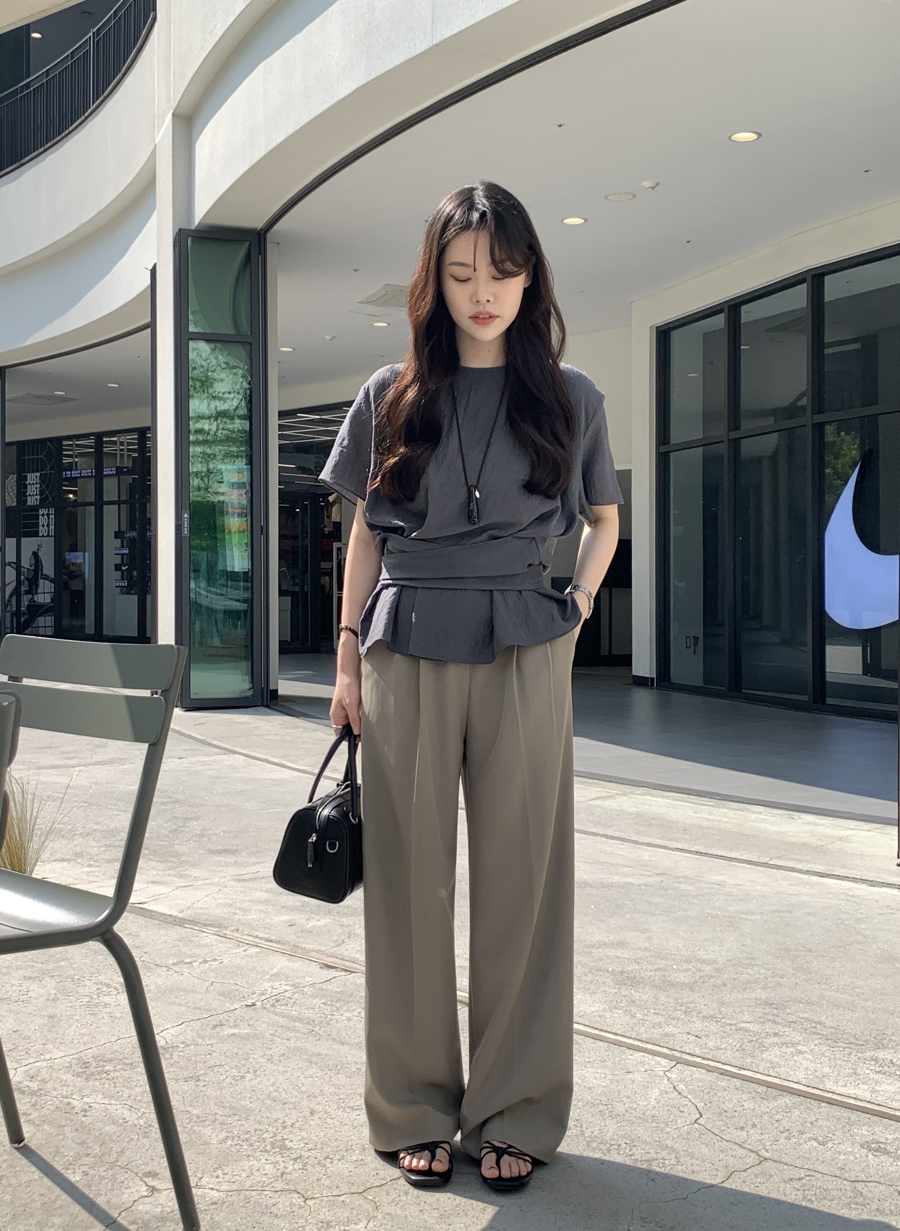 BOTTOM - MORE SUMMER TWO-TUCK SLACKS(CHACOAL/S)