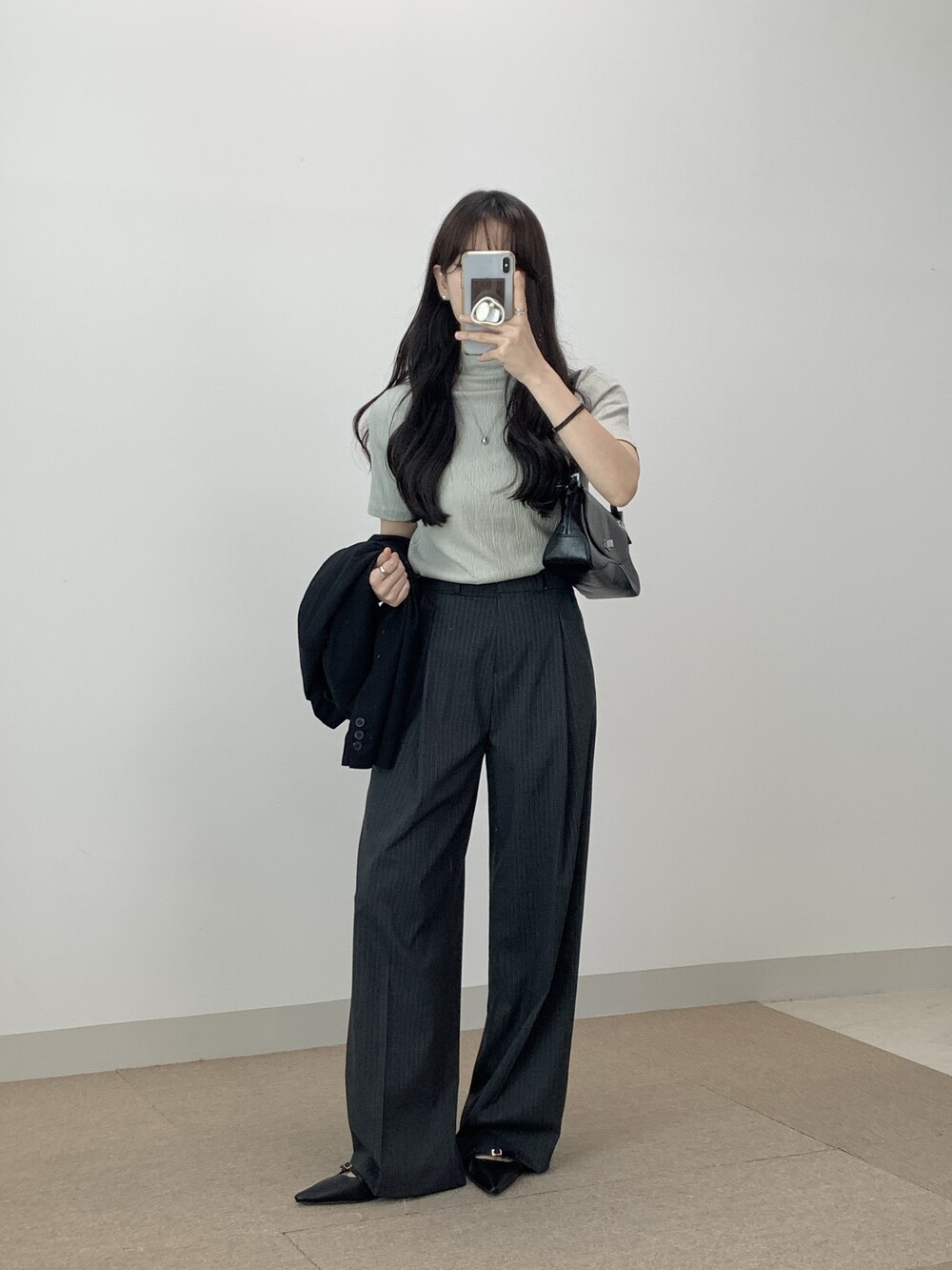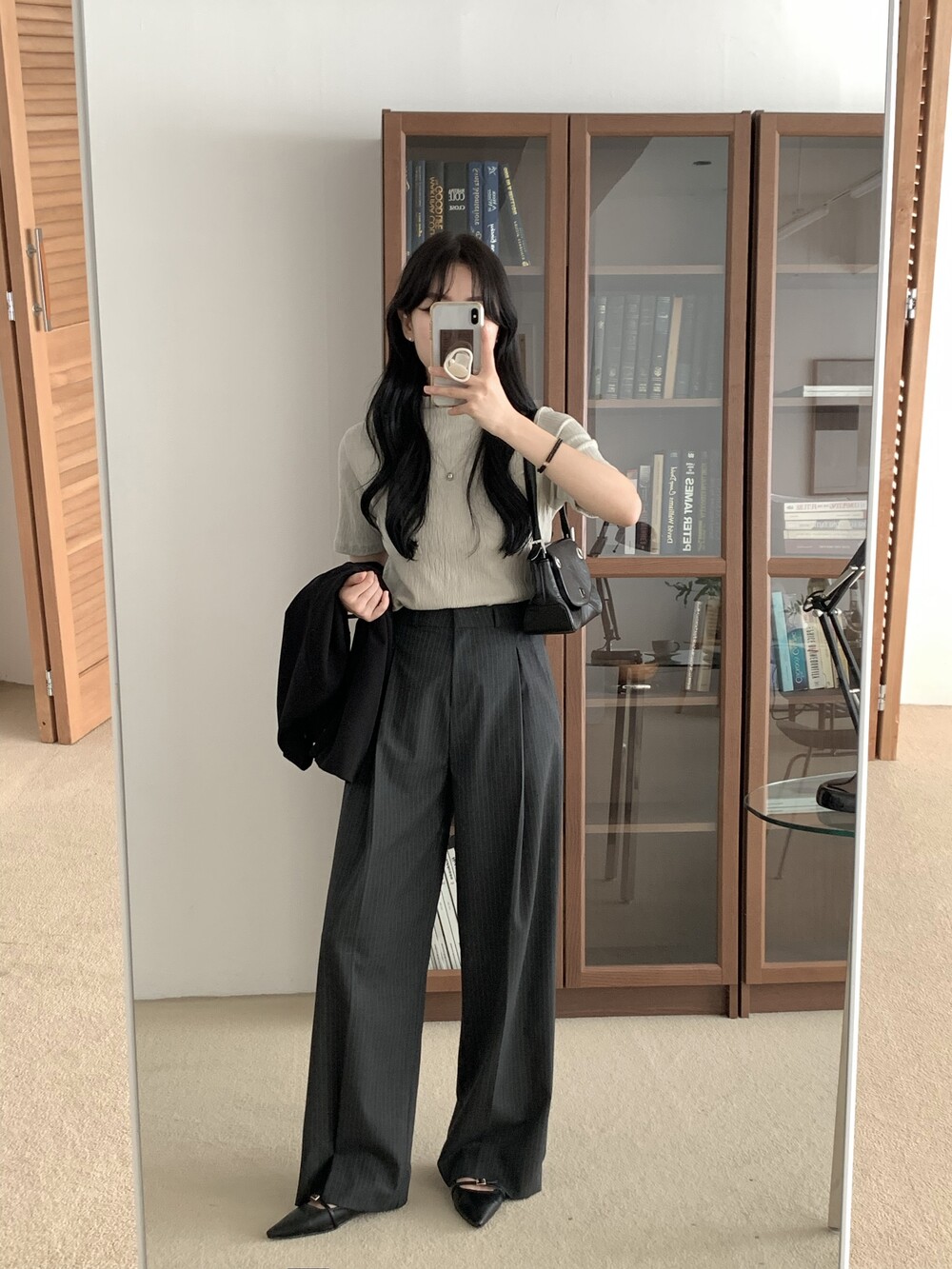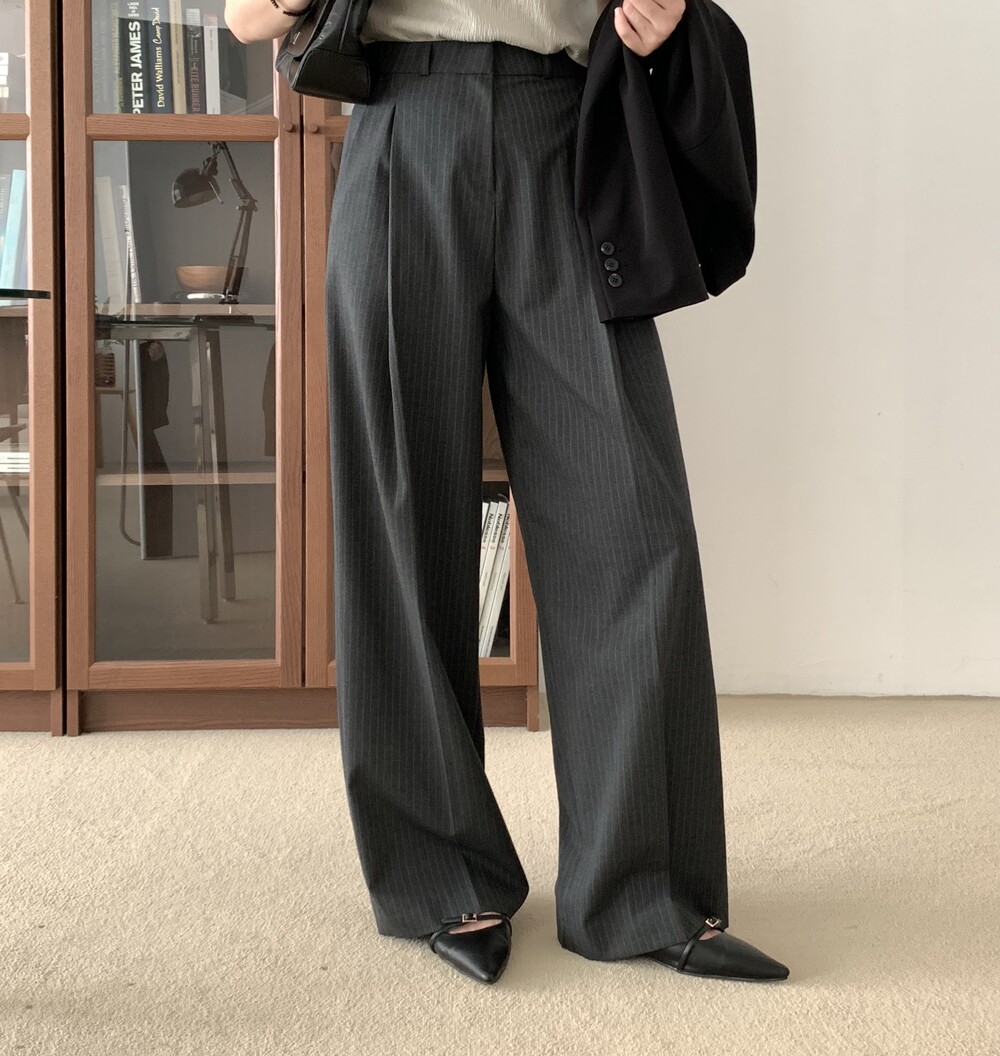 BOTTOM - MANNISH STRIPE ONE TUCK SLACKS(GRAY/S)