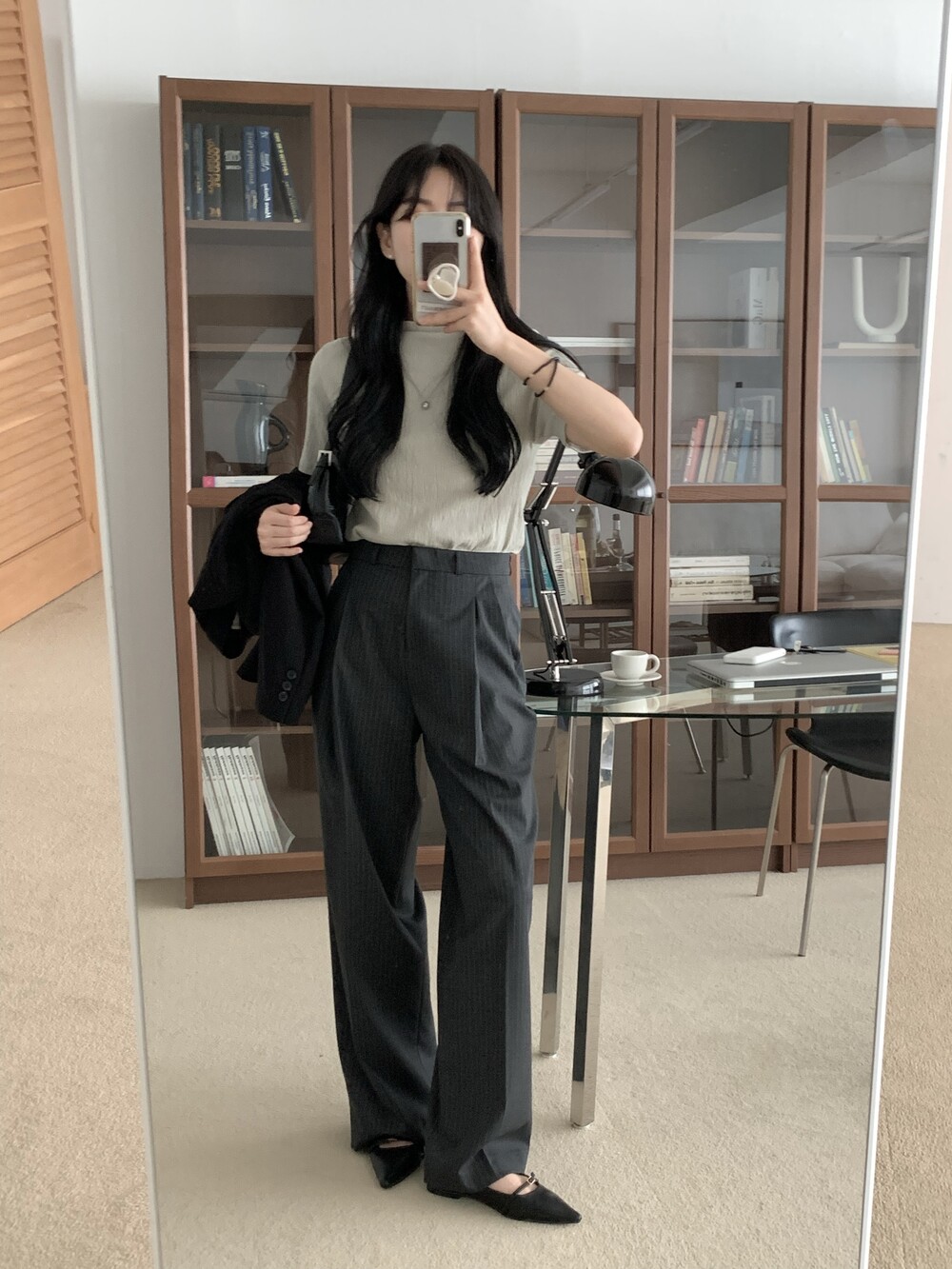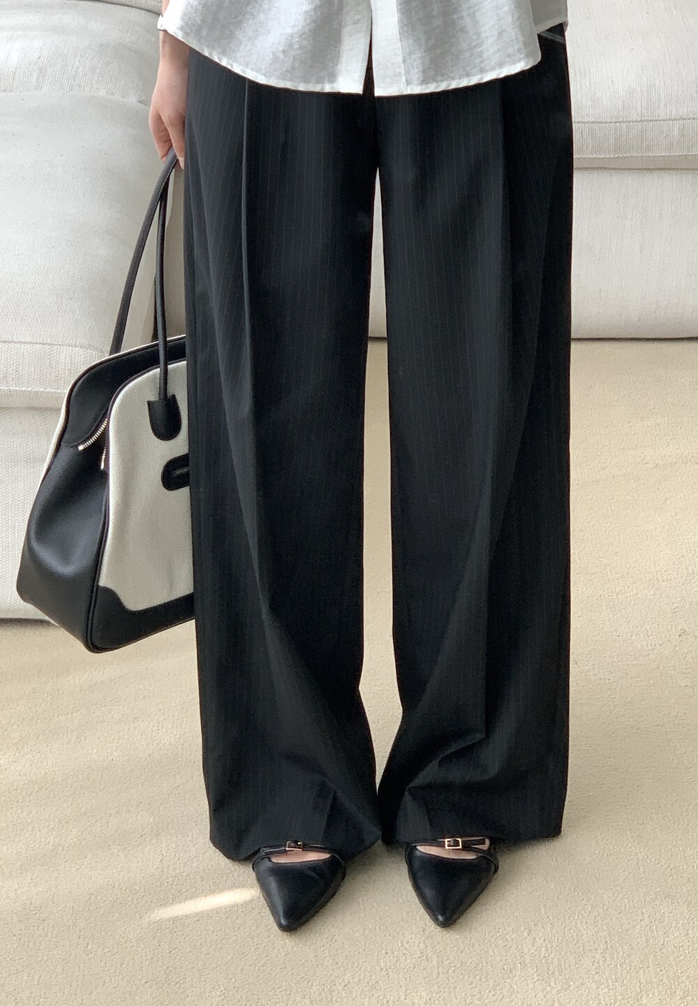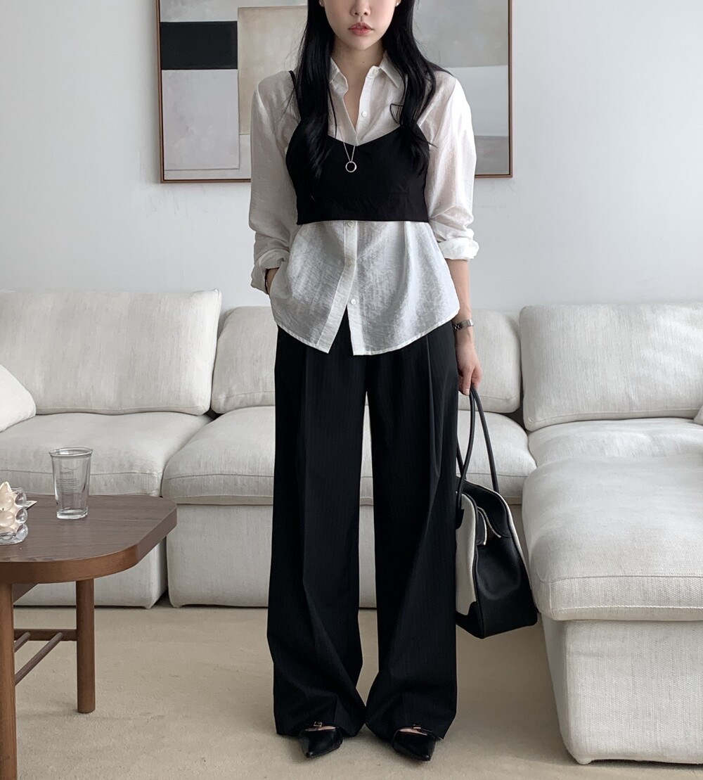 BOTTOM - MANNISH STRIPE ONE TUCK SLACKS(BLACK/S)