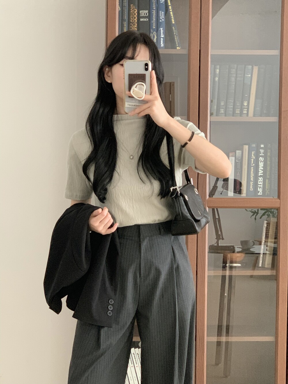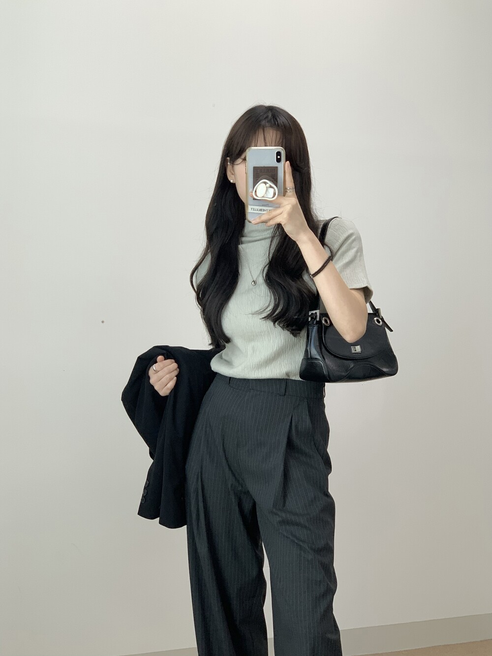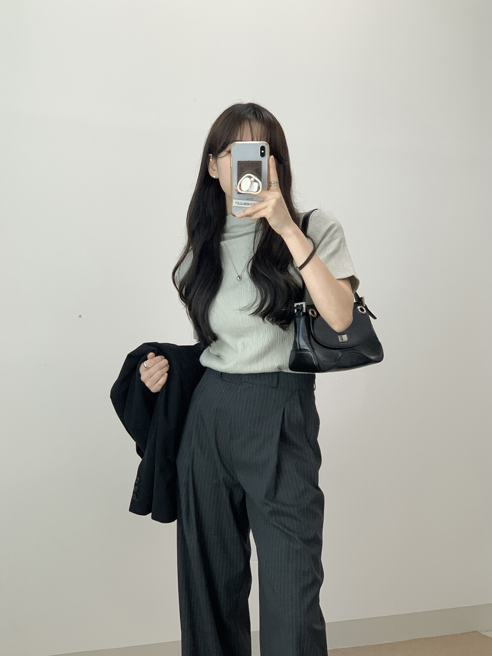 BOTTOM - MANNISH STRIPE ONE TUCK SLACKS(BLACK/S)