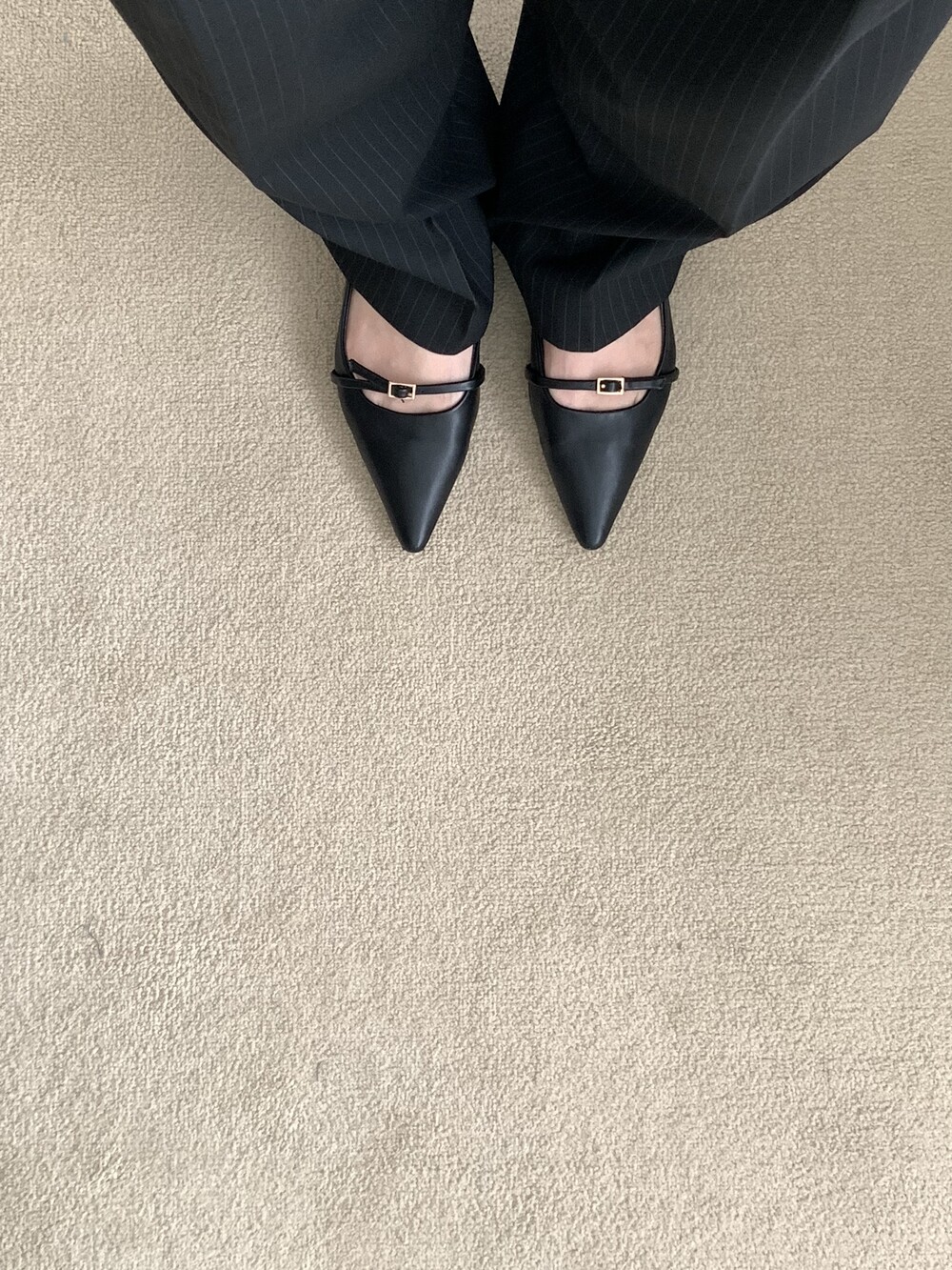 SHOES - STRAP STILETTO FLAT SHOES(BLACK)