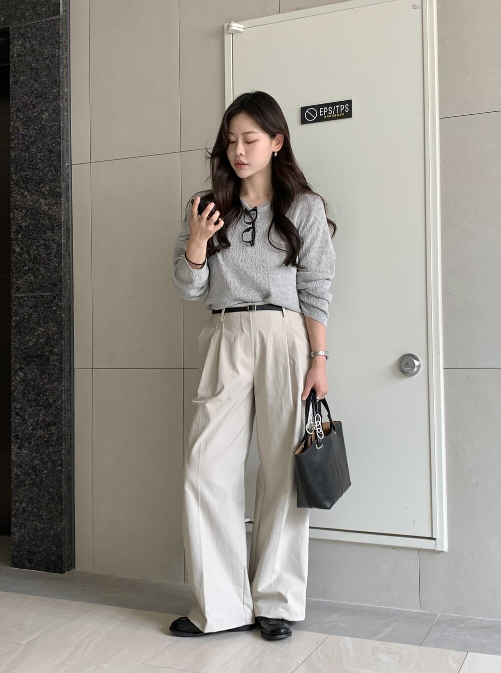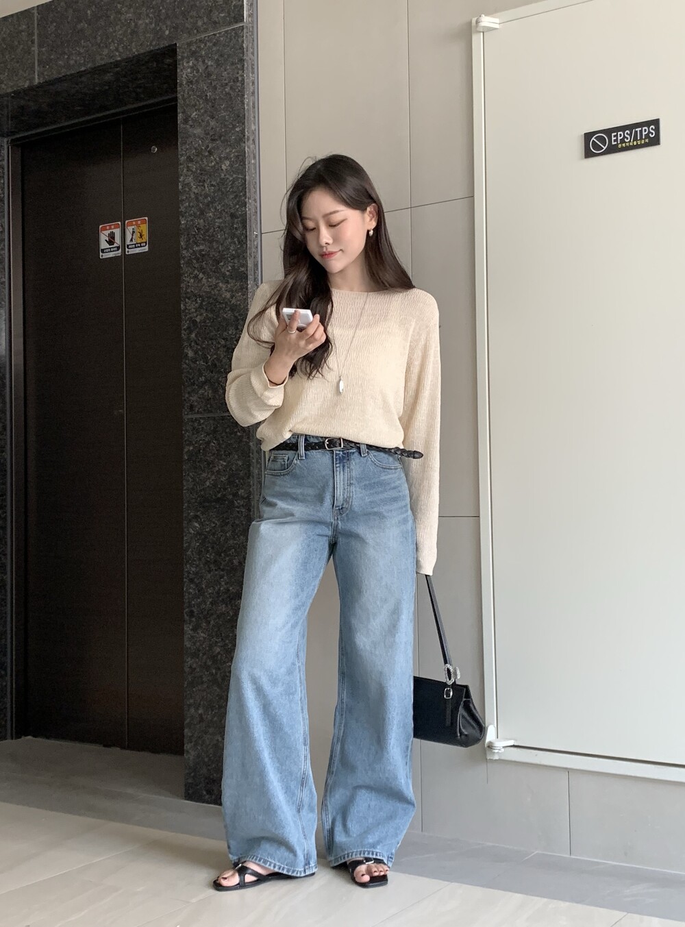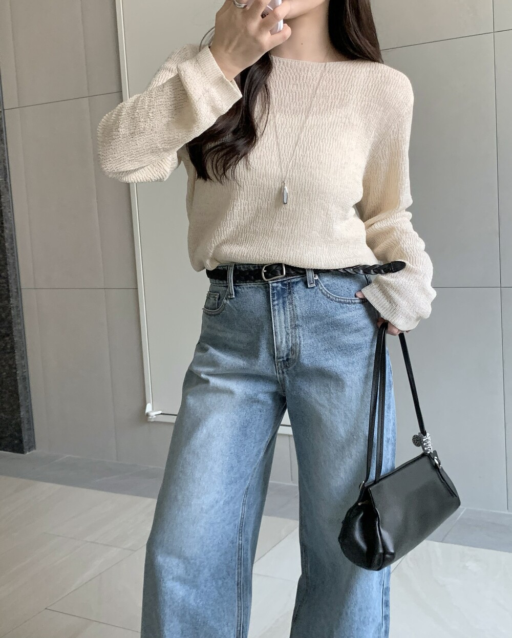TOP - AIRY LOOSE-FIT BOATNECK KNIT (LIGHT GRAY)