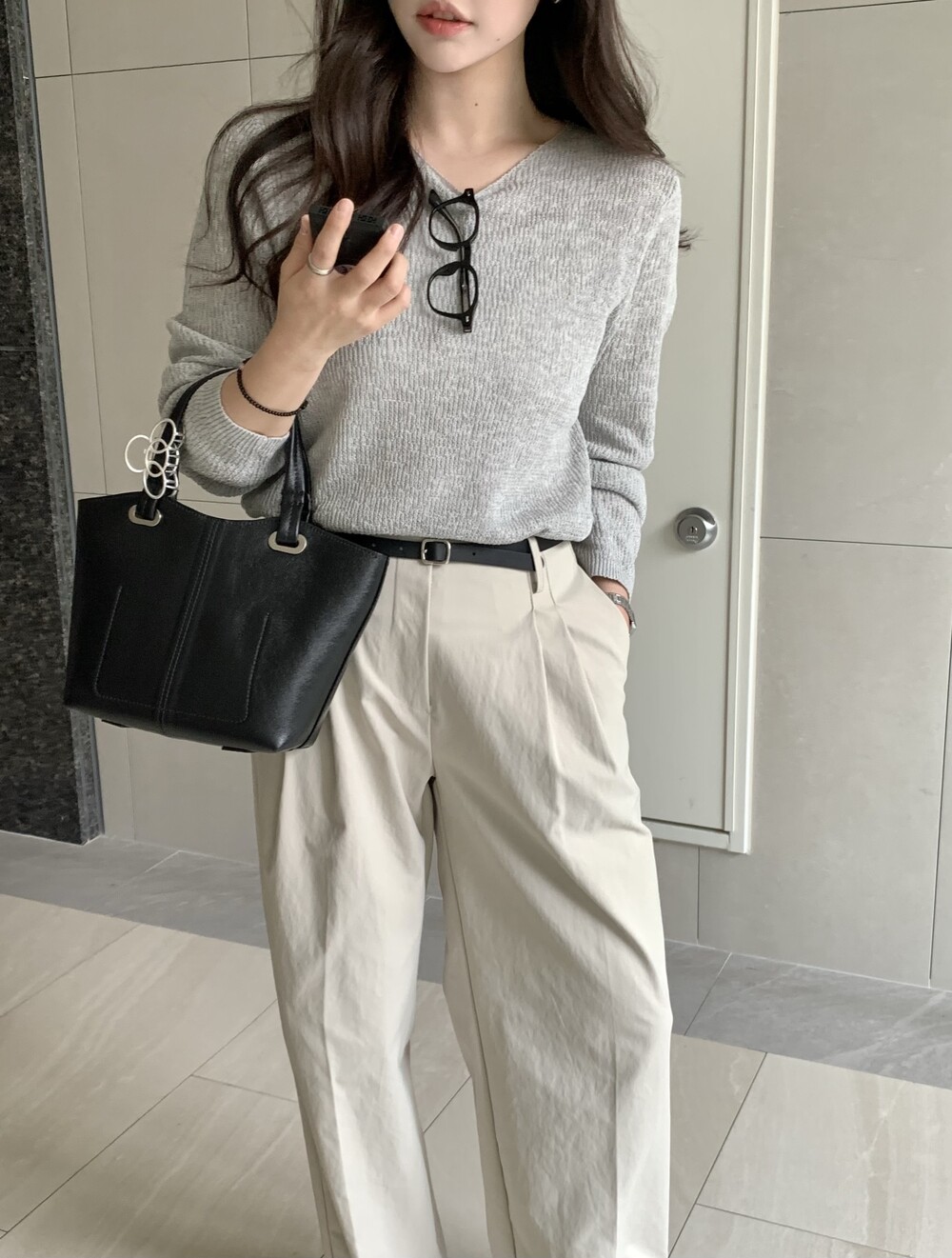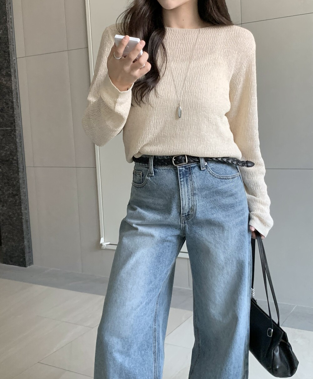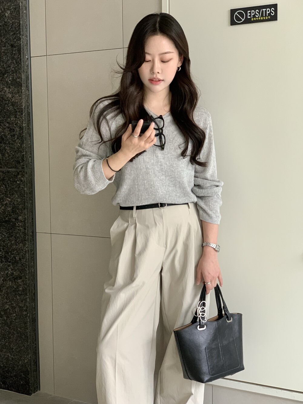 TOP - AIRY LOOSE-FIT BOATNECK KNIT (LIGHT GRAY)