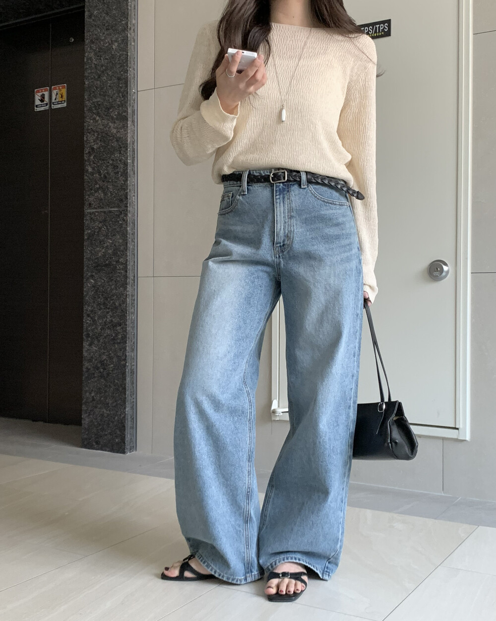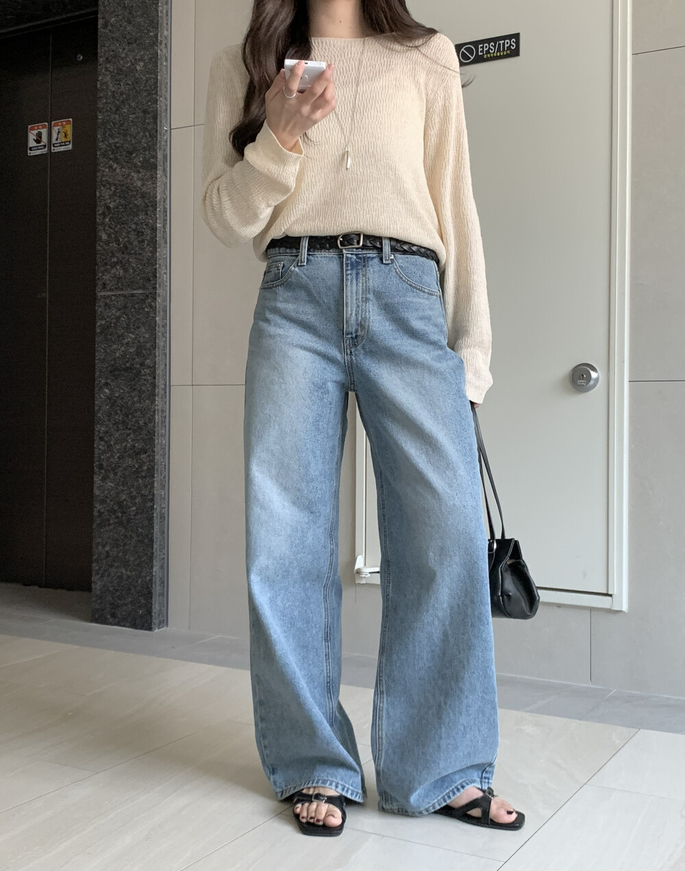 BOTTOM - NATURAL LIGHT BLUE WIDE DENIM PANTS (S)