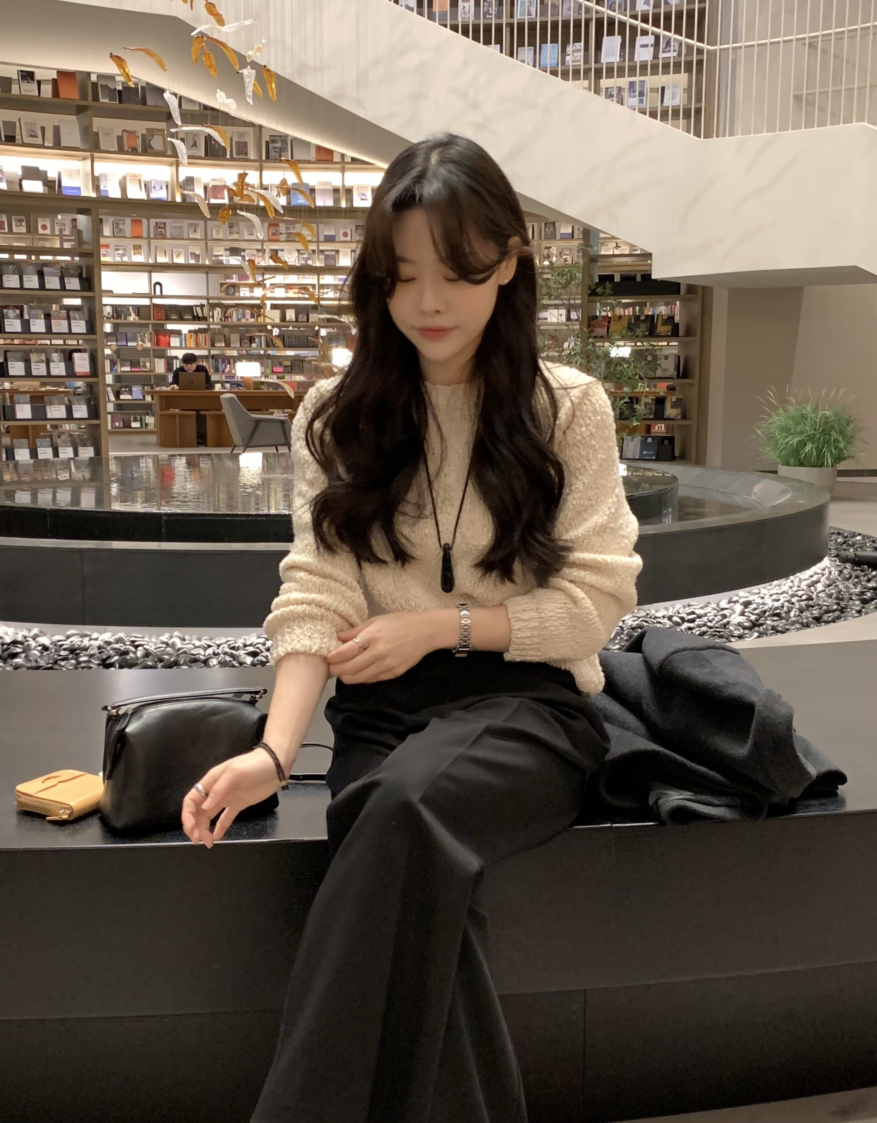 TOP - PUFFY ROUND-NECK KNIT(BLACK)