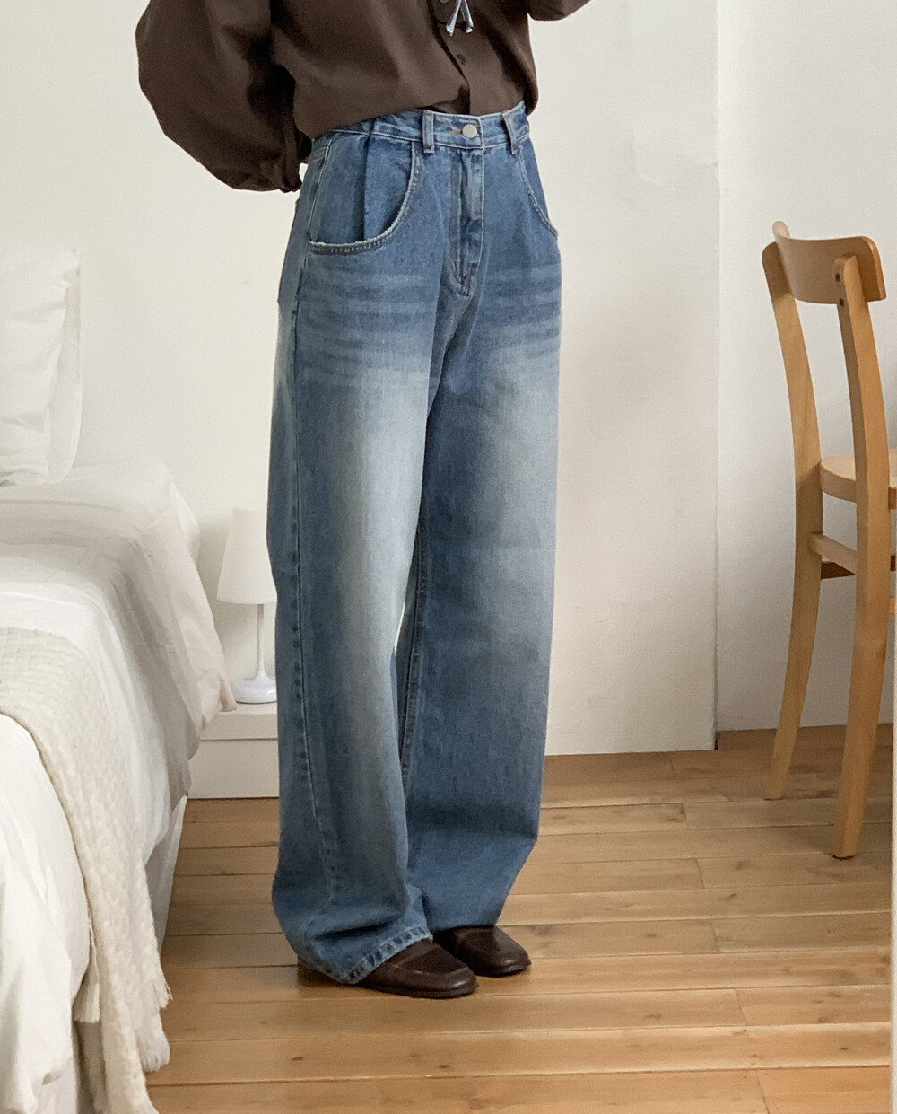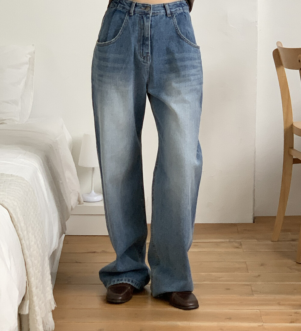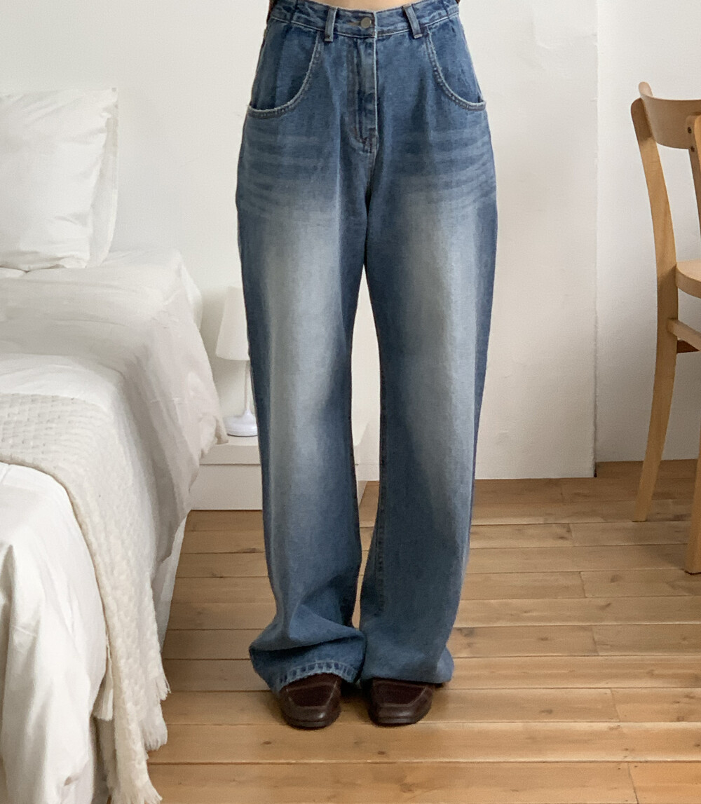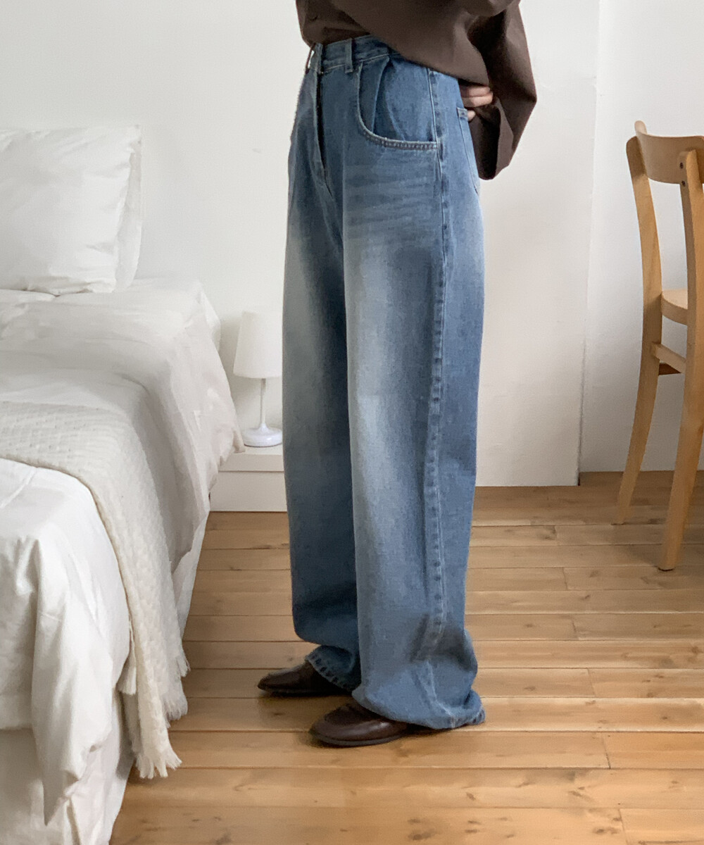 BOTTOM - PINTUCK POINT WIDE LONG DENIM PANTS(S)